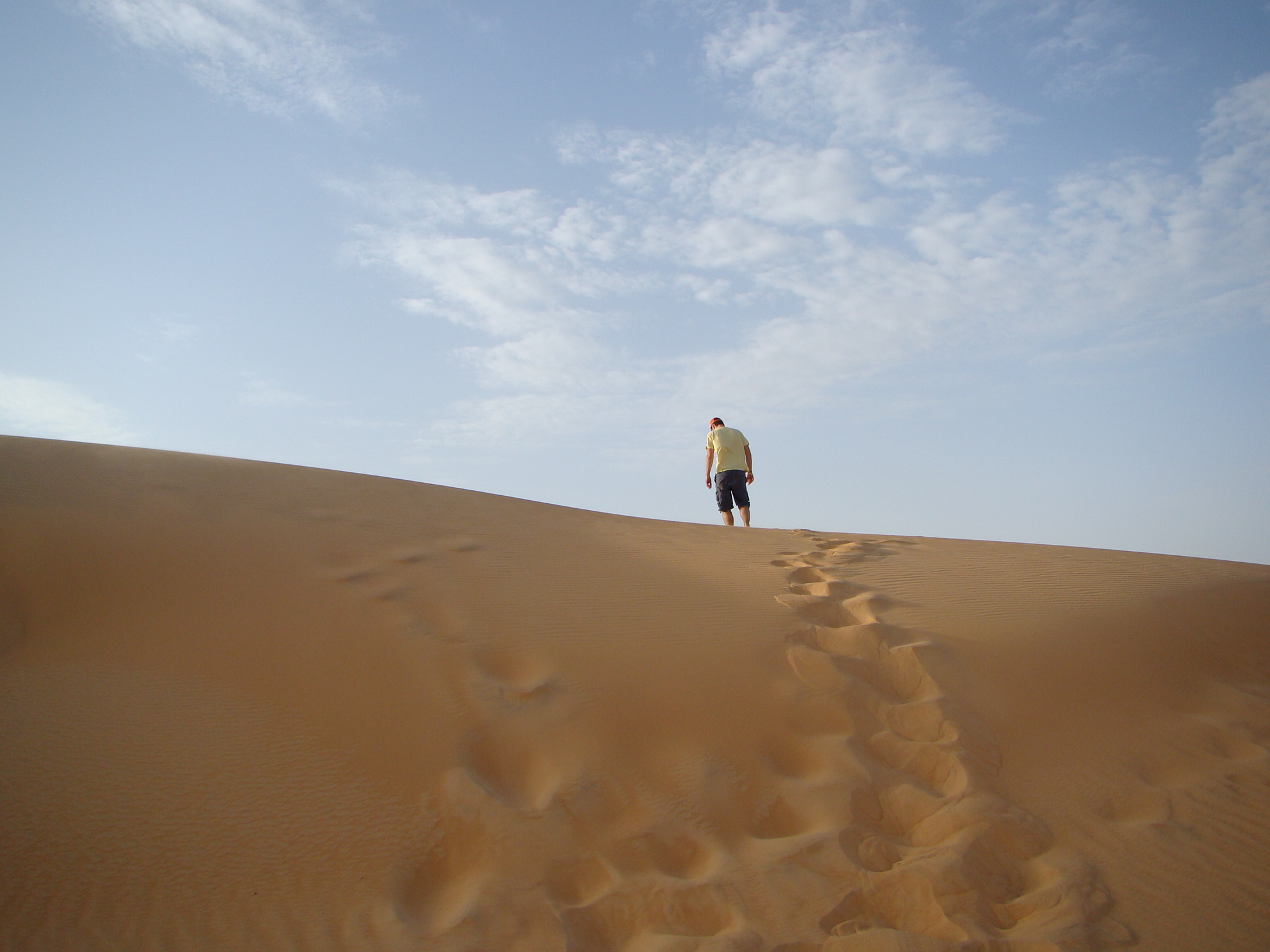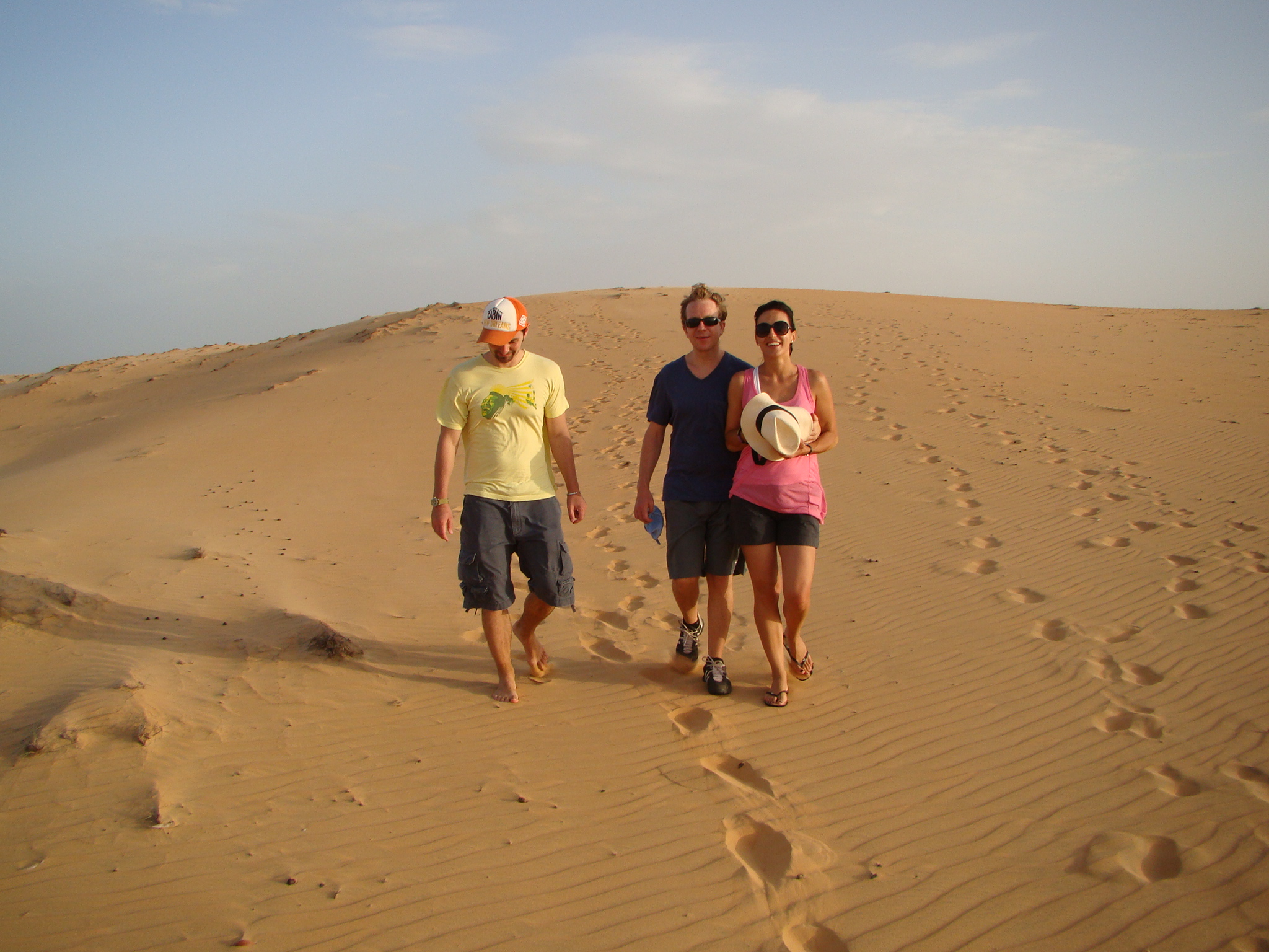 The dunes were tempting us in the middle of the afternoon but it was simply too hot to be in the sun. So Brigitte and I ventured upon them a little later that afternoon and once again for sunset with Philippe and Charlotte. This experience will stay with me forever. There was definitely an element of surrealism in being completely surrounded by monster dunes and only being able to see either the sky or the sand (all this in the middle of nowhere with no civilization in sight). Apparently the 7th dune offered a view of the Atlantic Ocean which was only a few kilometers away. I think we may have actually made it close to the lucky 7th as we spotted what appeared to be crashing waves on shore (on the horizon). Watching the sunset was icing on the cake only to be fittingly captured by Brigitte’s pictures (pure magic!).