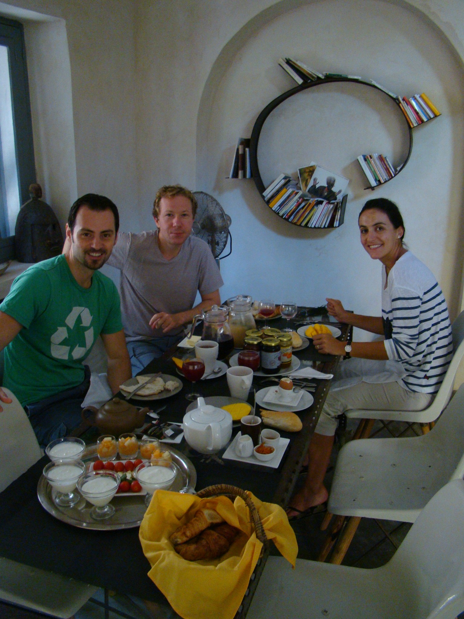 After dinner we made our way back to our bed & breakfast (Au Fil du Fleuve) which was amazing! Similar to a Moroccan ryad it had a small courtyard and it was open to the air. The common dining/lounging and kitchen area was very modern and chic and comprised of numerous pieces of local art. Brigitte and I had the pleasure of enjoying the very awesome newlywed suite courtesy of Philippe and Charlotte (merci bien!).