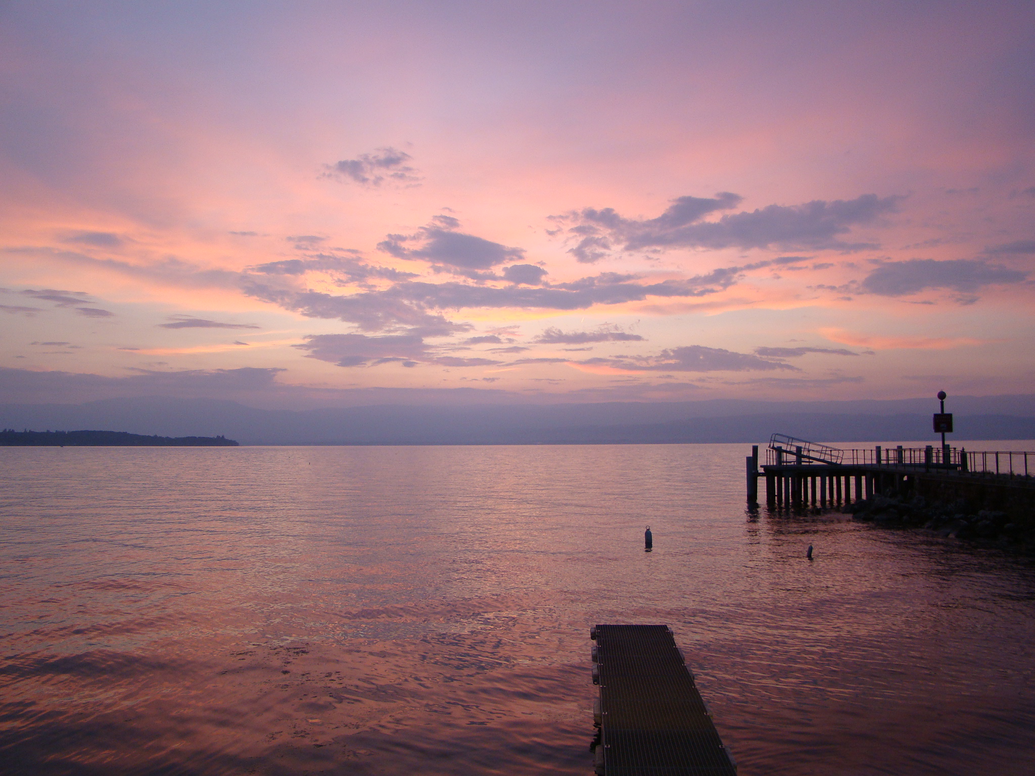 To top off the evening we had dinner with Samira and James at a place called “Restaurant du Port” in Sechex. The place overlooks Lake Geneva which makes for a dreamy setting, especially at sunset. Tonight’s treat was Perch Provencal with Fries washed down by 2 bottles of Gigondas (a southern Rhone wine that played well with the fish and the Provencal spices).
