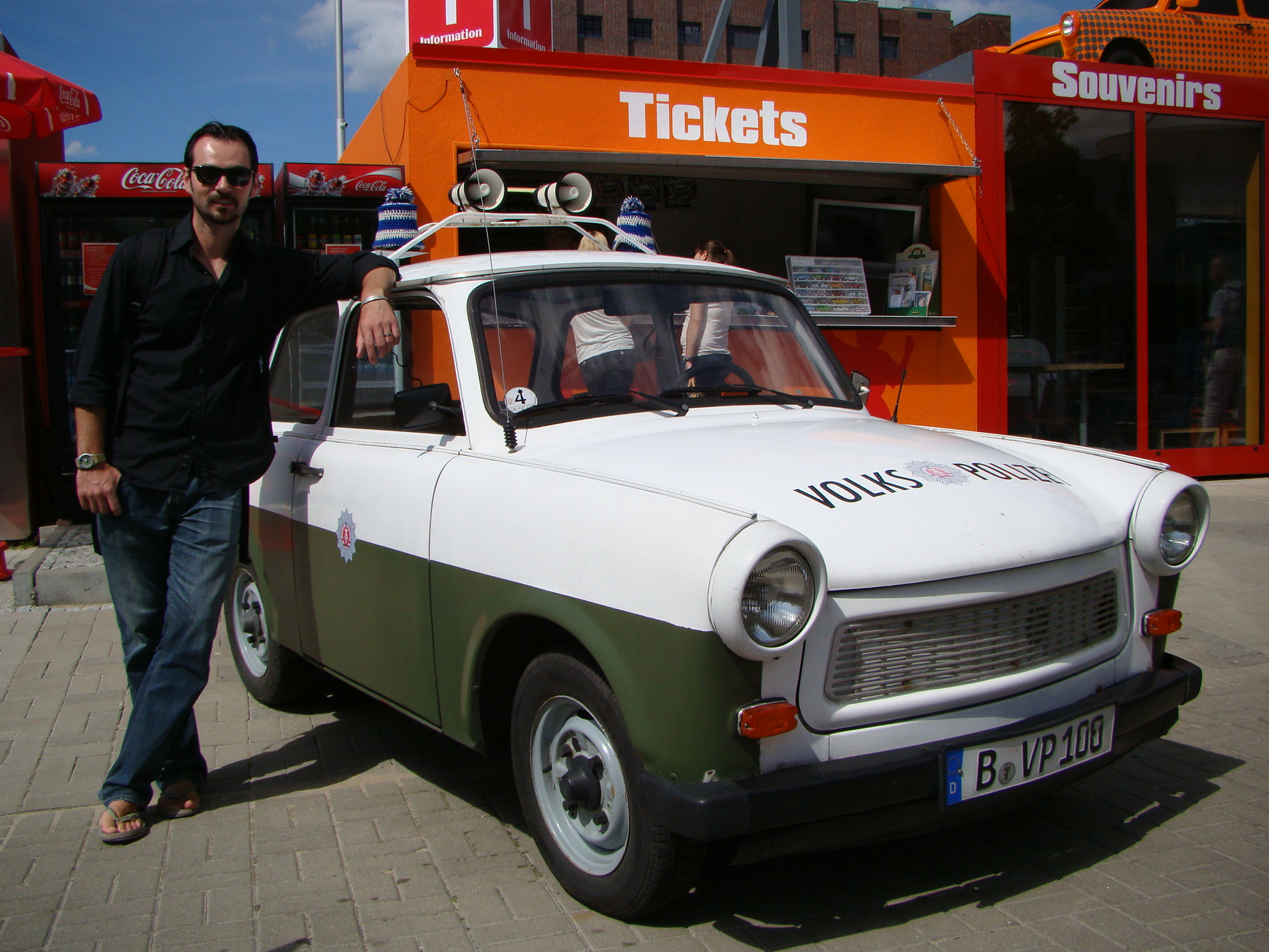 The next morning we set out for the East Side Gallery, the longest remaining piece of the Berlin Wall (about 1.3 km long) which is completely covered by murals and graffiti from artists around the world. The Berlin Wall was first constructed in 1961 and numerous “improvements/fortifications” had taken place since. What’s left today is a 11+ foot tall bitter reminder of an instrument that fractured a city, culture and people. What stood out most were the colorful murals (all of which were restored recently), giving vocation to the pain endured by East Berliners for nearly 30 years. From there we made our way to Checkpoint Charlie, the most well-known East-West Berlin crossing point linking the former American and Soviet sectors. As expected there were herds of tourists everywhere but I think we managed to take a couple of pics without 150 other people in them. Right next to the checkpoint is the corresponding museum which was our next stop but not before a quick bite of street food. This is where Brigitte had her fist “currywurst” the sausage we’ve heard so much about (basically a sausage cut into slices and seasoned with curry ketchup). The museum was set up in 1962 so today it’s pretty compact but they did a tremendous job in chronicling life in East Berlin. It was full of pictures and relics from the years after WWII to 1989 when the Wall came down. Most impressive were the stories, methods and devices utilized by some East Berliners in making their escape to West Berlin – from people hiding is car engines, suitcases, to escaping via underground tunnels, air balloons or flying car type vehicles, to mini acquatic propulsion system. The immeasurable will to escape led to a paramount level of creativity. But with some of the successful escapes also came tragic failures which were somberly depicted as well.
