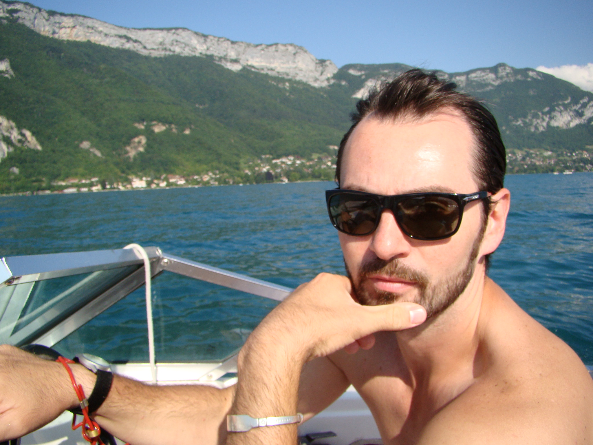 The next day (after having recovered), I was ready for our new and much tamer adventure – a day trip to Annecy. Dawda and Claire had wanted to see and it was only about 40 minutes away from Geneva. Annecy was recently among the bidding cities for hosting the 2014 Winter Olympics but things didn’t pan out. Nonetheless this town still had tons to offer from its historic medieval center to crystal clear canals, to its neighboring lake and surrounding Alps. Annecy’s charm was impressive and we all concurred. But what really drew us was the turquoise lake and the numerous water/boating activities at hand. We opted for the small engine boat for an hour which paid off handsomely. Dawda drove us out in the middle of the lake and we absorbed the panoramic view of mountains and the distant Annecy dock. This also seemed like the perfect spot to take a dip in the amusingly clear water, so Dawda and I jumped in. The ladies stayed on the boat with Aden and shot plenty of “film” of the scenery. Olympics or no Olympics, Annecy is still a gold medal town in its natural splendor and the bon vivant attitude it inspires.