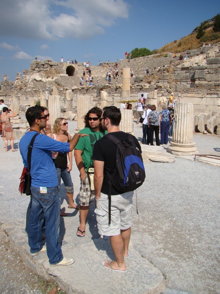 Sezgin, our soft spoken tour guide gave us a preview of the day’s points of visit – house of Virgin Mary, Ephesus, Temple of Artemis and Isa Bey Mosque. Luckily there were only five of us for the day and so the intimate group made for easy bonding – Ivan and Martina, the couple from Switzerland (whom we befriended in Cappadocia), and Lucy representing Queensland Australia. Our first stop was “the house” of the Virgin Mary (or what is believed to have been her residence for the last 40 years of her life). The pilgrimage sight was excessively busy which meant about a 30 minute wait to get in. Today a chapel rests on the spot where the house is believed to have been. We were quickly ushered through the chapel & house and then made our way to the Wishing Wall next to the spring (which is supposed to have healing powers). Next it was time for Ephesus or the ruins of where once the incredible city thrived. The mix of Greek and Roman ruins were astoundingly impressive and abundant – Ephesus used to be the second largest Roman city in the empire after Rome. Despite our visit being 2,000 years after the fact, the ruins painted a vivid picture of how life was in those days. Most striking were the many parallels we can draw to our lifestyles today. From the wide boulevards with pedestrian sidewalks lining them, to the gymnasium where gladiators trained, to the public library, the pharmacy, the agoras (or markets), the brothel and the two amphitheaters or arenas. Also, the residences of the rich were located above those of the poor (for better views), and they were beautifully decorated with floor mosaics and painted facades. We also learned from our guide that slaves would warm up the toilet seats for their masters by sitting on them right before the masters pooped. Amusing and fascinating was the overall experience of Ephesus and of course unforgettable.