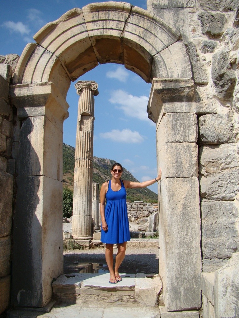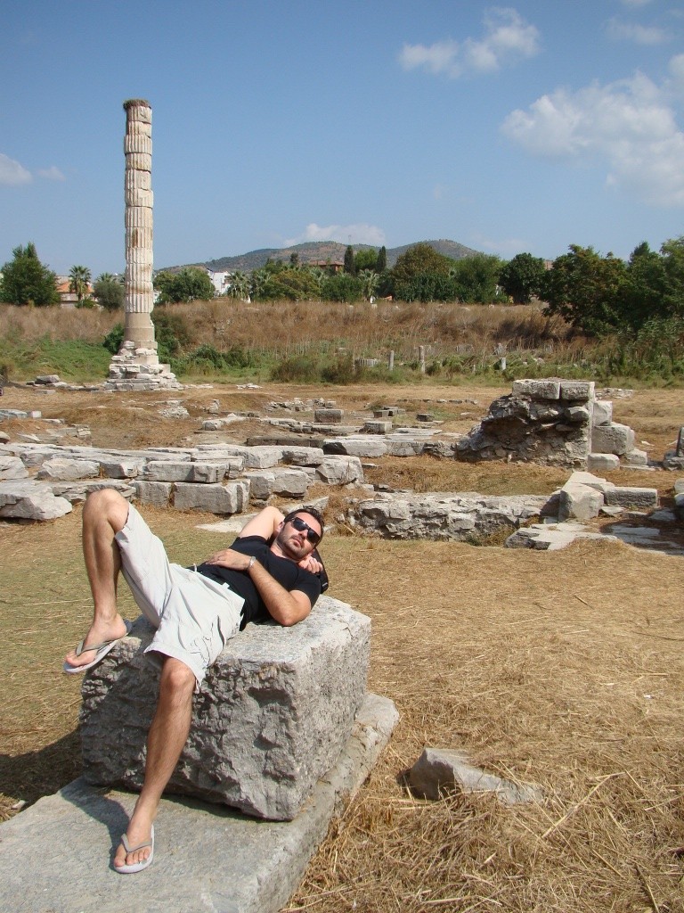 After lunch the tour led us to a leather factory and entertained us with a run-way fashion show highlighting a few trendy pieces. The leather jackets looked and smelled great but the way I saw it was: either pay rent for a month or buy a jacket. Sensibly we didn’t purchase anything and neither did the others in our group. After our brief stop at Melissa Leather, we made our way over to the Temple of Artemis – one of the seven wonders of the ancient world. The original temple has a long history and dates back to about 6th century BC and served as sacred place for Artemis, the goddess of Fertility. Over time the temple was destroyed and rebuilt three times, the last time giving way to a temple larger than the Parthenon in Athens. It gained its “Wonder of the World” status for its architectural might and sheer size. Unfortunately all that was left of it was a lone (re-erected) marble column that somehow withstood the tic-toc of time.