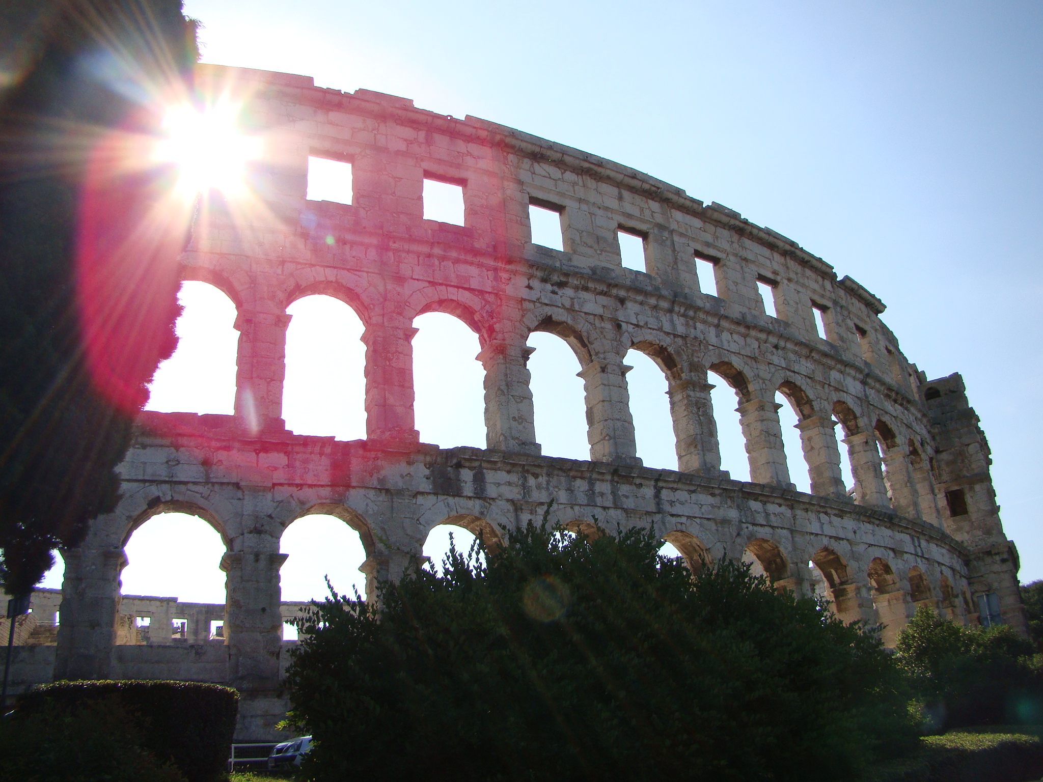 The next morning we headed for Pula, Istria’s largest town and also home to an incredible 1st century Roman Arena or Coliseum (one of the 6 largest in the world). Its capacity was 20,000 but much of the interior stone seating has been removed. It’s also one of the best preserved from its time. Standing inside of it gave us an idea of its magnitude. Entering its underground layer gave us a different perspective. Where an exhibit on ancient amphorae stands today, was the subterranean tunnel through which mortally wounded gladiators ignominiously exited the arena.