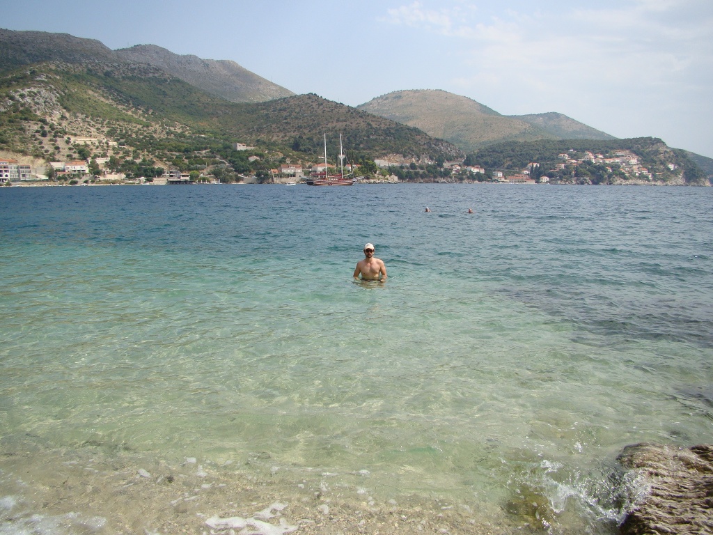 Right before entering Dubrovnik (while riding the coastal road from Makarska), we stopped for lunch in Zaton – a small town just 6 miles away from Dubrovnik. Waterfront is a term frequently tossed around in Croatia and can refer to a variety things. In this particular case, our restaurant along with our table and even our car were all “waterfront”. By now we had gotten used to having a waterfront meal followed by a dip in the crisp Adriatic and this instance was no different. Lunch was tasty and the sea pumped us up for Dubrovnik.