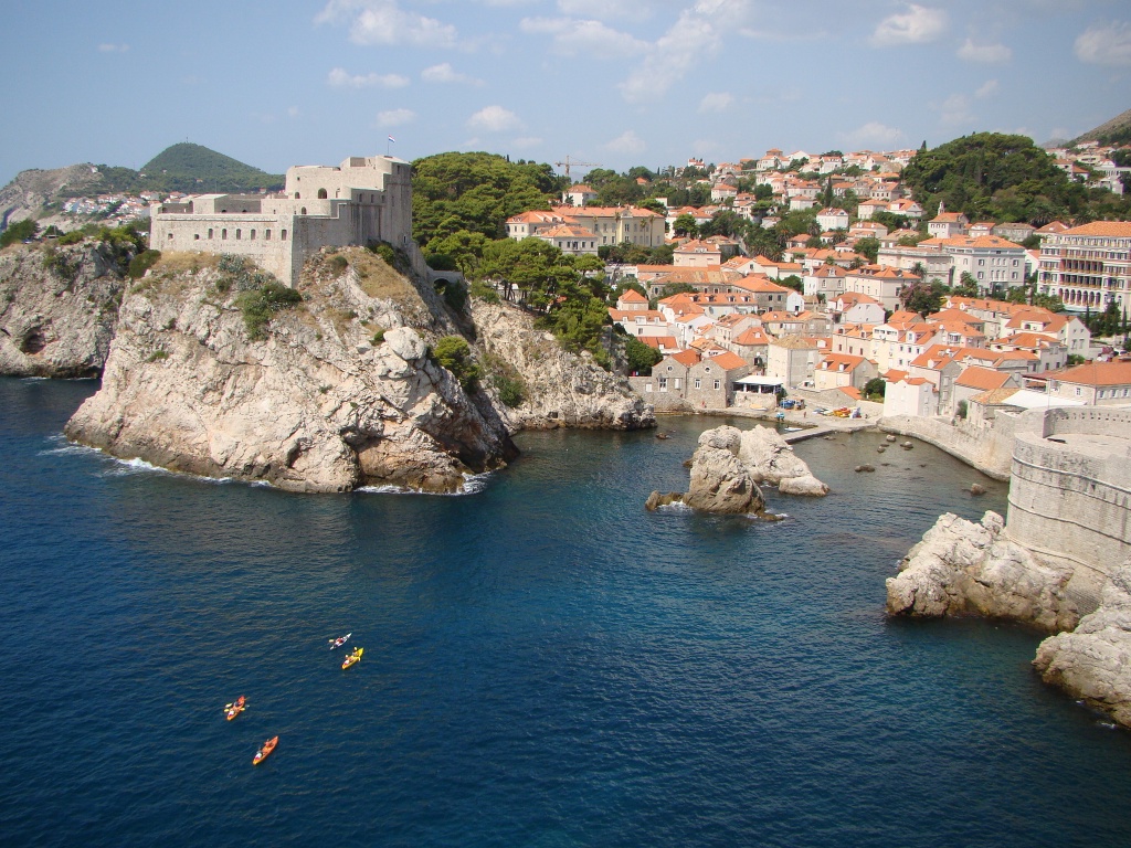 As the most prominent feature of the old city (from any vantage point), the city wall offers a 1.25 mile walking tour. We grabbed an audio guide and made our way along the rectangular-shaped wall passing by several bastions and forts that protected the city. The eastern side of the wall (our favorite), faced the sea and was the most popular spot for picture taking. Brigitte snapped over 230 pics that day thanks in part to the wall. Also remarkable were the thousands of bright orange new tiles symbolic of the damaged buildings during the 1991 war (the older looking tiles denoted houses that escaped the siege – and they were far and few in between). The 2 hour tour in the scorching afternoon heat naturally made us crave the sea.
