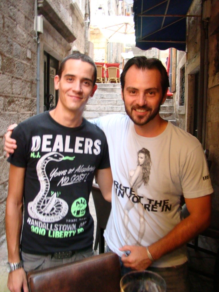 At first sight the old city’s imposing fortified wall spoke of its historic conflicts but also implicitly gave hint to the treasure it protected for centuries. Dubrovnik dates back to 7th century when it was initially settled by the Romans, and over the centuries saw itself falling through the hands of various empires (Roman, Byzantine, Venetian, Ottoman and Austro-Hungarian). But it was the Croats who persevered culturally and ethnically and today make Dubrovnik one of the most visited European destinations. Making our way into the old part of the city we found ourselves on Placa or Stradun Street, a principal artery that starts and ends with significant monuments/landmarks at each end (the Onofrio Fountain dating back to the 15th century and still providing the town with potable water from a spring several miles away – and the Ploce Gate). The avenue-like street is uniformly lined with Venetian style architecture and limestones (smoothly buffed to perfection) paved the floor. Narrow alleyways dissected Placa street where many of the city’s restaurants and bars were found. An interesting thing about Dubrovnik is that part of the old city extends up a hill with half the city streets escalating upward. Climbing hundreds of steps on any given day is simply part of everyday life there. After dinner the walk up 150+ steps was pretty invigorating or consoling to the rich desert that followed our meal. Our choice for a restaurant (Orhan at the base of Fort Lawrence), came as a recommendation by Frano (D’Vino’s bar manager), while stopping by for a pre-dinner wine tasting. He enthusiastically walked us through our tasting with expert knowledge and a chill attitude that brought us back the following night. Dinner at Orhan was delicious – green fettuccini with salmon was Brigitte’s choice while seafood spaghetti tickled my tastebuds.