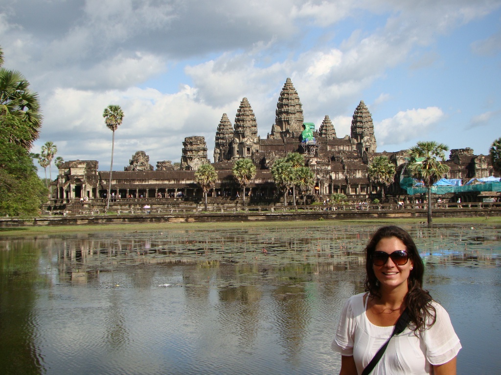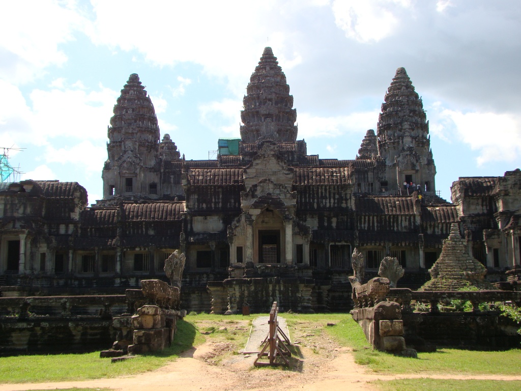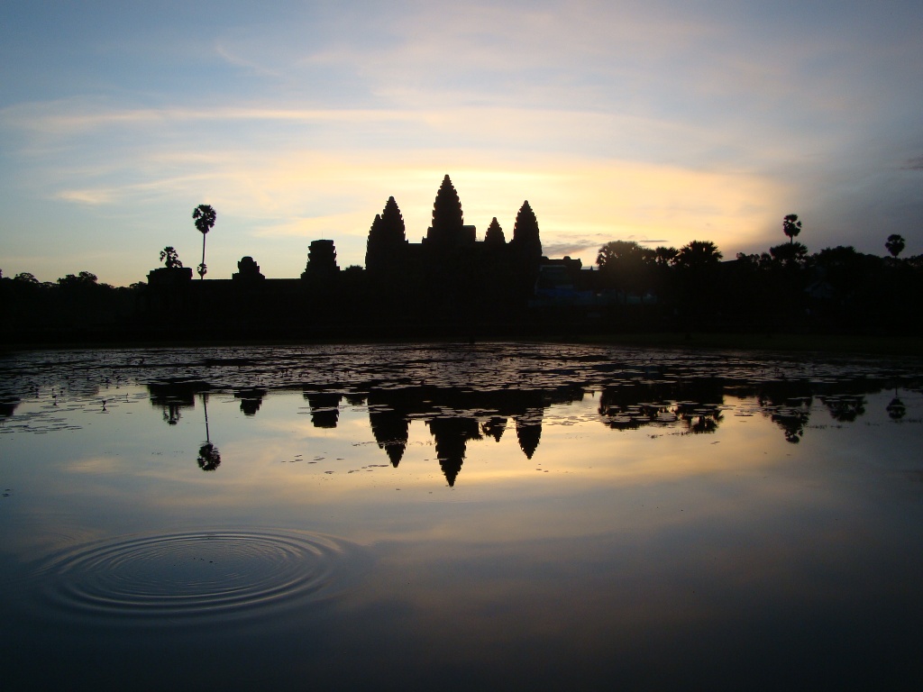 The main reason for coming to Cambodia was to see Angkor Wat, one of Brigitte’s top 5 must see places in the world. Angkor Wat is just a few miles away from the city of Siem Reap, the launch pad for most visitors to the great temples and naturally our next destination. The bus to Siem Reap (from Phnom Penh), tore through the Cambodian countryside and saw us there within 6 hours. Remarkably in various parts the entire landscape seemed inundated except for the actual road (which was about 2 – 3 feet higher than its surroundings. Many roadside homes unfortunately also appeared flooded on the ground floor. After all this was the rainy season…