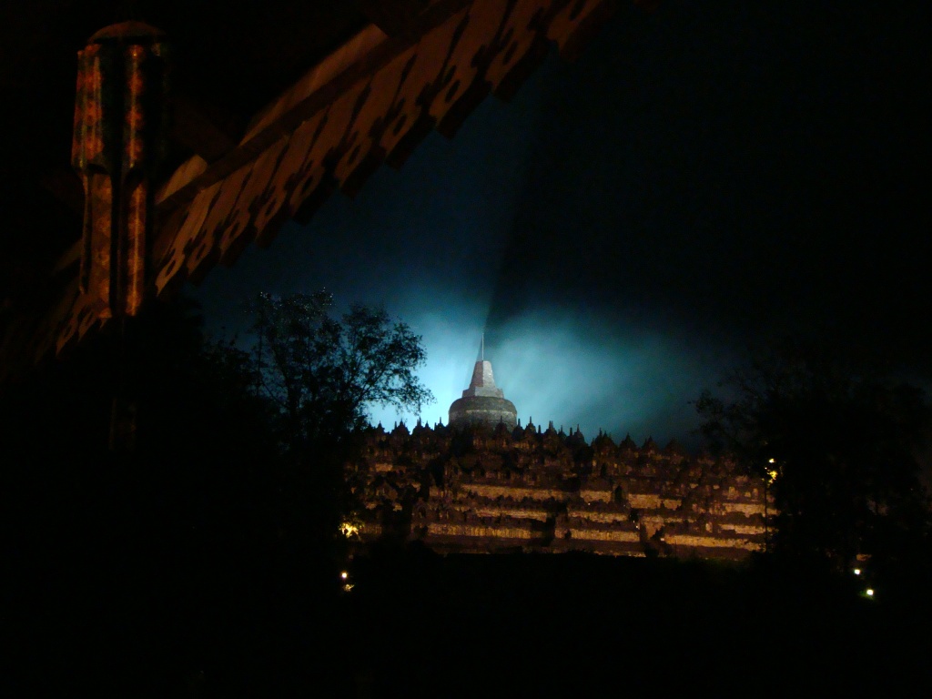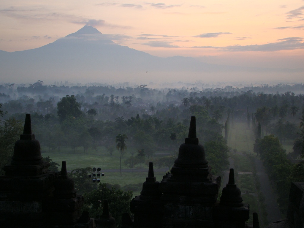 Our next stop in Indonesia was central Java and so we flew into Yogyakarta (1 hour by plane from Jakarta). After about another hour – by cab – we found ourselves at the wonderfully green hotel accommodations of Manohara. This was the hotel our friend Izabel recommended due to its amazing location. Amazing for a couple of reasons; it’s surrounded by tropical rain forests and mountains (and even a volcano, Merapi which happens to be one of the most active and dangerous in the world), and it’s also on the doorstep to Borobudur, the largest Buddhist temple in the world. We wanted to intimately see and experience Borobudur’s mystique and Manohara kept the temple within sight and “grasp” during our entire 3 night stay. Borobudur was built in the 8th and 9th centuries and today it serves as Indonesia’s most visited sight. We laid eyes on it during our first evening from our dinner table but didn’t have access to it until the following morning.