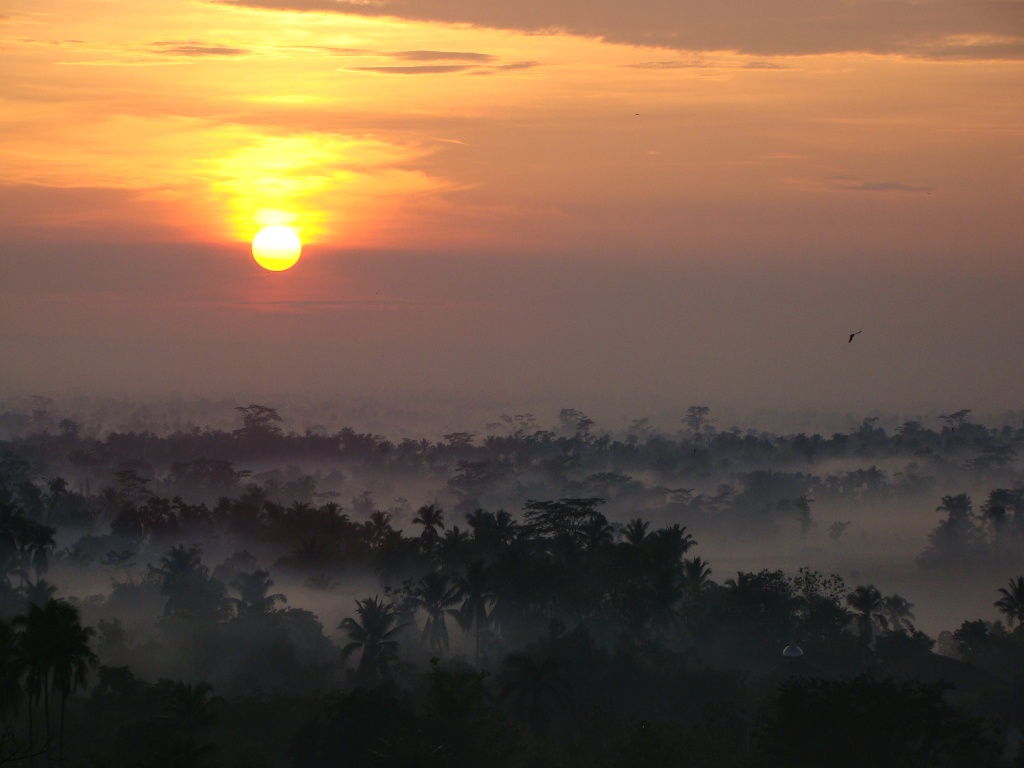 Our infatuation with Borobudur brought us back bright and early the following morning as we had set up a sunrise tour. By 5am the sun began illuminating the sky bright pink. Perched at the temple’s top level we waited in anticipation of daylight swallowing up whatever was left of the night’s sky. Webs of cotton candy-like mist sat intertwined within the tropical jungle around us while animal sounds emanated from it ringing in the start of a new day. And the influx of 4-winged flying insects flooded the sky, perhaps another signal of the fresh morning. We wandered about the temple for another hour – this time beating the onset of humidity – and by 6:30am we made our way back to our room. The ensuing couple hours of sleep came in handy. Refreshed and ready for more adventure, we hired a horse-drawn carriage later in the afternoon to take us to Pawon and Mendut (two other smaller Buddhist temples linked with Borobudur). It was great to get a glimpse of the countryside but on our way back rain started making its statement.. and so we got the point. We took it easy back at the hotel for the rest of the evening and enjoyed one last dinner overlooking Borobudur.