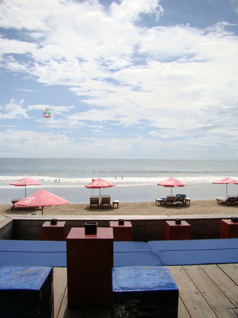 The next day (our last in Seminyak), was a repeat of the previous couple of days. But this time around we checked out a couple of places that Izabel had recommended to us. We stopped at Cafe Bali for lunch and the place immediately drew us in. The wooden colonial-style restaurant was very open (lots of natural light), and its bright country-like decor made it prime for a Country Home or Real Simple magazine shoot. After a yummy lunch we hit the beach again where we also enjoyed drinks at Ku De Ta, Izabel’s other recommendation. The beachfront lounge with a broad view of the ocean seems to have the perfect location. It’s the kind of place that infuses your imagination while gazing into the horizon, sipping on a cold drink and listening to lounge music beats. Not a bad way to spend part of the day, not bad at all.