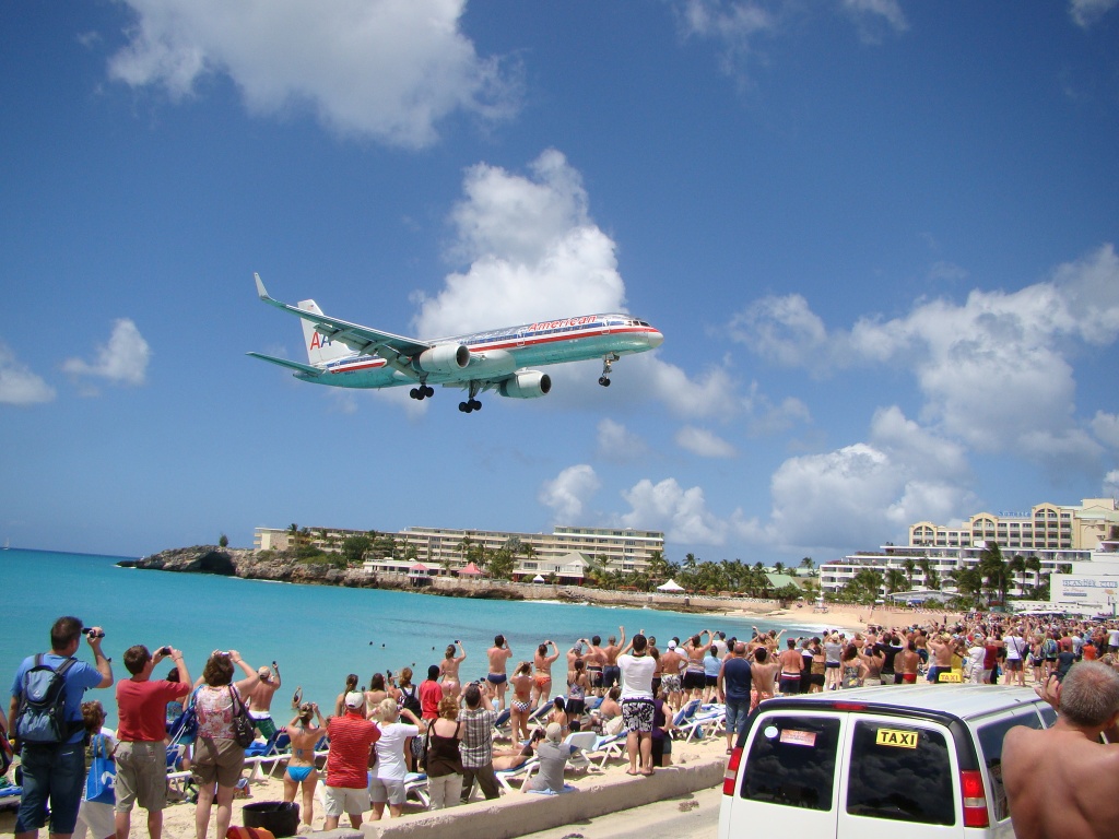 The St. Martin experience begins with the actual landing at Princess Juliana Airport in Sint Maarten (the Dutch side of the island). On approach to landing you can see the beautiful turquoise waters of the Caribbean sea from either side of the plane, which always has someone on-board “wow’ing” emphatically. Then as the plane descends for touchdown and looks to be landing “on water”, the welcoming sound of rubber screeching over cement finally emanates from down below. Nothing out of the ordinary here, just standard procedure. But being a spectator to the landing show from outside the plane is quite a different story, often times leaving people in awe or blaring out a mouth-full of obscenities. Maho Beach is the stage to this incredible show and happens to be in intimate proximity of the airport’s short landing strip. Each day it’s packed with beach goers primed with cameras and camcorders every time a plane (especially a large jet), approaches for landing and seems to hang just feet over everyone’s head. It’s totally surreal!