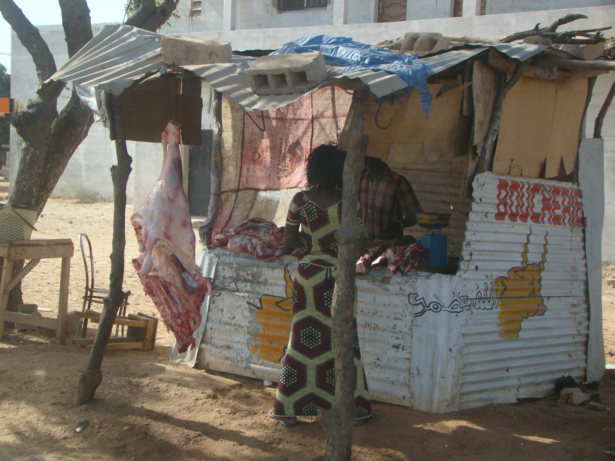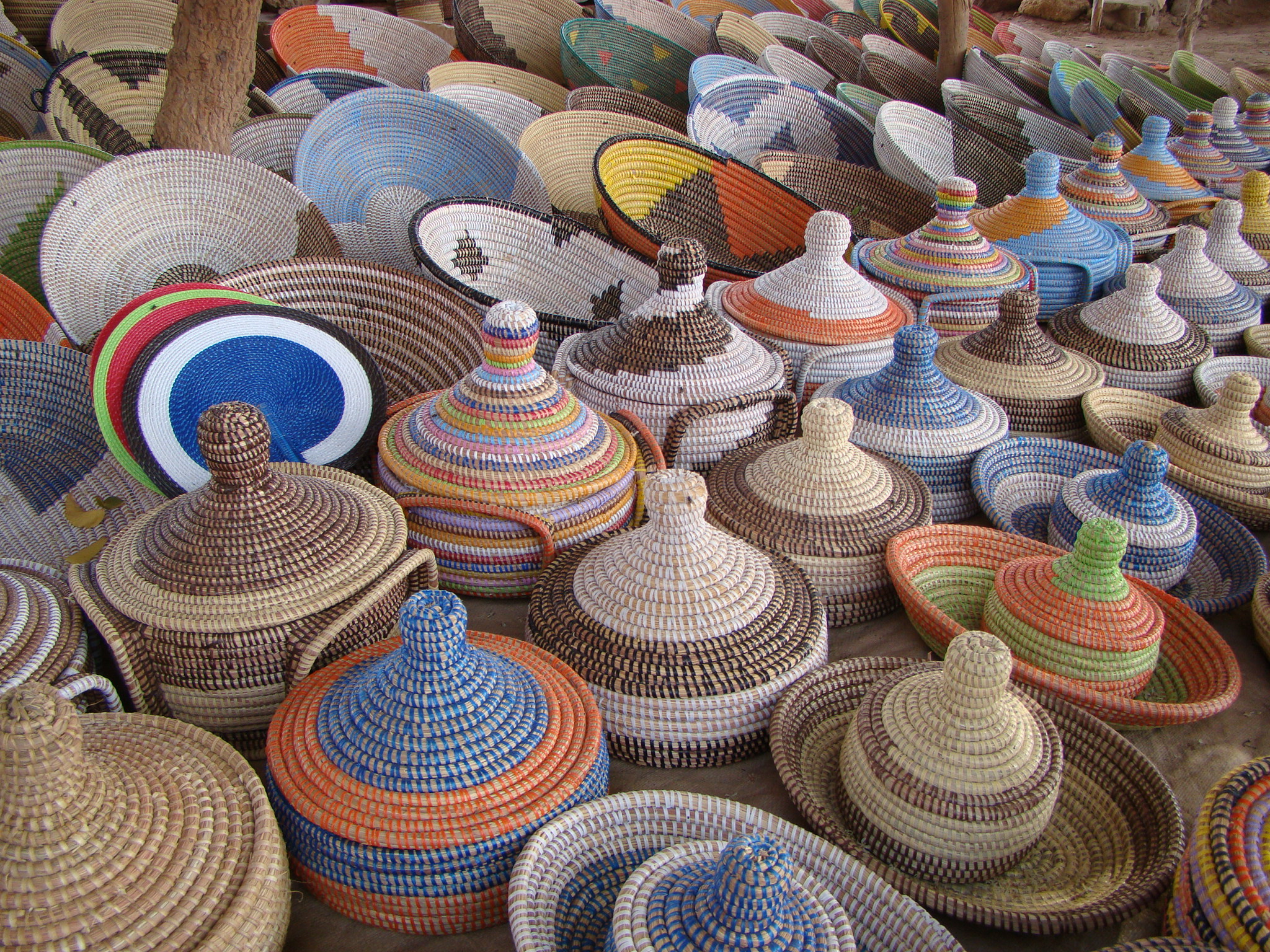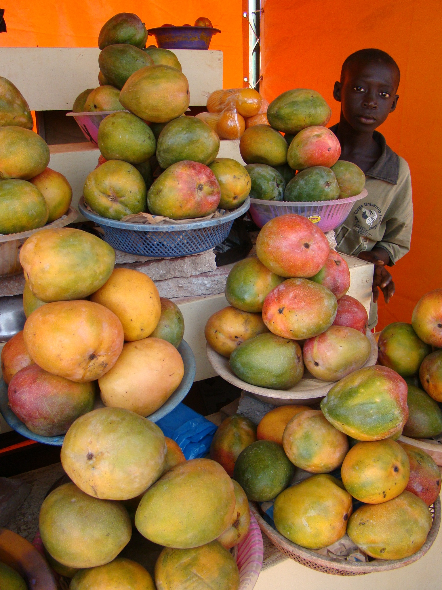 As we finally reached the countryside, the landscape was mainly dry (and sandy) but filled with these amazing looking trees called “baobab trees” (they have a corklike bark that is fire resistant and can store hundreds of liters of water, and their leaves are used for medicines and condiments – some baobabs have been proven to be over 2,000 years old). We also saw tons of animals: goats, donkeys, horses, sheep, birds (hawks and vultures), dogs and even a couple monkeys! At one point, we stopped at some roadside shops and checked out the local hand-made woven goods – baskets, bowls and other arts and crafts. Philippe and Charlotte bought a few things, while Brigitte took a bunch of pics and I engaged with two little boys in juggling a soccer ball. All I could think was that it was hot outside, really hot as in 100+ degrees fahrenheit and these ladies selling goods and their kids are out in this sun all day every day (it really makes you appreciate air conditioning). Although the moment you step in the shade it feels 20 degrees cooler…