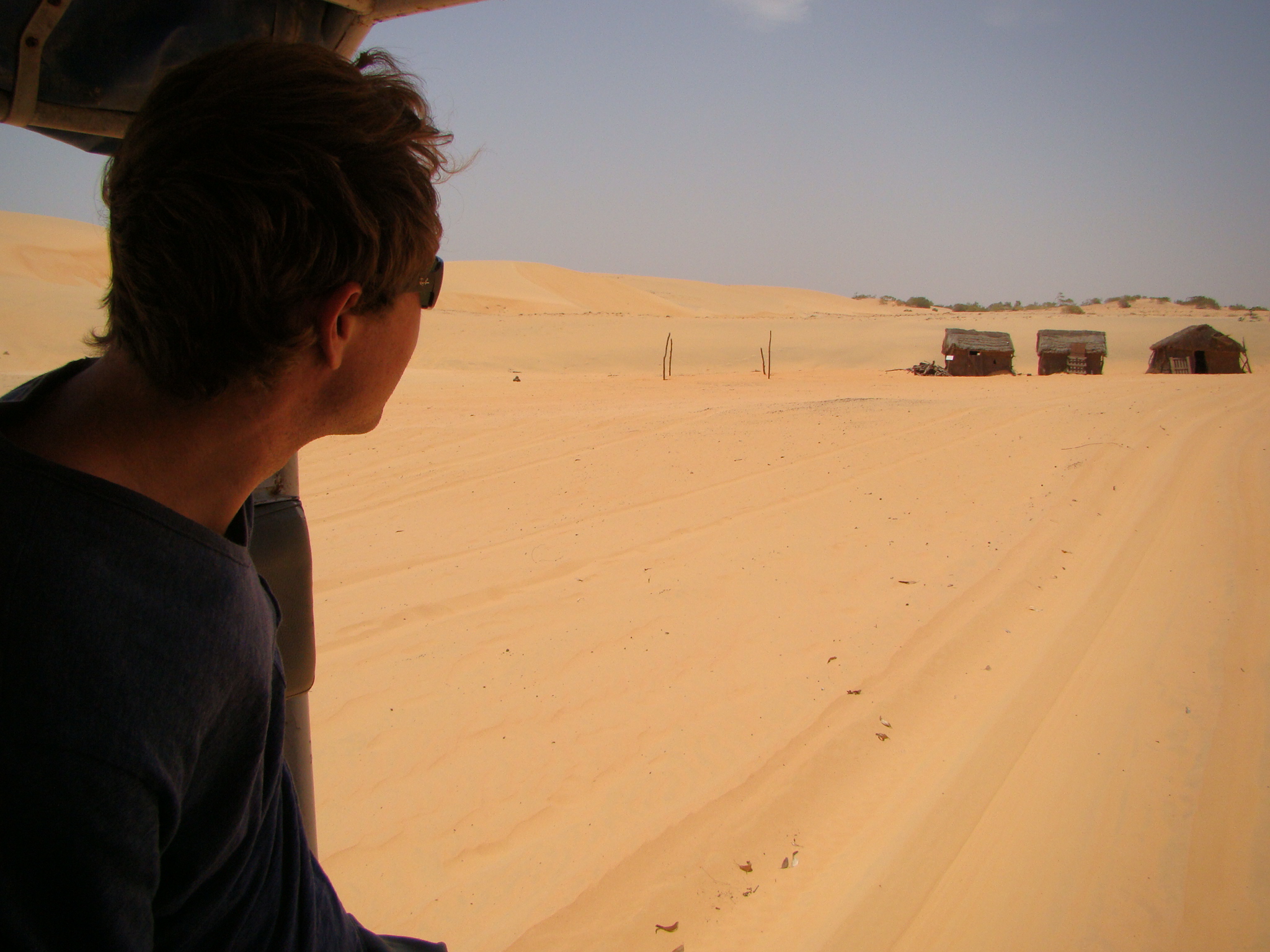 A couple of hours later we arrived at the village of Lompoul where we met up withour driver. The dunes were about 10 minutes away by car which typically required a 4X4 vehicle. So we jumped into the back of Suleiman’s pick-up truck and made our way down the sandy road. This was a really cool experience, to take in the African landscape and all of the sudden to come upon the massive dunes – exhilarating! It felt as if we had just entered a surreal landscape.. this is the kind of stuff you typically see in Nat Geo, bright blue skies complementing the fiery clay-colored dunes, simply breathtaking. And this was just the beginning of this magical experience.