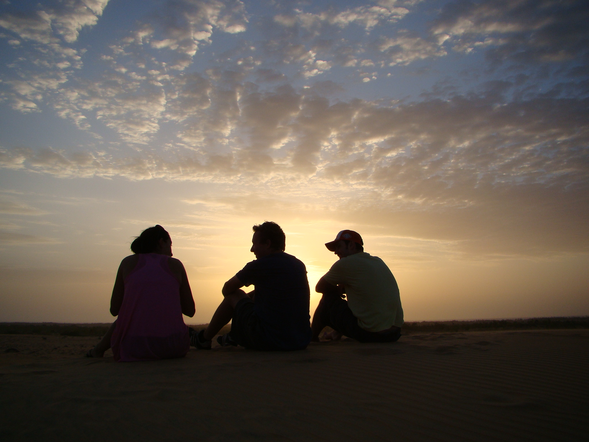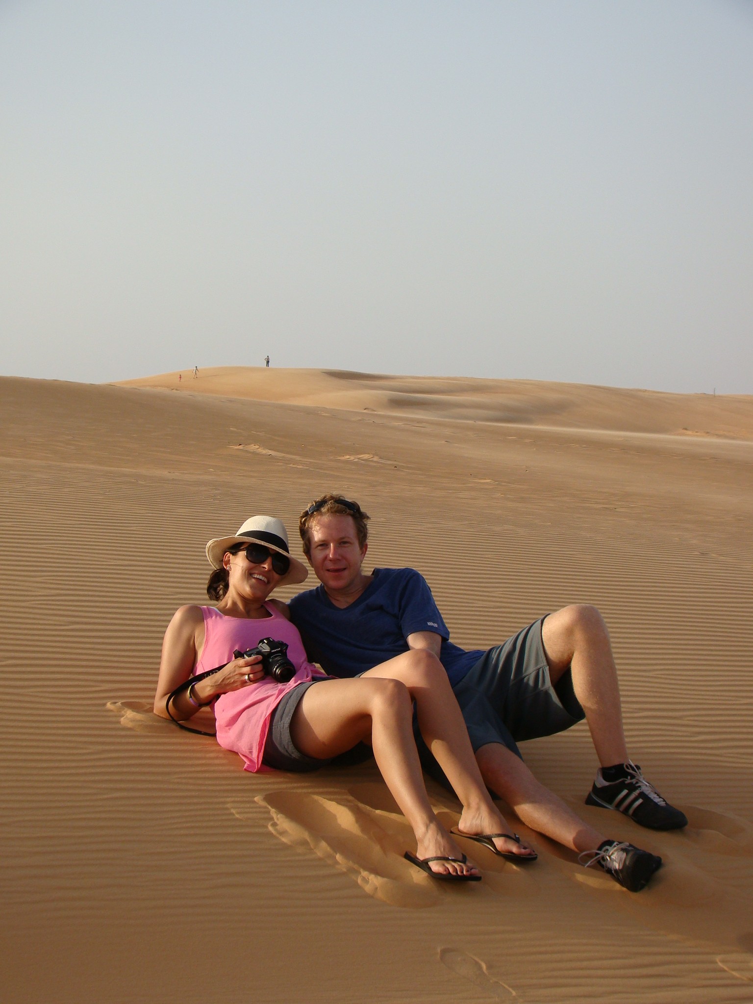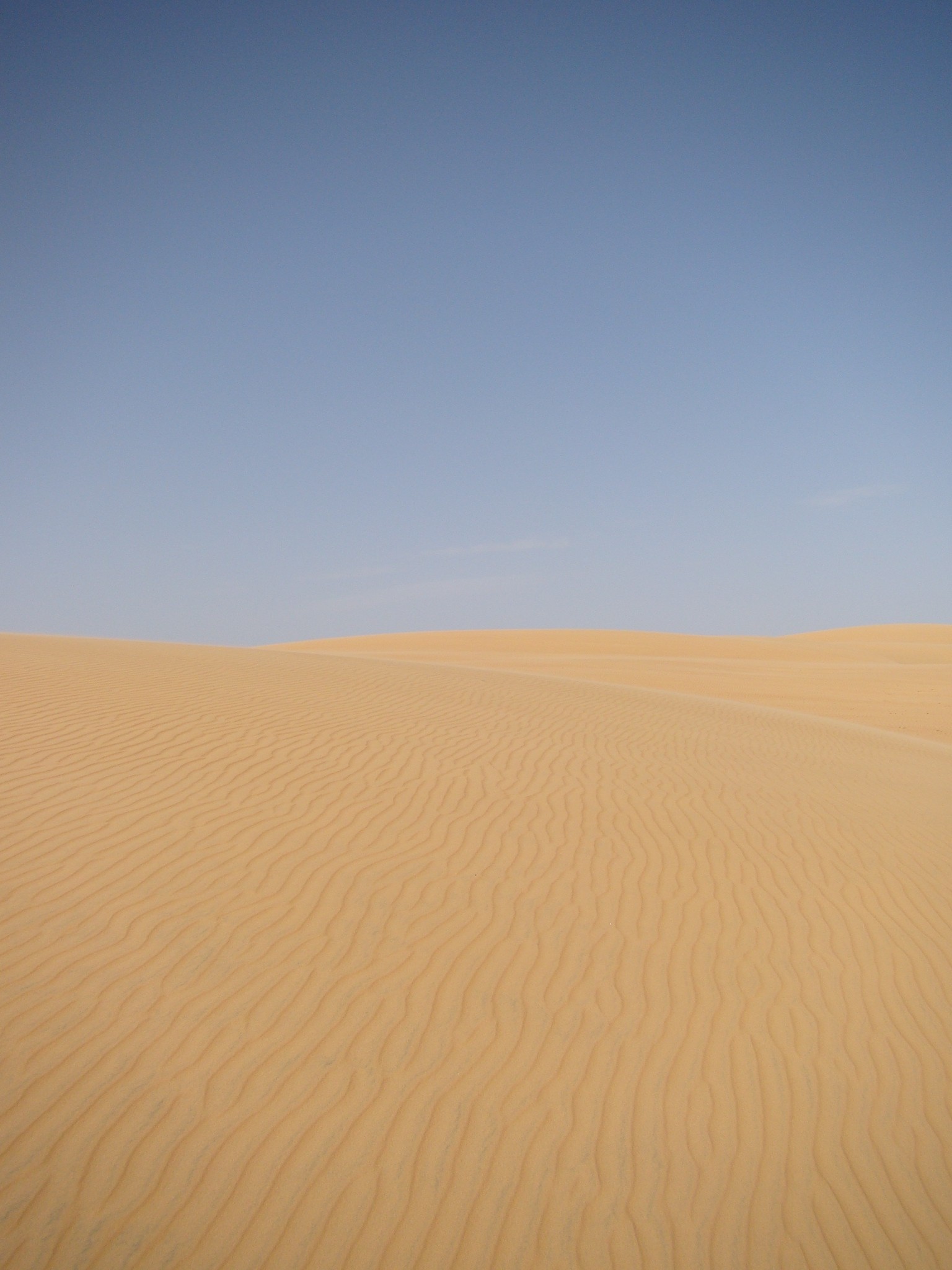 The dunes were tempting us in the middle of the afternoon but it was simply too hot to be in the sun. So Brigitte and I ventured upon them a little later that afternoon and once again for sunset with Philippe and Charlotte. This experience will stay with me forever. There was definitely an element of surrealism in being completely surrounded by monster dunes and only being able to see either the sky or the sand (all this in the middle of nowhere with no civilization in sight). Apparently the 7th dune offered a view of the Atlantic Ocean which was only a few kilometers away. I think we may have actually made it close to the lucky 7th as we spotted what appeared to be crashing waves on shore (on the horizon). Watching the sunset was icing on the cake only to be fittingly captured by Brigitte’s pictures (pure magic!).