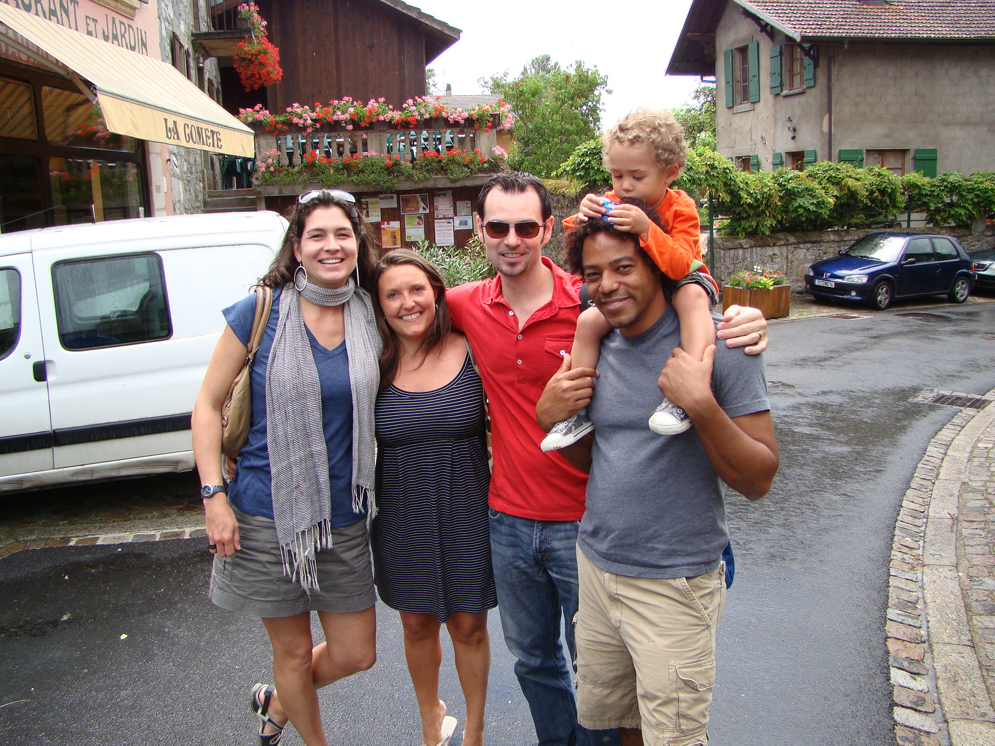 For lunch, the 5 of us met up with James and Samira in Nernier (a very small village in France that’s right on Lac Leman), and ate at one of Dawda and Claire’s favorite old spots: La Comete. This rustic family owned/operated restaurant has been serving the same menu each day for the past 50 years… put it this way, plenty of awesome meats, blocks of cheeses to choose with no limit in sight, salad, dessert, wine and coffee – all for 20 euros a head (about $28). D, good call bro!