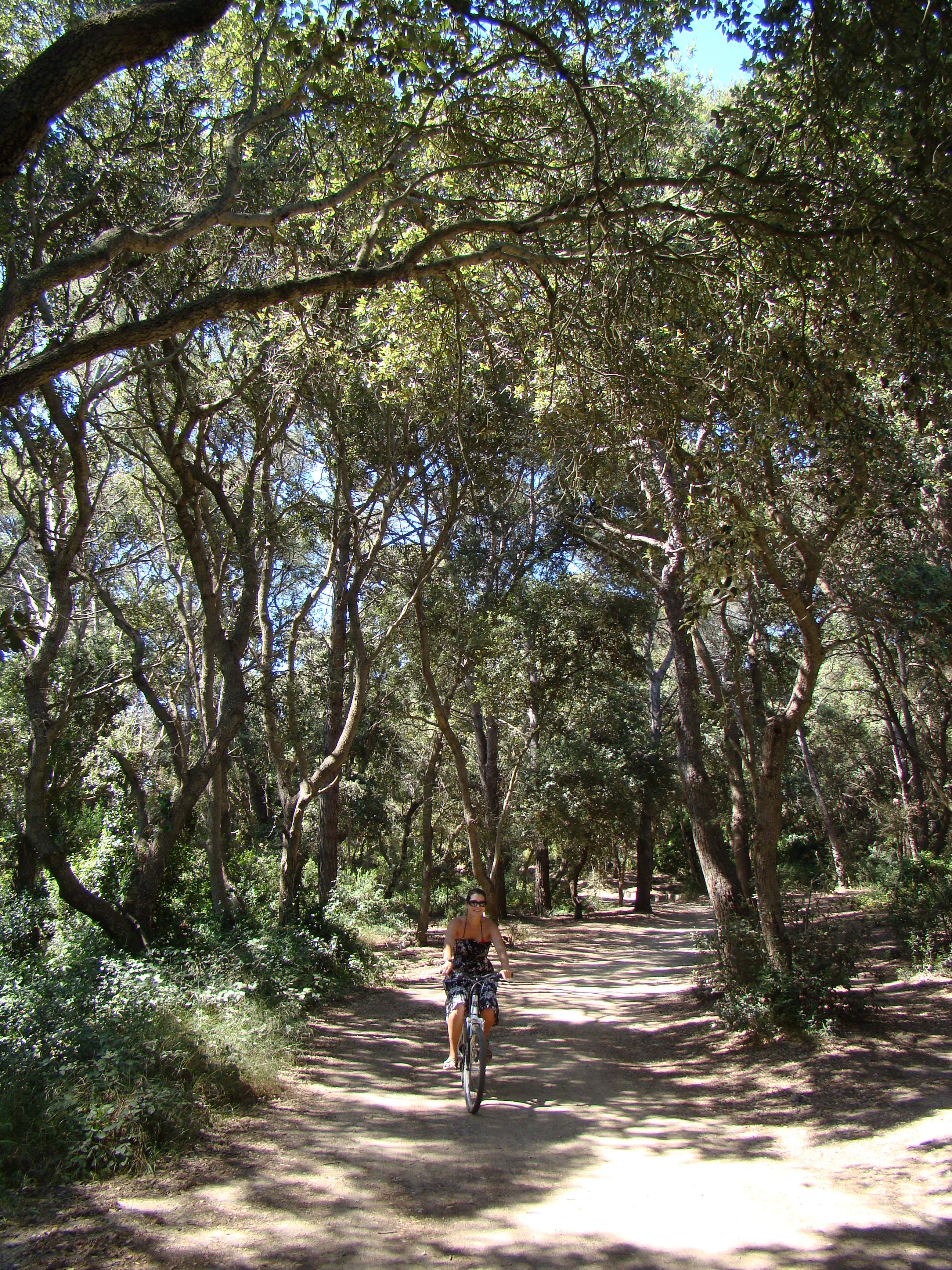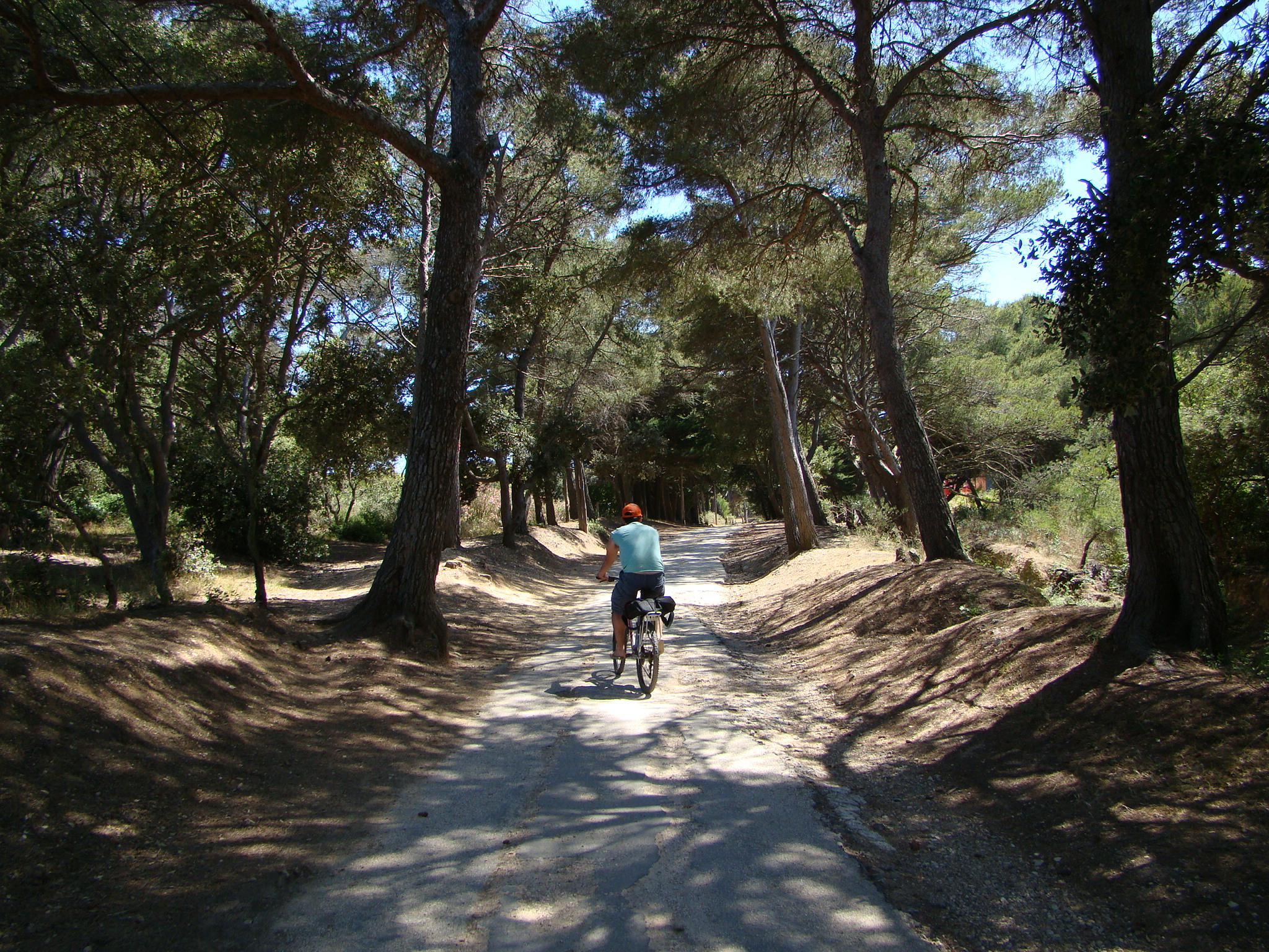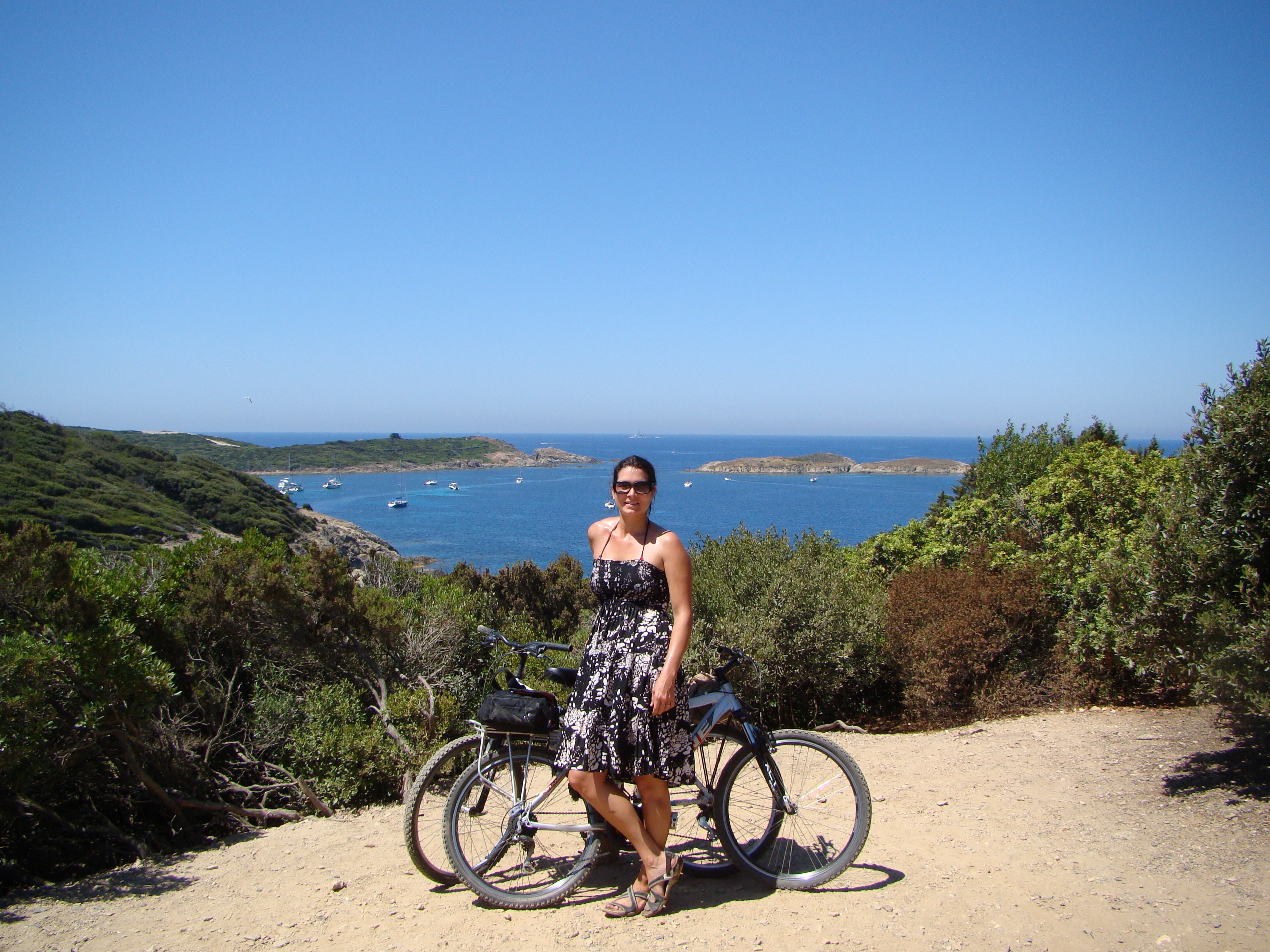 It was great to be back on a bike but the trail really tested our ambition of seeing various points on the island. I was impressed with Brigitte’s tenacious riding/handling although at a few steep points we both dismounted and pushed onward on foot (with the bikes by our side). The scenery was so awesome, the forest led to cliffs (with questionable edges), and view points where everyone would stop to take in the view. Then it was back through the forest which at times would lead to vineyards (part of the Cotes de Provence appellation). While taking it all in, I could only think of Loïc being right, very right.