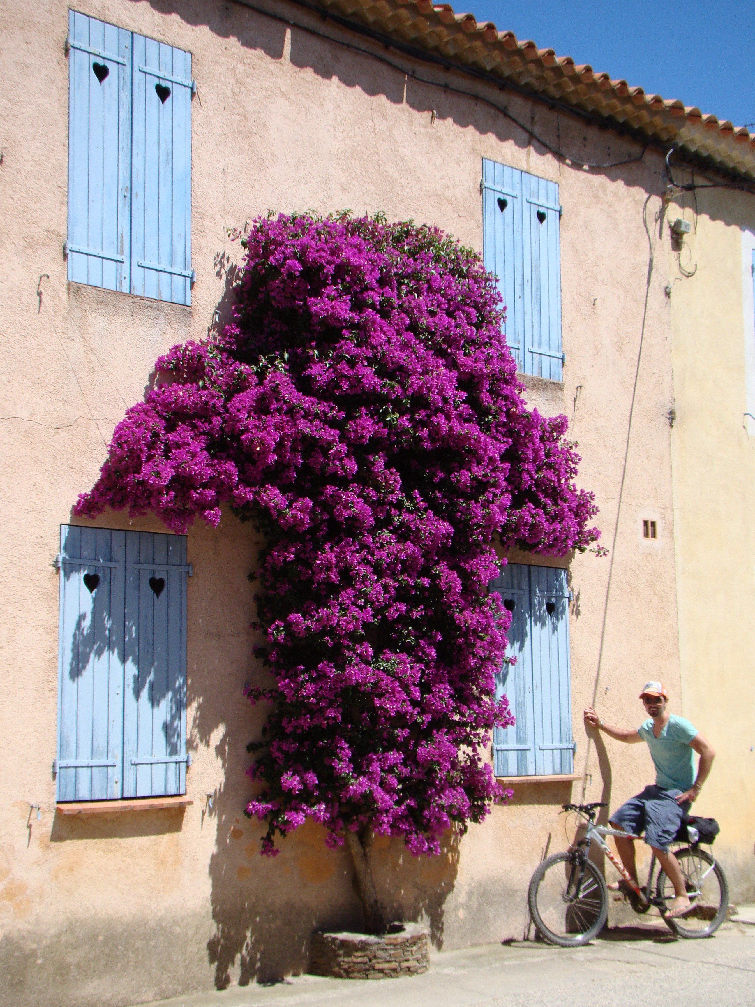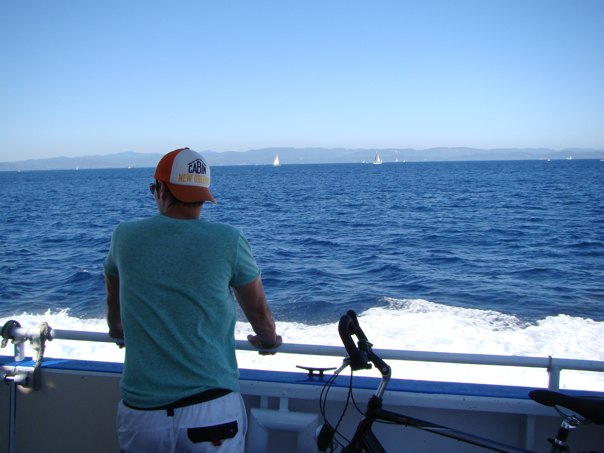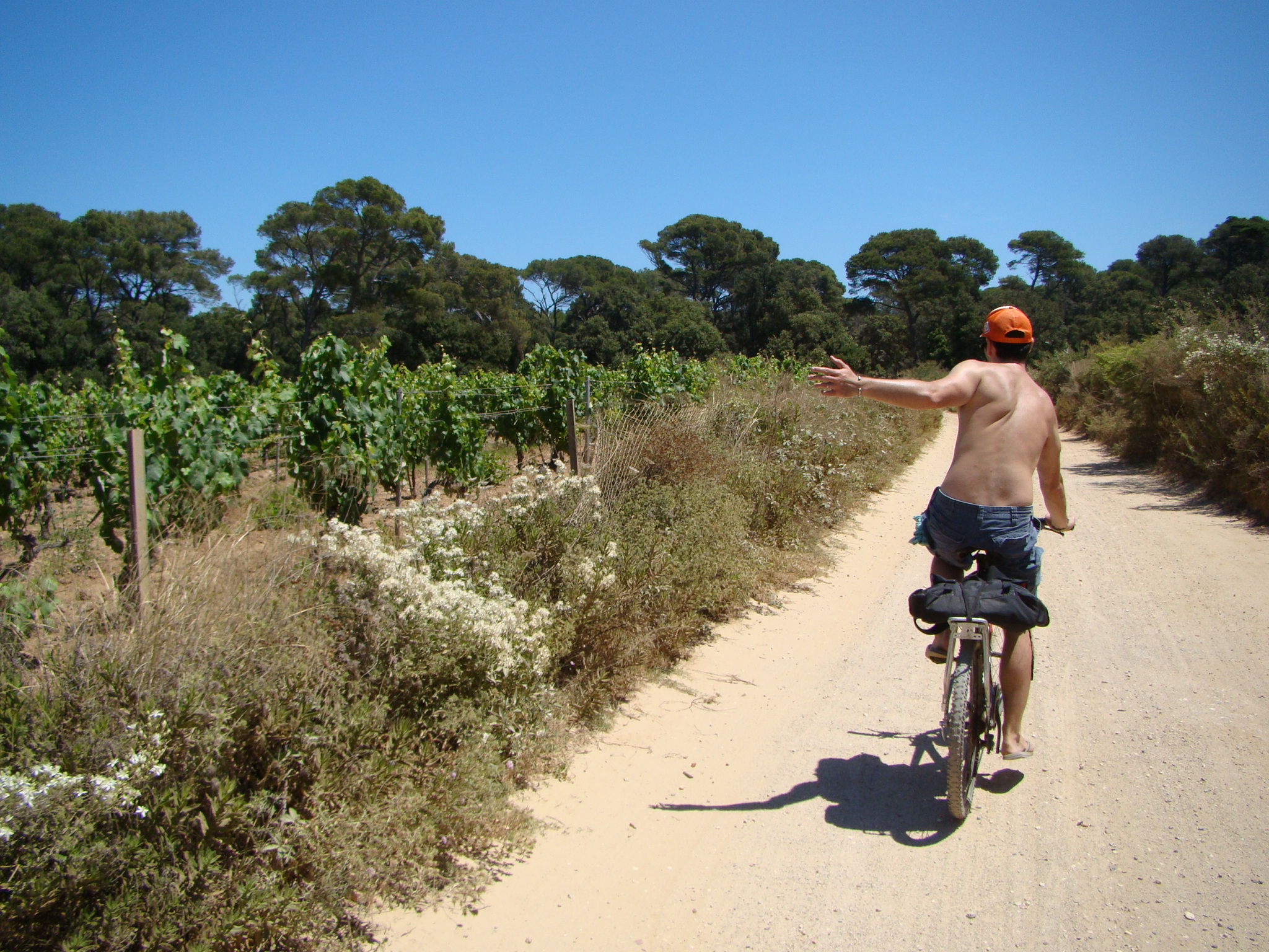 It was great to be back on a bike but the trail really tested our ambition of seeing various points on the island. I was impressed with Brigitte’s tenacious riding/handling although at a few steep points we both dismounted and pushed onward on foot (with the bikes by our side). The scenery was so awesome, the forest led to cliffs (with questionable edges), and view points where everyone would stop to take in the view. Then it was back through the forest which at times would lead to vineyards (part of the Cotes de Provence appellation). While taking it all in, I could only think of Loïc being right, very right.