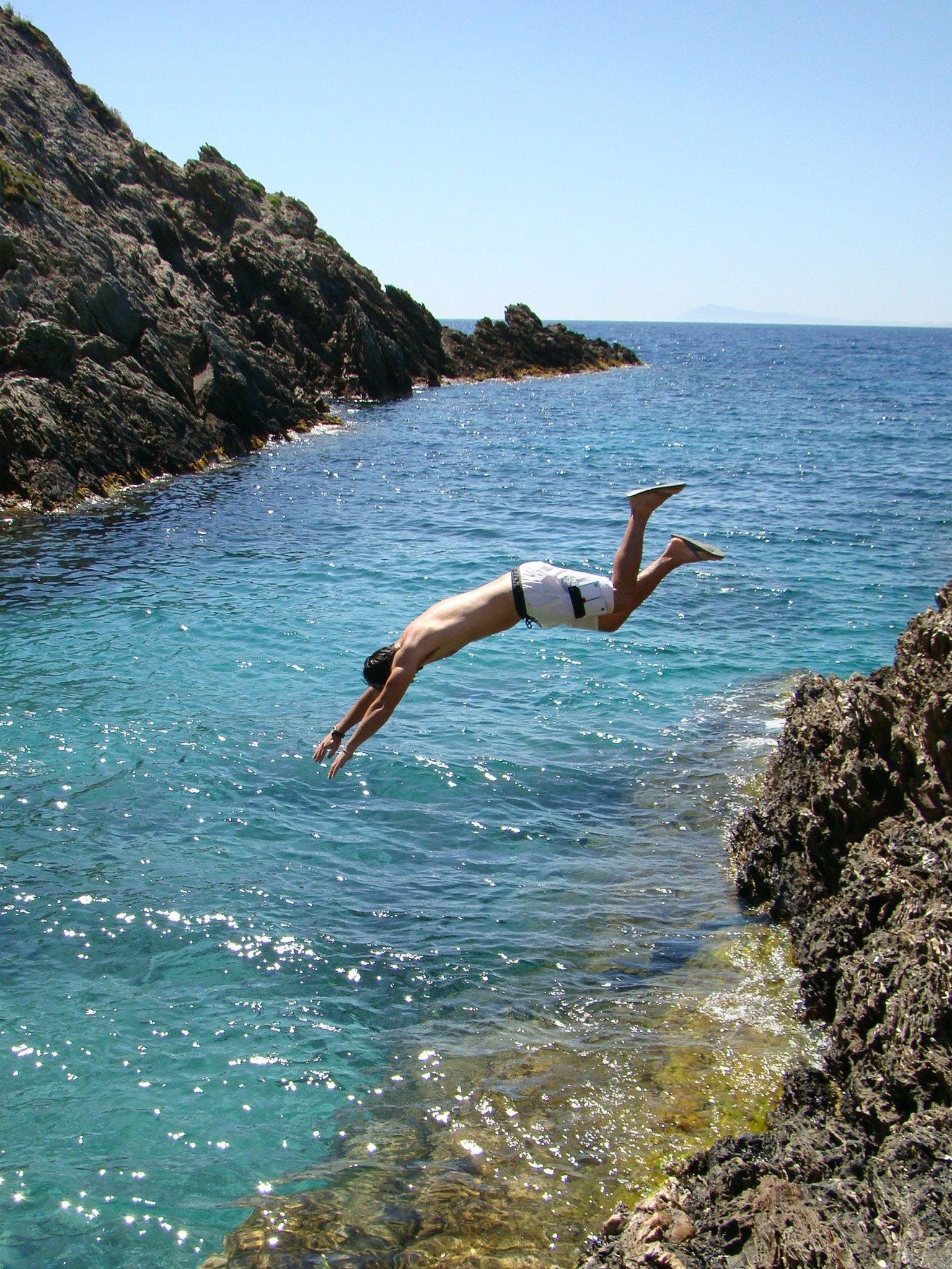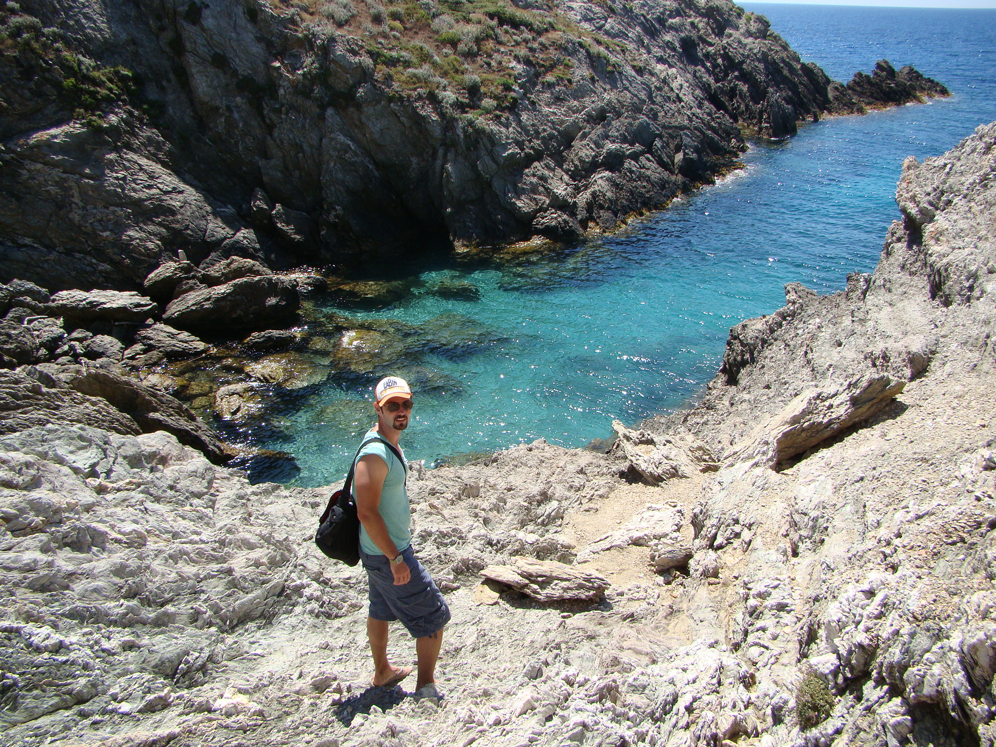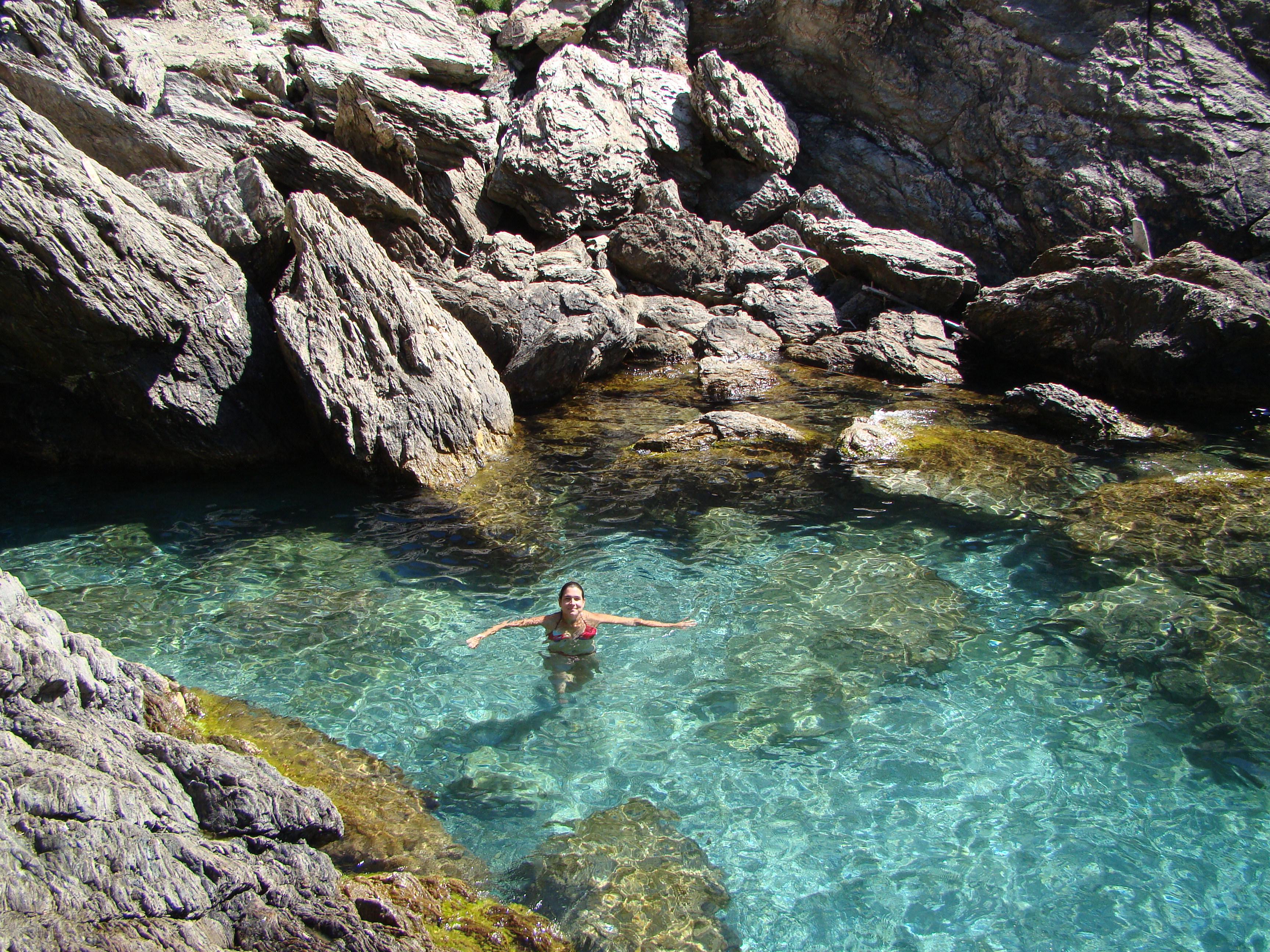 The water was perfect! Clear and warmer than at the beach area. Looking out into the horizon it was perfect blue as far as we could see. We took turns jumping and diving into the water from the jagged rocks (which are impossible to navigate barefoot). I was thankful for having my flip flops which were perfect for going in the water (but not so much for climbing the rocks, biking, and hiking). Our only regret was not discovering this gorge earlier in the day.. we could’ve easily spent the better part of our day there although it just wasn’t the same with others around.