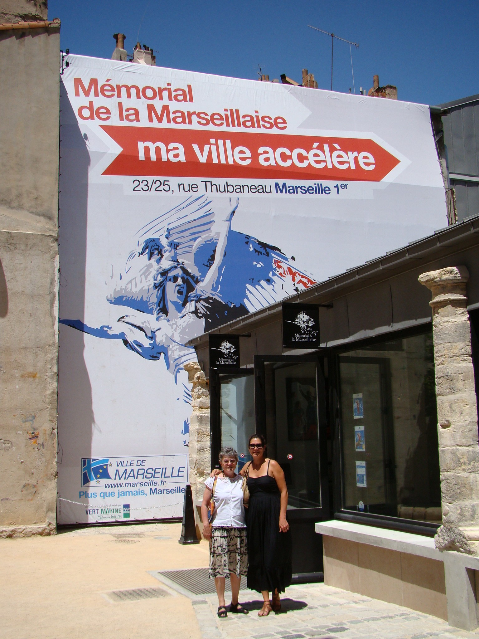 We spent the next day with Brigitte’s aunt Danielle who’s been living in Marseille for most of her life. We started out by having lunch in the Cours Julien followed by an expert tour of the city. Lunch was great and I got to try a real Andouille sausage (made primarily from pig intestine) as part of the mixed grill plate I ordered. It’s definitely an acquired taste which works well with mustard. Danielle has intimate knowledge of the city so we made our way towards the old town where Marseille emanated from centuries ago. We started out going by the house where her parents (Brigitte’s grandparents) actually met. Next we stopped in front of an unassuming building displaying a giant French flag on rue Thubaneau. This is a memorial to the Marseillaise (the French anthem). The name of the song was originally “War Song for the Army of the Rhine” but it soon became the rallying call to the French Revolution and was adopted as La Marseillaise after the melody was first sung on the streets by volunteers from Marseille. Hence the new name.