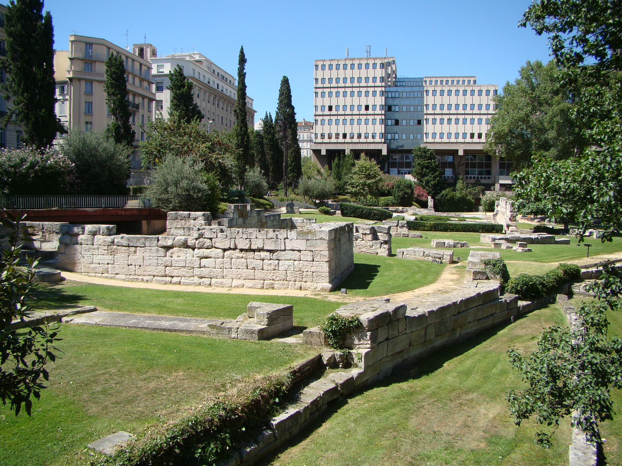 From there we marched on to the Vieille Charité (a beautiful stone cloister-like building in Baroque style), which served as an almshouse after it was built during the 17th/18th century. Today it’s one of the city’s most prominent museums. From there we headed to the “Panier” – a very old and great part of town with narrow uphill streets giving way to various plazas. Among them was Place de Moulins where three large windmills existed during the 18th century – today the plaza consists of beautiful residential buildings with some boasting the colors of Marseille (sky blue and white). From there it was to the ancient Greek ruins that were accidentally discovered due to excavations back in the 1960s. The Greeks settled and gave birth to Marseille so it was nice to see the vestigial ruins which sit in close proximity to the Old Port (which is where we ended our tour with Danielle by having a drink at one of the cafes).