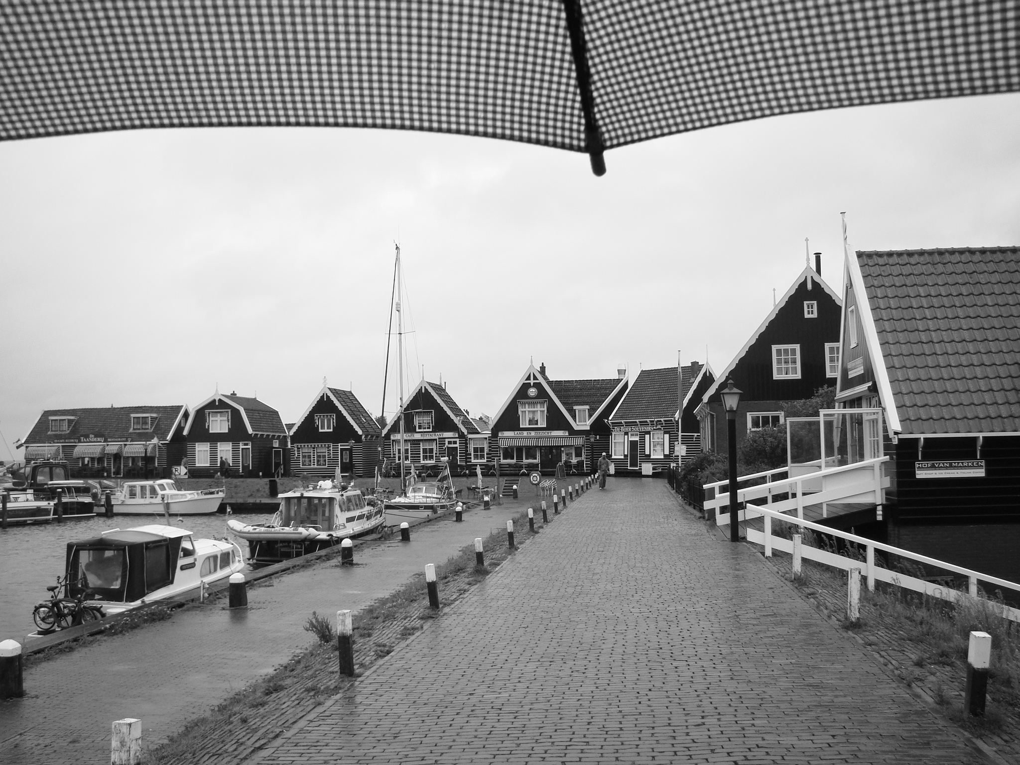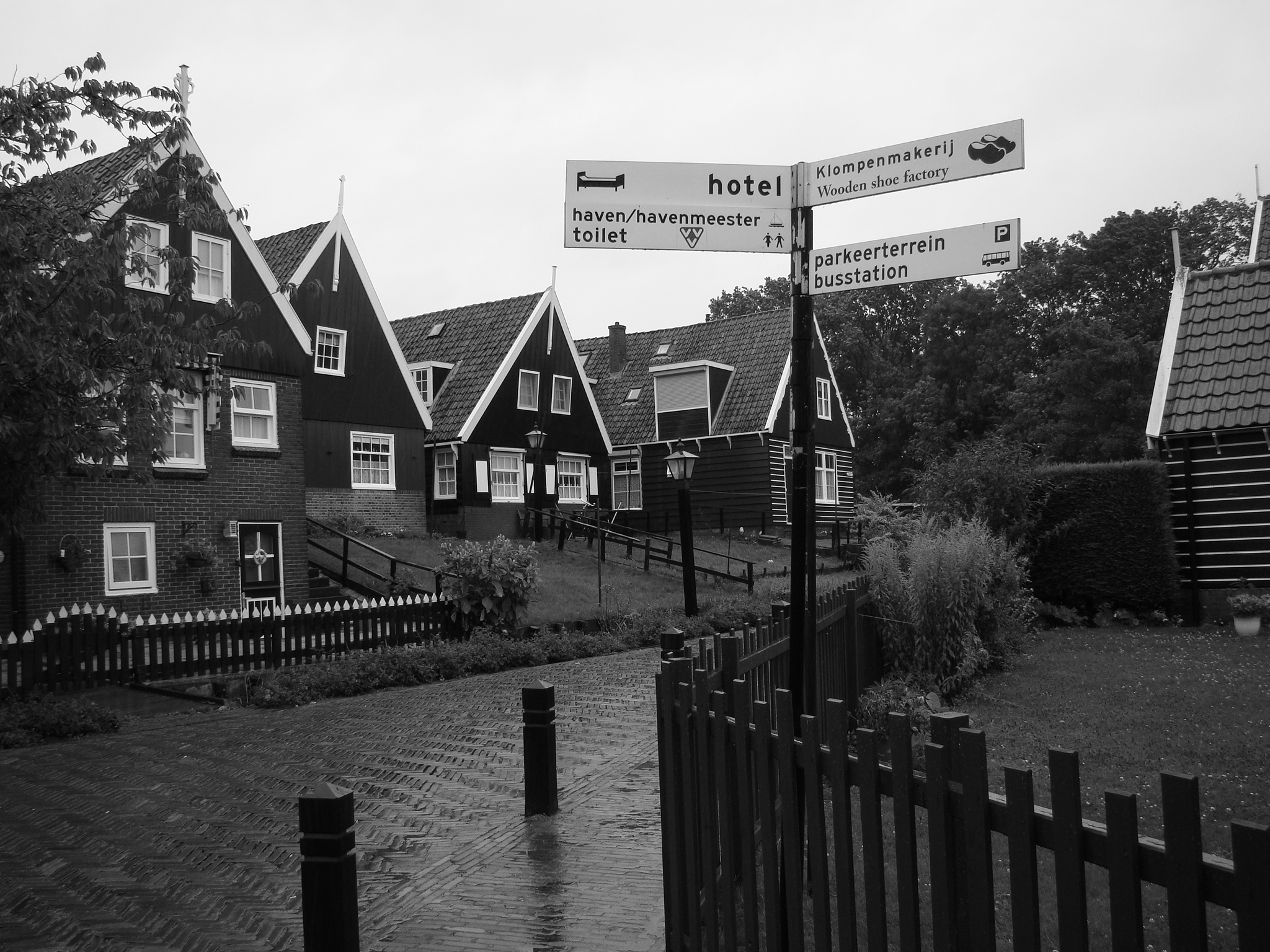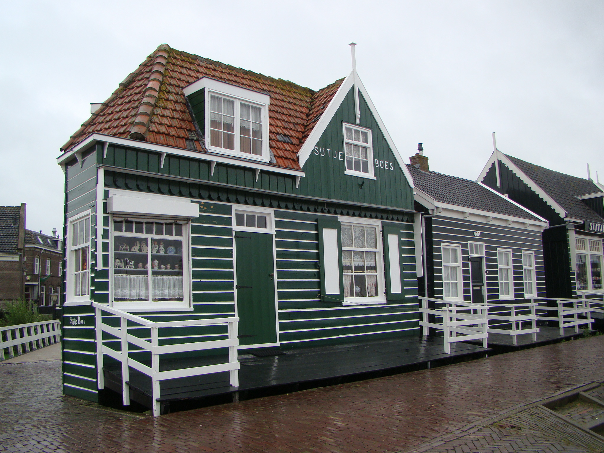 It was still pouring when we left the Heineken Experience so Edwin and Hind decided to take us outside of Amsterdam and show us a couple of typical Dutch villages for a unique look at life outside the big city. This is definitely an experience we wouldn’t have had had it not been for them. Broek in Waterland and Marken were the two villages we visited, both very quaint and canal rich. The interesting thing is that the “canal culture” was not a choice but an adaptation on part of the Dutch and serves as a unique and beautiful attribute to life in Holland. Marken (an old port and fishing town), is comprised of beautiful green and black painted homes made primarily from wood. Even in the rain their colors stood out sharply. We walked down by the port against a grey backdrop (both the sky and sea were a deep grey), with rain splattering at us and the wind whistling through the masts of ships resting in the port – and all I could think was this is the perfect setting for a Stephen King novel. We took refuge at an inn/restaurant overlooking the water that bore an incredible resemblance to any such place in New England. It was very cozy especially on what felt like a November day. Upon leaving Marken I noticed a tiny cemetery with numbers denoting graves instead of name plaques, and the thought of “Pet Sematary” entered my mind.. but as it turned out it’s actually a cemetery for people not pets.