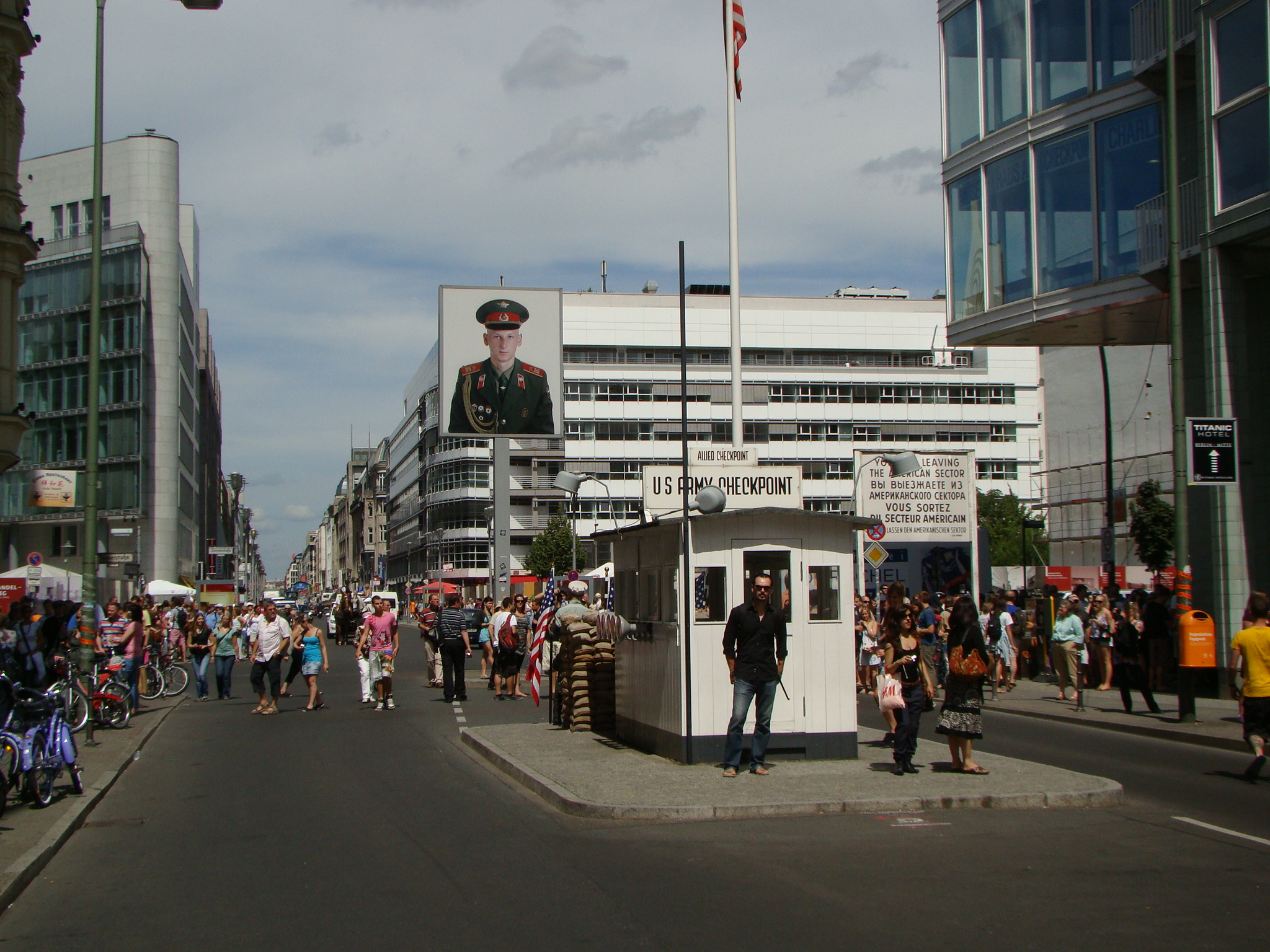 The next morning we set out for the East Side Gallery, the longest remaining piece of the Berlin Wall (about 1.3 km long) which is completely covered by murals and graffiti from artists around the world. The Berlin Wall was first constructed in 1961 and numerous “improvements/fortifications” had taken place since. What’s left today is a 11+ foot tall bitter reminder of an instrument that fractured a city, culture and people. What stood out most were the colorful murals (all of which were restored recently), giving vocation to the pain endured by East Berliners for nearly 30 years. From there we made our way to Checkpoint Charlie, the most well-known East-West Berlin crossing point linking the former American and Soviet sectors. As expected there were herds of tourists everywhere but I think we managed to take a couple of pics without 150 other people in them. Right next to the checkpoint is the corresponding museum which was our next stop but not before a quick bite of street food. This is where Brigitte had her fist “currywurst” the sausage we’ve heard so much about (basically a sausage cut into slices and seasoned with curry ketchup). The museum was set up in 1962 so today it’s pretty compact but they did a tremendous job in chronicling life in East Berlin. It was full of pictures and relics from the years after WWII to 1989 when the Wall came down. Most impressive were the stories, methods and devices utilized by some East Berliners in making their escape to West Berlin – from people hiding is car engines, suitcases, to escaping via underground tunnels, air balloons or flying car type vehicles, to mini acquatic propulsion system. The immeasurable will to escape led to a paramount level of creativity. But with some of the successful escapes also came tragic failures which were somberly depicted as well.