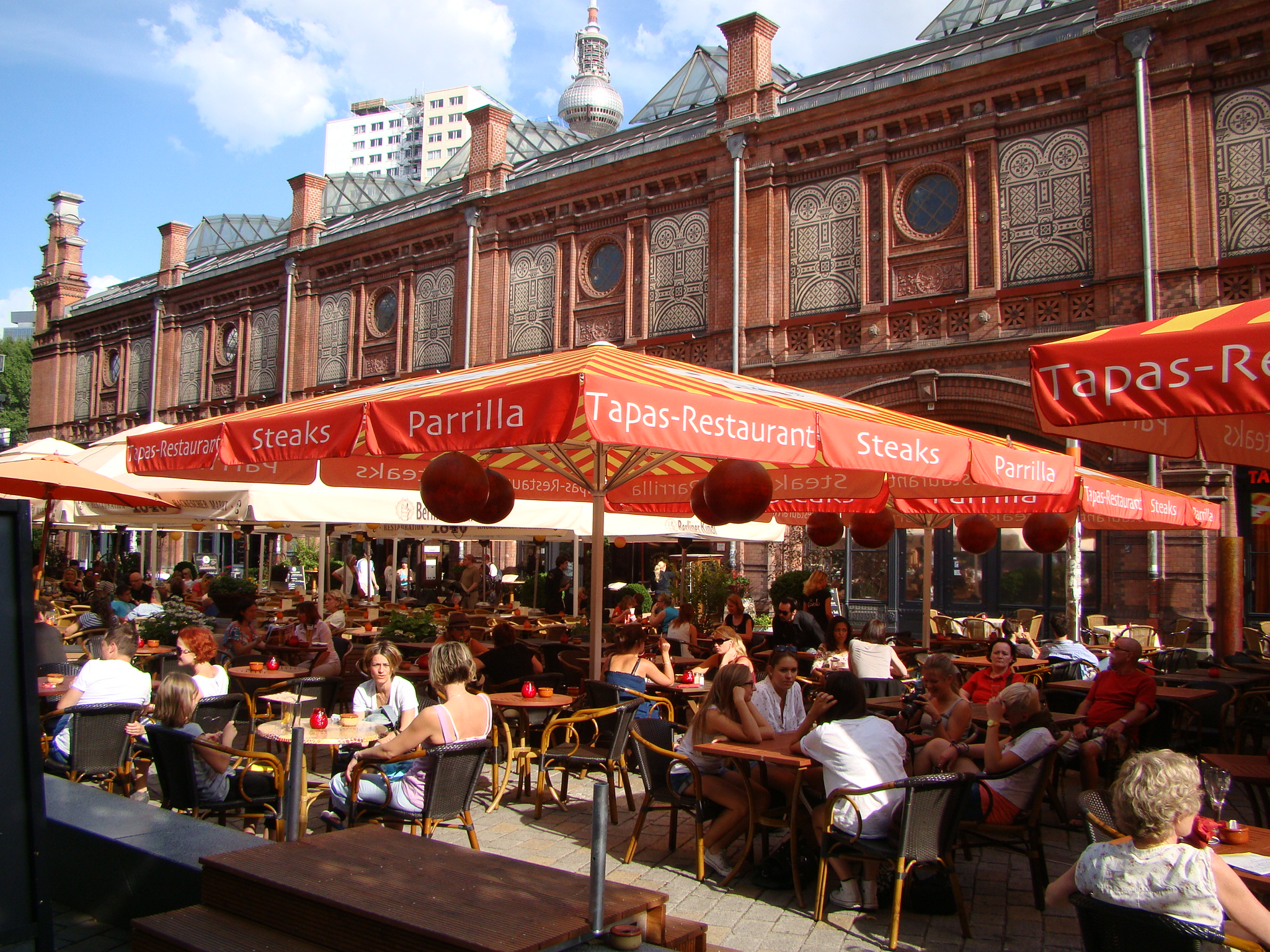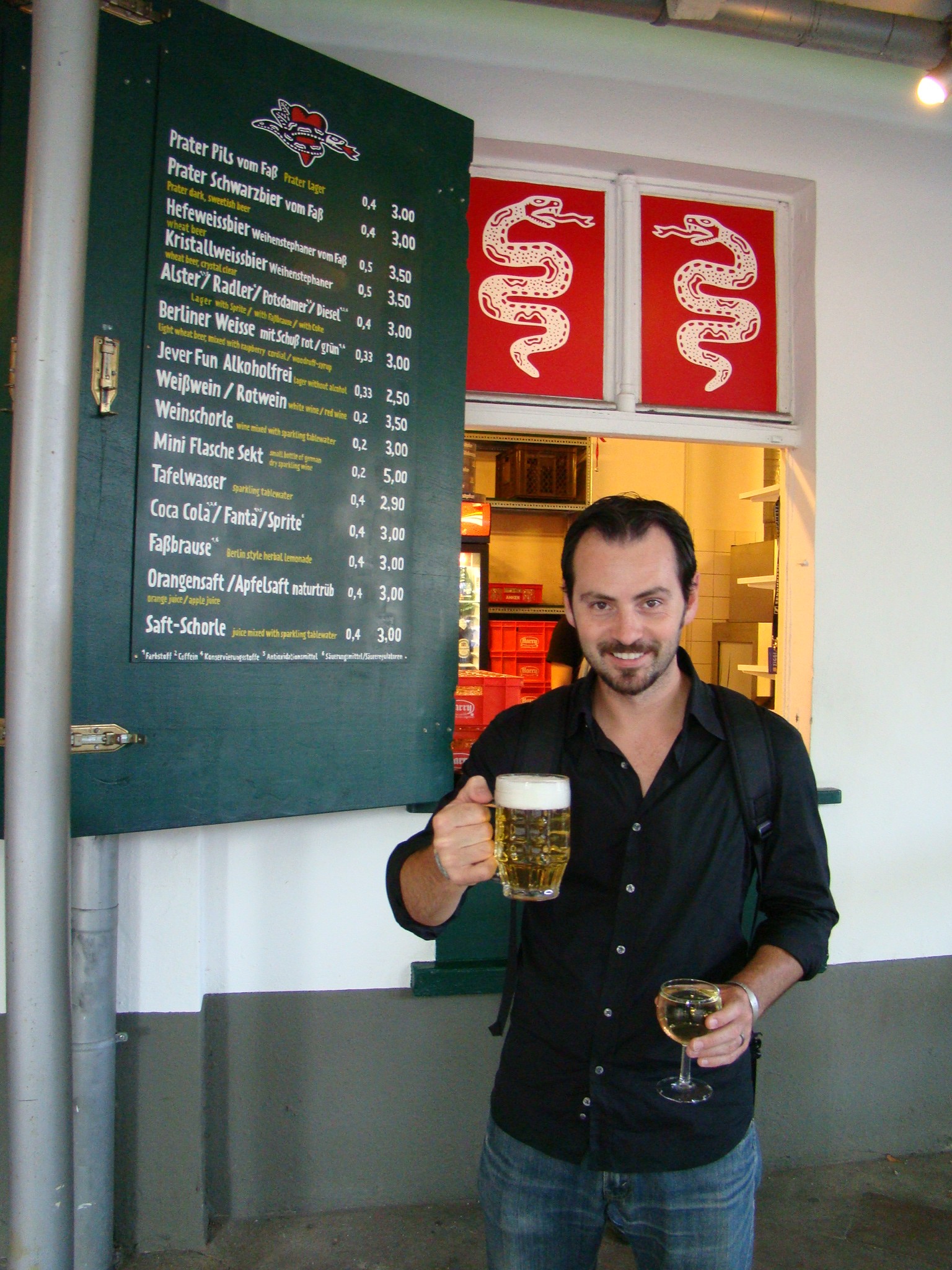 After the museum we walked through a couple of different neighborhoods and checked out the Topography of Terror, the Brandenburg Gate and the Reichstag (the impressive Parliament building) that was crawling with Polizei (Police); apparently Sarkozy was arriving in town the next day. From there we continued on in search of a “locals” area where we could cool down with a drink. Our search landed us in Hackescher Markt which was filled with restaurants, bars and shops and tourists as well. We stopped at one of the restaurants and took in the ambiance as well as the replenishing sun rays. From there Brigitte suggested that we make our way to Prenzlauer Berg (the northern section of Berlin), which turned out to be our favorite neighborhood as not too many typical tourists linger up there. Cool bars, cafes, bookshops and restaurants dressed the streets which evoked a Brooklyn-like feel. Needless to say we felt right at home, especially upon finding a Beergarten! We spent the rest of our evening at Prater Garden (Berlin´s oldest and largest beer garden) watching and doing like the locals – enjoying a Berlin pilsner which kicked ass!