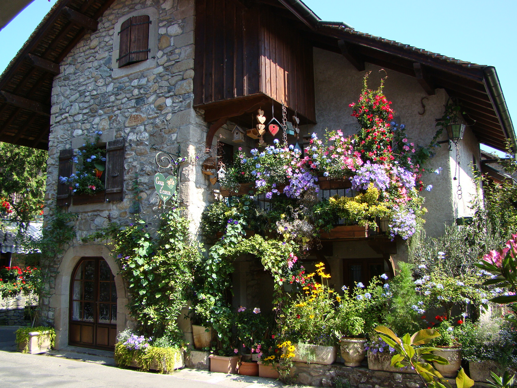 The last time we were in Evian we wanted to see Chateau Ripaille (a lovely 14th century castle located in the nearby town of Thonon surrounded by vineyards), but unfortunately we didn’t. This time around we got to tour the chateau which belonged to the Duchy of Savoy (the rulers of this area from the 15th to the 19th century). The Savoyards flexed their muscles throughout northern Italy as well as parts of Switzerland and France – they seemed to enjoy castle life, wine culture and torturing enemies. We also visited the chateau’s forest which occupies several hectares of the surrounding land, giving Ripaille an isolated countryside feel despite its suburban location. Staying within a medieval mindset, we later took the ferry (on Lake Geneva) to nearby Yvoire – a tiny medieval town that combines rugged stone homes with affluent floral displays and scenic views of the lake. The town is rated “4-flowers” according to the floral scale assigned to the prettiest flowery towns in France and rightfully so.