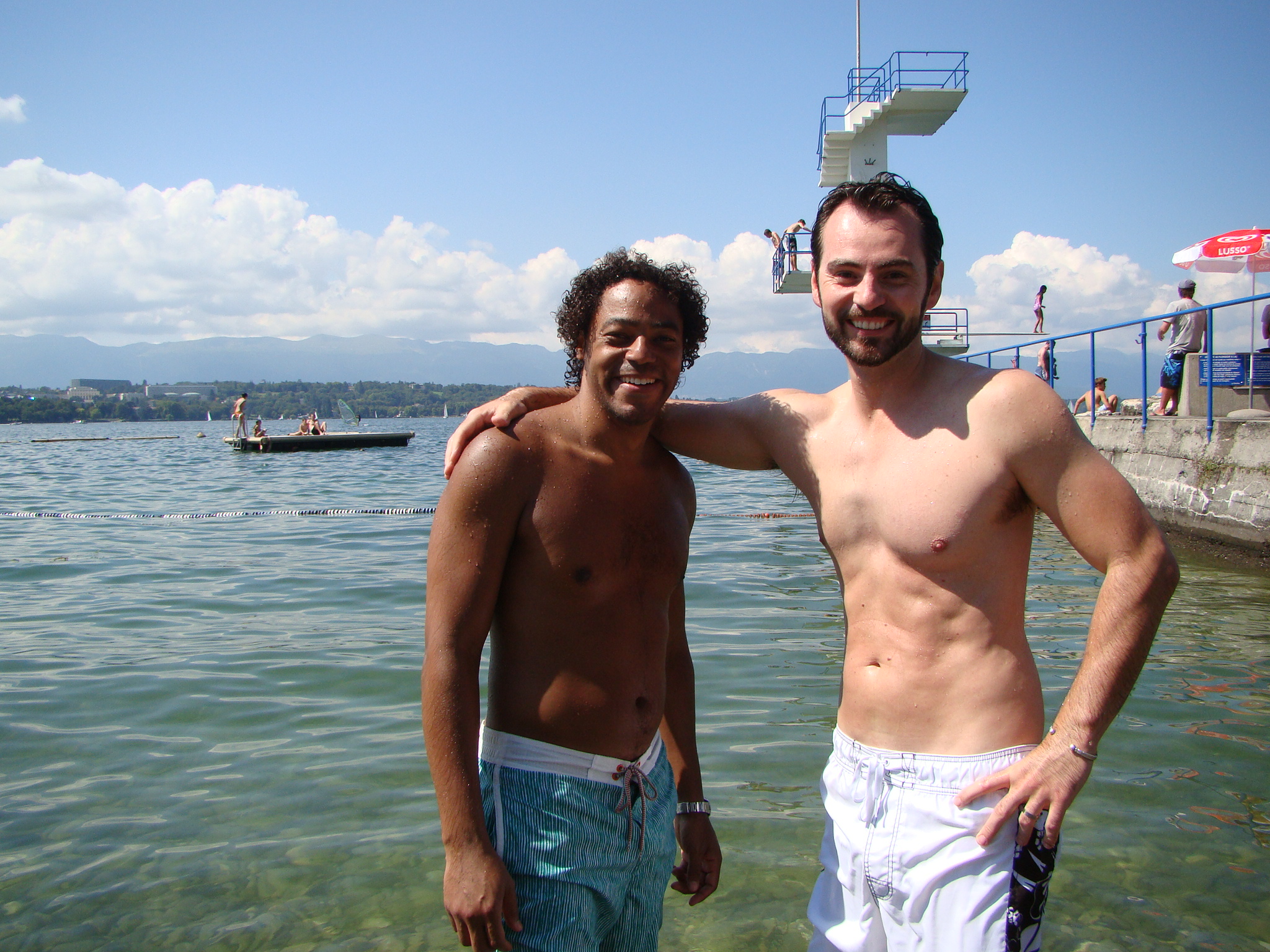 For the next couple of days we decided to pop into Geneva one more time and hang with Dawda, Claire and Aden. Sunday was a gorgeous day so we made the best of it by going to Geneva Beach – a perfectly manicured grass park edging on Lake Geneva comprised of several swimming pools, orderly beach lockers, concession stands, etc. Oh and a very erect diving platform over the lake with its highest point topping off at about 35 feet – something I instinctively blocked out of my mind as reassurance of never giving one ounce of thought to the notion of free fall. But then again, what’s a day at Geneva Beach without jumping into the lake from the diving platform? At least that was Dawda’s disposition.. but why I chose to follow suit and plunge from that height (which for many is but a hop), I still can’t comprehend. Right before taking that proverbial leap of faith I told myself, when ever will you have the opportunity to crash into Lake Geneva at free-fall speed right after one of your best friends did it without a second thought. Not to mention that I would’ve become the laughing stock of several much younger children who were at the top of the platform right behind me anxiously awaiting their turn. If you don’t like heights (and I certainly don’t), then don’t test yourself unless you can handle the repercussions – which for me meant a delayed case of extreme nausea followed by projectile vomiting and headache. Not only that but I was also sidelined for Claire’s delicious pasta dinner that night and Dawda’s uncorking of a 2000 Layer Cake Merlot – which Brigitte said was delish. Playing Johnny Bravo served me right.