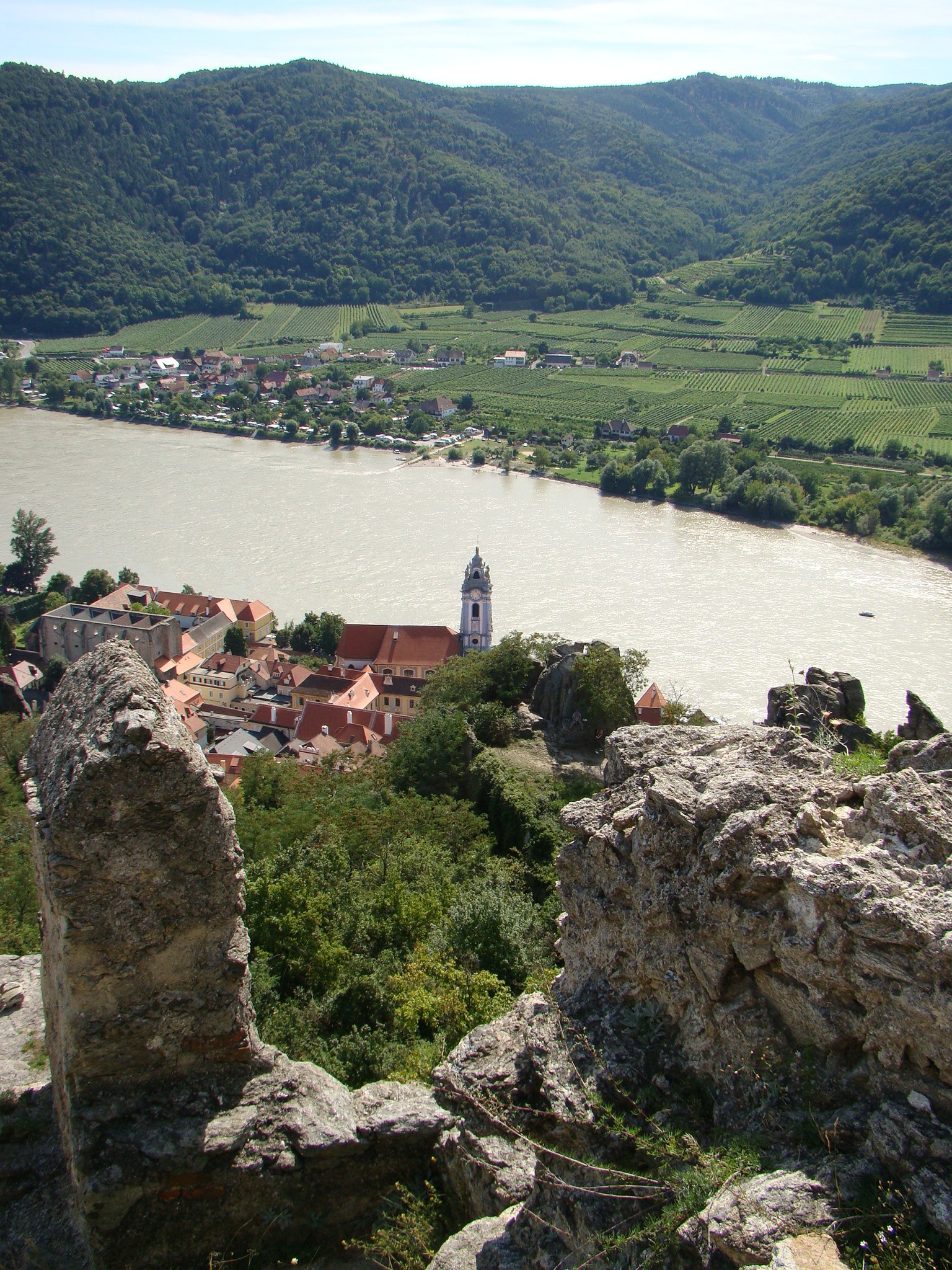 From Melk we enjoyed the drive along the bank of the gluttonous Danube (with terraced vineyards to our left), zipping from one village to the next until we hit Dürnstein. The tiny village was not just our intended destination.. overloaded with tourists (and tons of bikers sporting uber tight spandex shorts), Dürnstein is a tourist magnet due to its intrinsic charm and the Kunringerburg Castle ruins perched up on the hill right behind it. Our ambition of mounting the ruins ran strong despite the 85 degree temperatures. 350+ steps later (or 25 minutes of climbing), we were rewarded with a gorgeous view of the valley down below.
