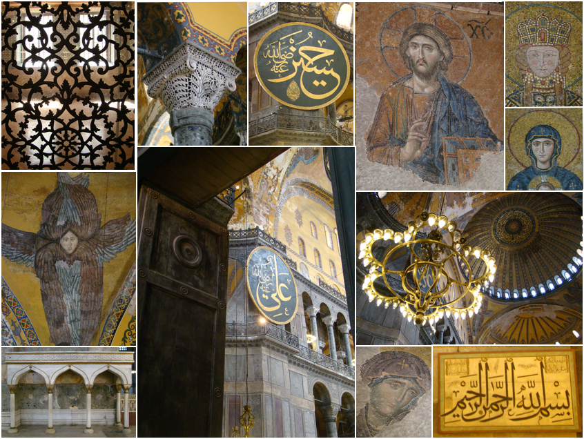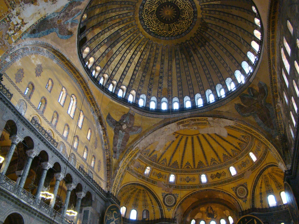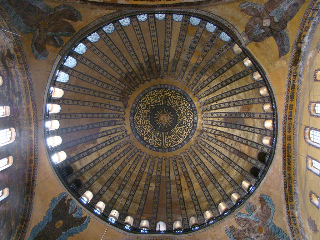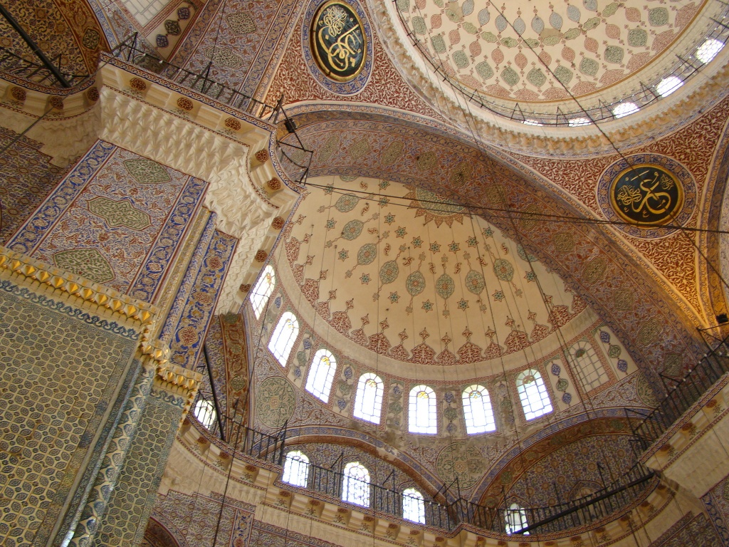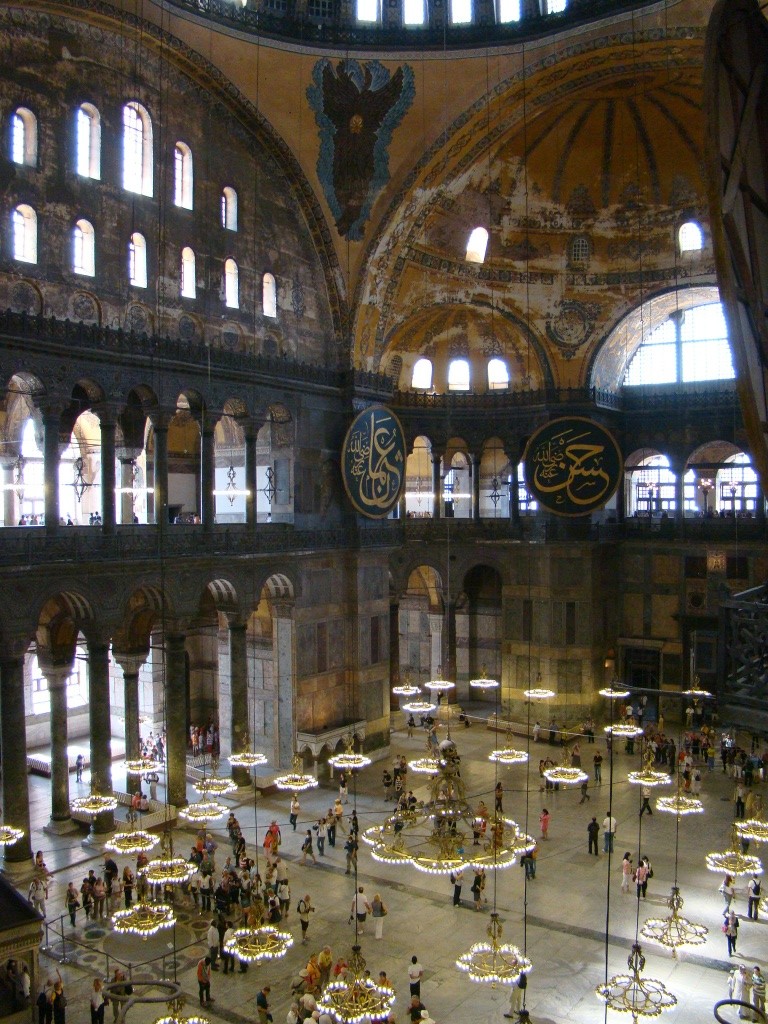 Right across from the cistern was our next stop – the Hagia Sophia. Initially constructed as a Byzantine Orthodox Basilica in 6th century, Hagia Sophia would become the world’s oldest and quickest built church (also under emperor Justinian I). It served for centuries as a Christian church until 1453 when Ottomans converted it into a mosque due to their conquest of Istanbul (and beyond). In 1935, Hagia Sophia was declared a museum and has greeted millions of visitors since. The sheer magnitude of the structure and especially its dome can leave you with a soar neck. Remnants of Christianity were still visible in the numerous mosaics (depicting Jesus, Mary and various saints), that adorned the interior. Another highlight were the gigantic Arab calligraphy plates (circular in shape with green backgrounds and gold writing), with words dedicated to Allah and Islam. The highest point of the dome was 160 feet and staring up at it gave off a sense of spirituality.