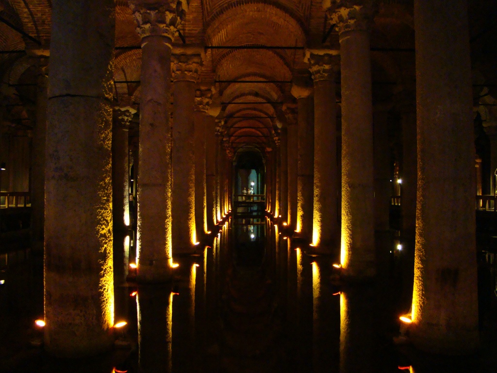Right next to the market was the Yeni Camii (New Mosque), which we visited next. Built between 1597-1665, the new mosque set the stage for two of Istanbuls’s most significant landmarks that we’d see later in the day (the Hagia Sofia and Blue Mosque). Grandiose in appearance, meticulously elaborate in decor and impressive in architectural style, is what struck us about the New Mosque. From there we made our way south to the Basilica Cistern, an incredible piece of underground architecture and innovation built between 527-565 under Byzantine emperor Justinian. 336 marble columns obstinately hold up the ceiling arches and the total capacity for water was 100,000 tonnes. Notably two column bases are Medusa heads (one on its side and the other upside down), showcasing architectural touches from the Roman period. The reason for the unorthodox positions of the heads was so that onlookers would not turn to stone (as legend had it). The dark and mysterious cistern stamped a profound impression on us, in part due to its intrigue, history and balancing act. Aside from serving visitors, the cistern is at times also utilized for classical music concerts due to its acoustics. Side note: a scene from James Bond’s “From Russia with Love” was also filmed there in the ’60s.