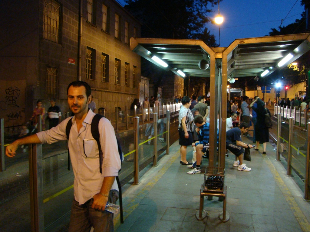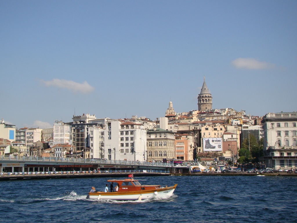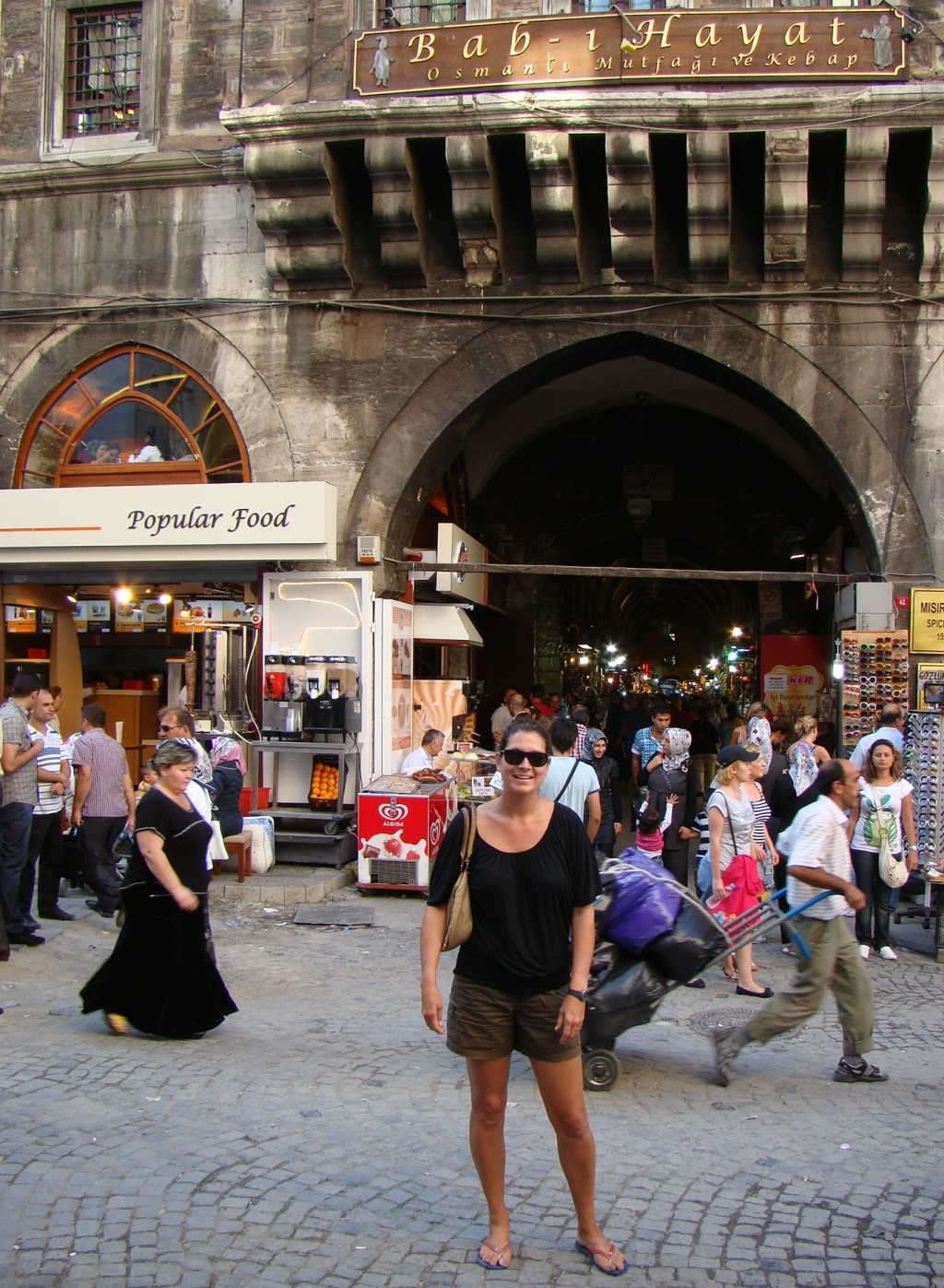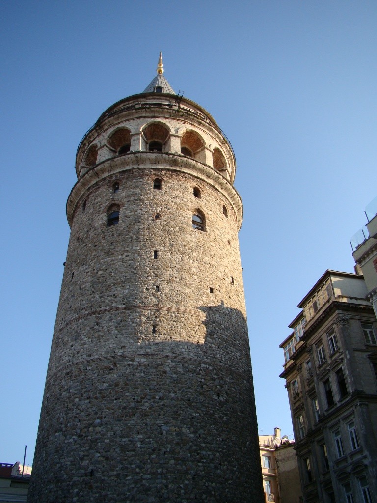The river tour ate up a good chunk of our day after which we checked out the Galata Tower area in Beyoglu. The tower was built in 528 during Byzantine emperor Justinian. Brigitte was excited about capturing the sunset from atop the 180+ foot tower so we headed for the entrance attempting to join the back of the line. A man in a white shirt and black tie declared “closed” or “tower closed” as we approached. This baffled us since it wasn’t even 7pm and the tower’s hours were until 8pm. Not knowing whether he actually worked for the tower (and speculating that he wanted us to grease him up), we defied his order and stood firm in our position of entering the tower. Brigitte whipped out her guidebook and showed him the hours which stated 8pm as the close, although this didn’t phase him. He did manage to turn away everybody else and then agreed to let us stay (although in our minds he had just gotten the point – we wouldn’t be turned away). In the end Brigitte did capture the amazing sunset and our white-shirted black tie friend did actually work for the tower. So we can chalk this one up as a rare victory due to the language barrier.