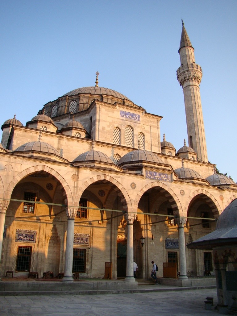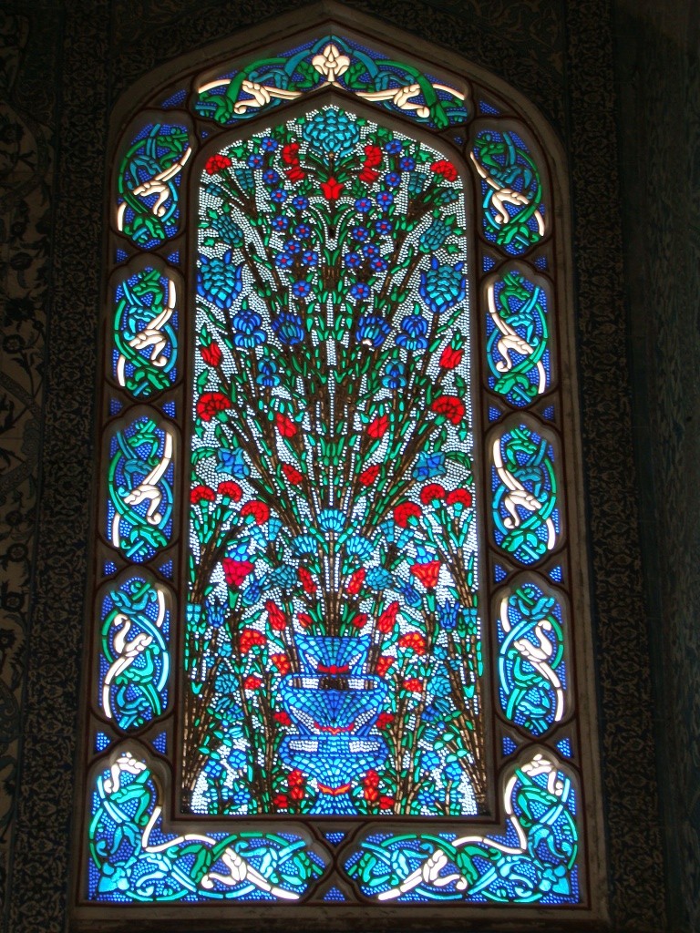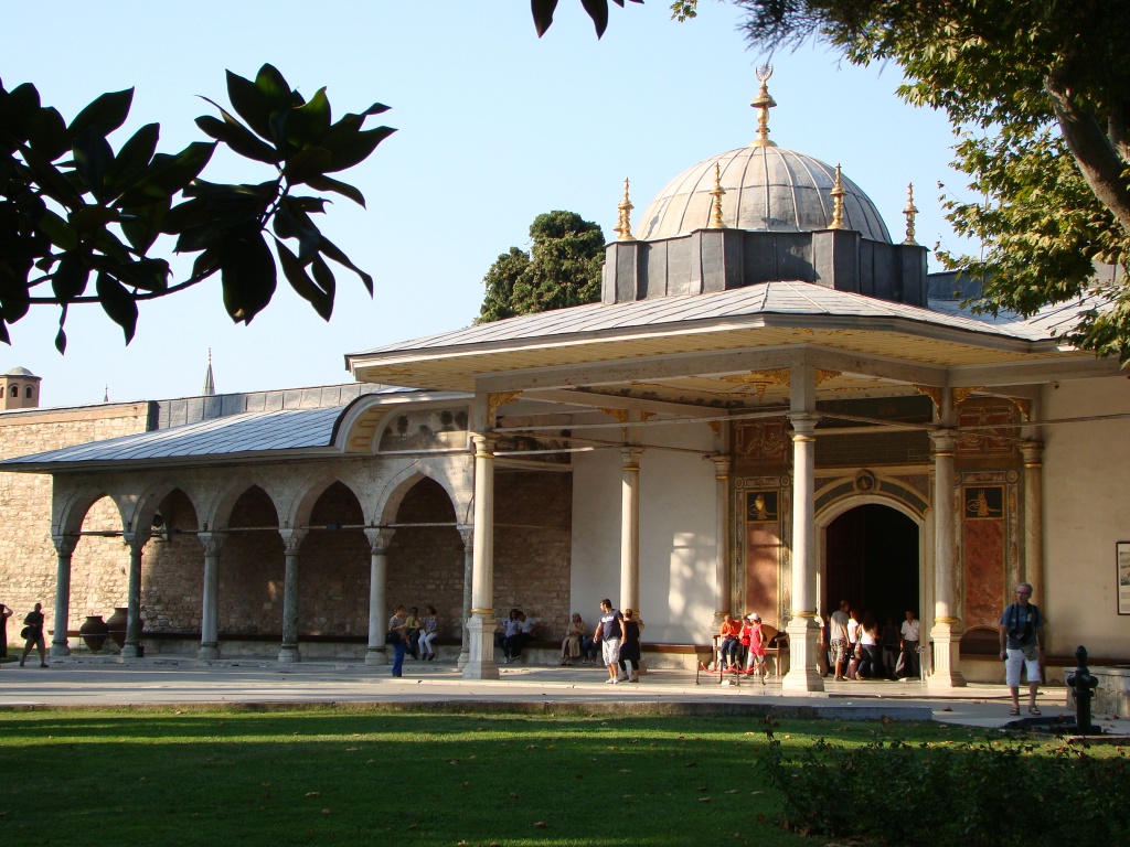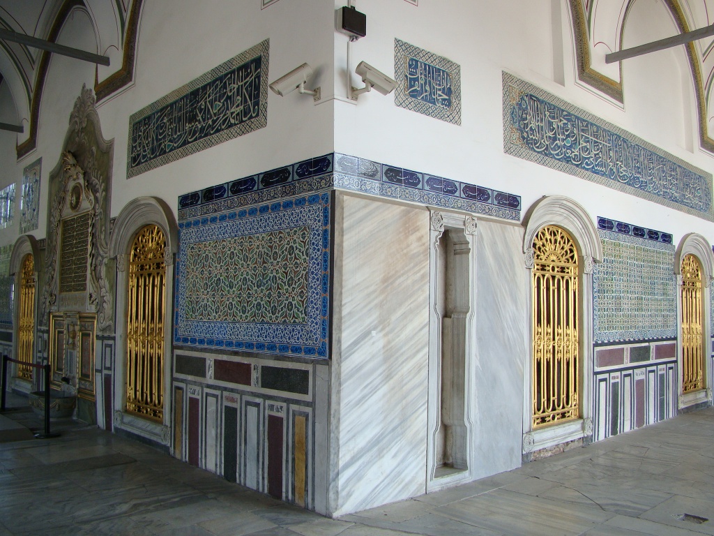 The next day (our last in Istanbul), we visited the Topkapi Palace complex. An extensive complex built in 1478 during Sultan Mehmet’s reign, the palace served as the primary residence of 26 (out of 36), Ottoman sultans over a 400 year period. It’s also the largest and oldest palace in the world. We wandered through various pavilions, halls and gardens, most of which exhibited artifacts and relics from Ottoman times. The treasury halls’ holdings were highly impressive – among the rare items exhibited were: The Spoonmaker Diamond, an 86-carat diamond (4th largest in the world), the Topkapi Dagger (which became the symbol of the palace), and other lavish gems and jewels and sultan thrones. Also on display there (and in the Weapons Hall), were numerous swords that belonged to the former sultans. Another highly notable gallery was that of the Islamic Relics, which comprised several possessions of the prophet Muhammad including his cloak, sword and bow, his footprint, a tooth and hairs from his beard. Also in that gallery was the staff of Moses.