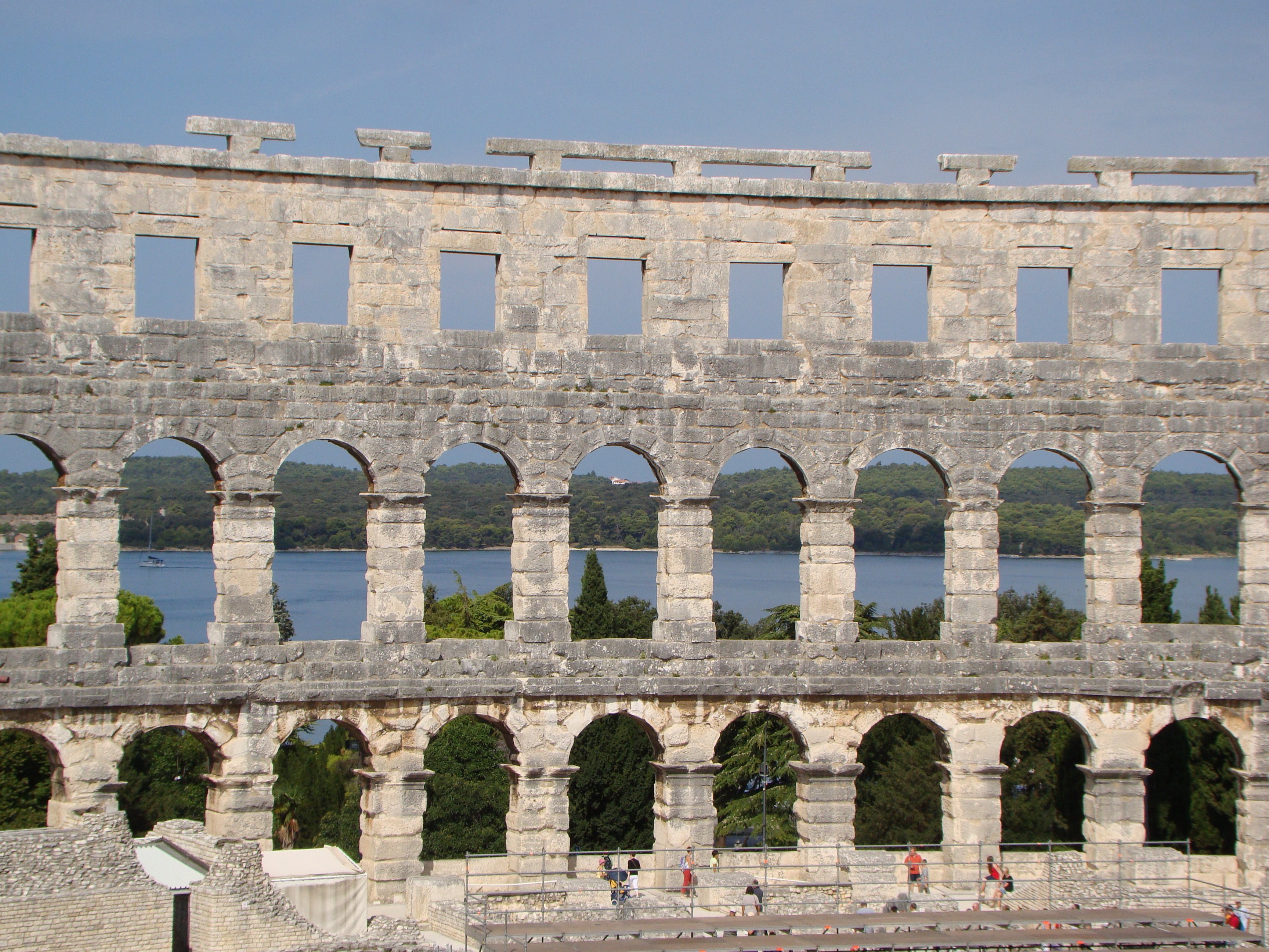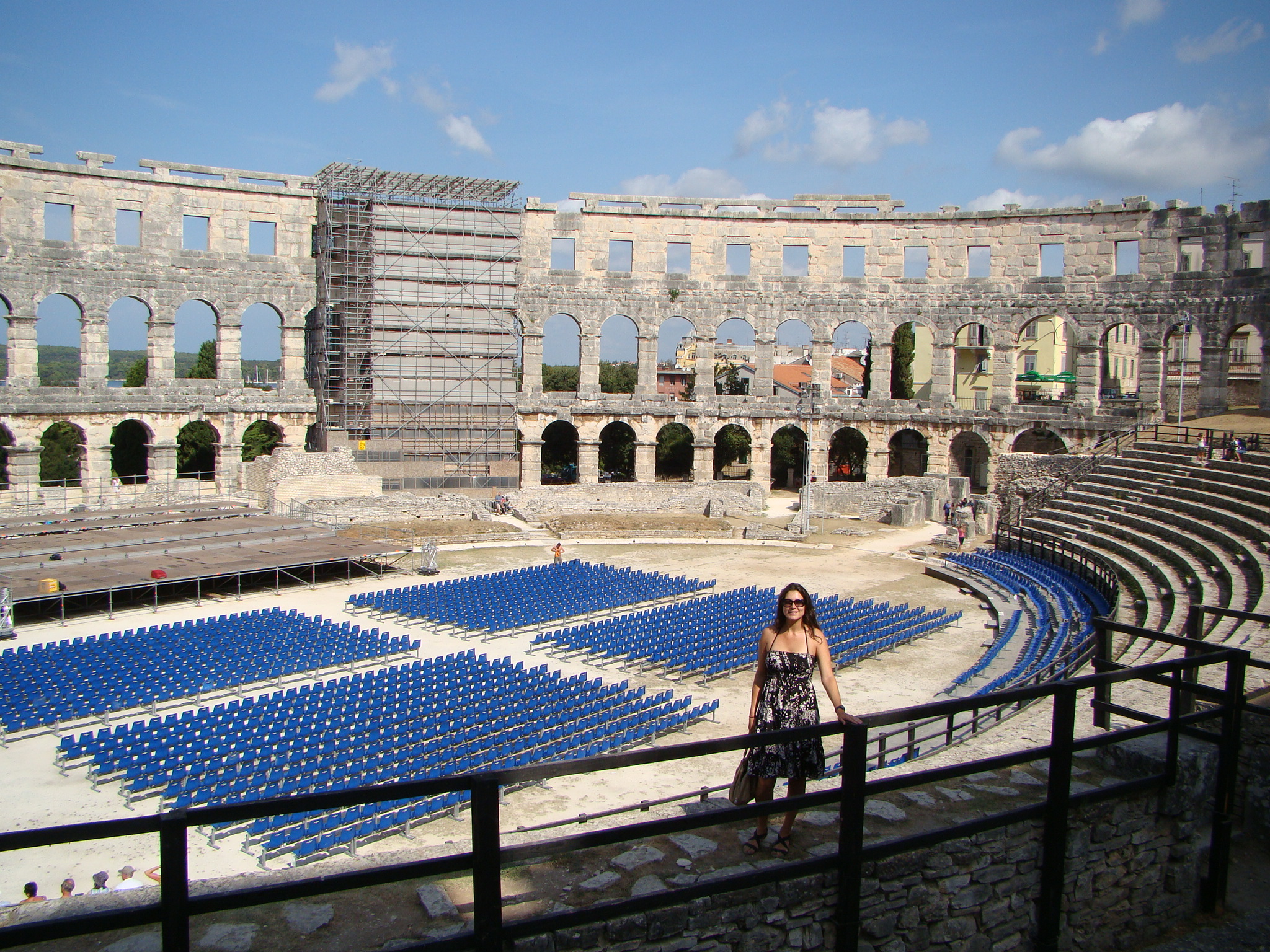 The next morning we headed for Pula, Istria’s largest town and also home to an incredible 1st century Roman Arena or Coliseum (one of the 6 largest in the world). Its capacity was 20,000 but much of the interior stone seating has been removed. It’s also one of the best preserved from its time. Standing inside of it gave us an idea of its magnitude. Entering its underground layer gave us a different perspective. Where an exhibit on ancient amphorae stands today, was the subterranean tunnel through which mortally wounded gladiators ignominiously exited the arena.