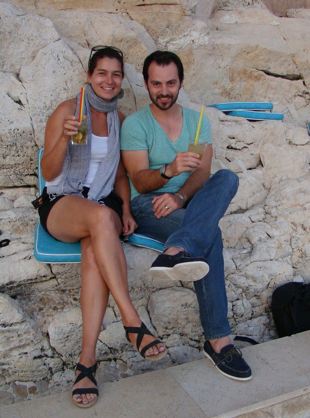 After Pula we made our way back to Rovinj where we took a little beach break for a couple of hours. Then we roamed the streets of the city once again taking in the perfect little town’s splendors. Our first pit-stop was at a winebar, sitting at the sidewalk table observing the passersby and hearing a concoction of languages being spoken (Serbo-Croatian, Italian and German). Down by a waterfront we’d find Vile Joze, our dinner place specializing in local cuisine. We both ordered fish as the main course but it was the appetizer that completely stole the show – grilled squid in the local olive oil with chopped garlic accompanied by a potato spinach side. Un-f’ing-believable! Neither of us could remember the last time we had anything so tasty yet so simple. To wash it all down we went with a bottle of the local Malvazija, a zesty and minerally white wine that’s easy to drink with or without food. There was no room for desert so instead we opted for an after dinner drink at Valentino, an imaginative bar making the best out of the jagged limestone formations that serve as the boundary between the bar and the sea. Soft turquoise colored cushions were sporadically placed on the rock making for front-row seating to the sunset show. Hand in hand we watched the fiery red star give in to the horizon.