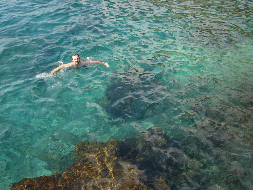 The rocky (mostly locals) beach right outside the old city was our refuge for the next couple of hours. It even had waterpolo goals set up so I was ready to relive my childhood dream of becoming a waterpolo goalie. One of the local boys took to my calling and we tossed the ball around. Most of what he threw my way made its way past me but on several occasions I did manage a few saves without gulping too much saltwater. It was exhausting but also exhilarating. Brigitte (half laughing at me), enjoyed successive dips in herself in combating the hot day.