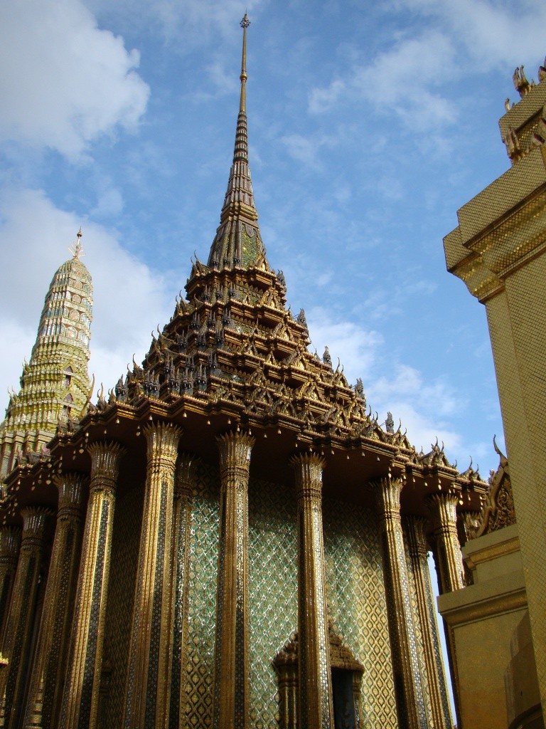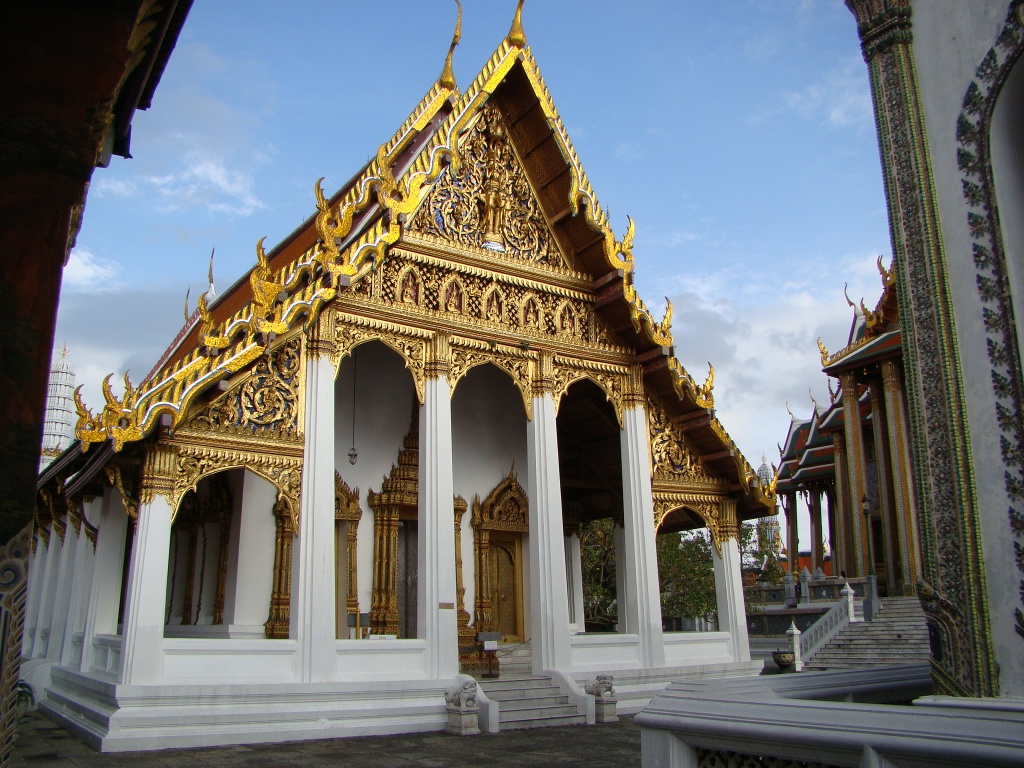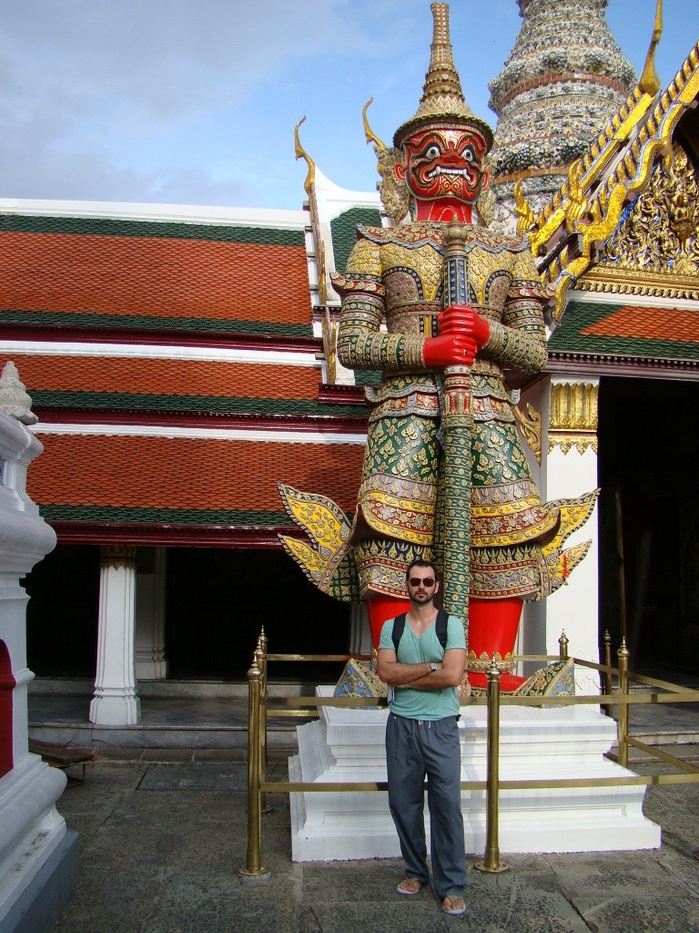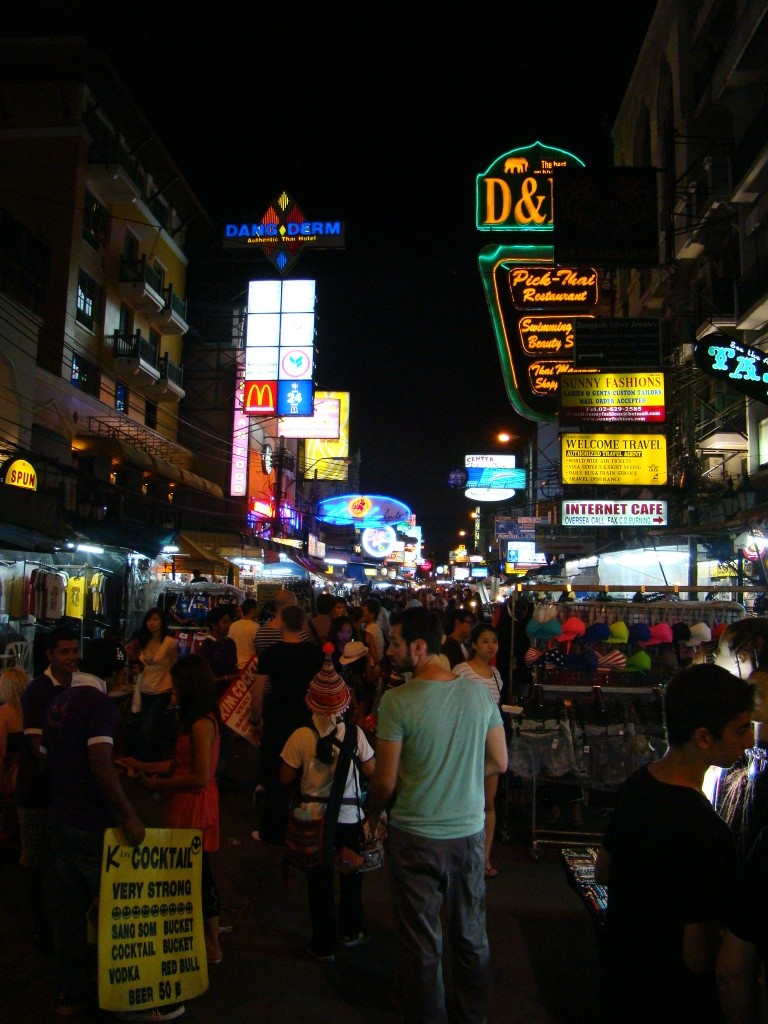 After taking in the Grand Palace complex and its intricately beautiful temples and halls, we made our way back to our neighborhood for dinner and some relaxation. Our street (Khao San) was in full form with commerce, partying and good times all around late into the night – our night ended with the air conditioner drowning out the thunderous street buzz.