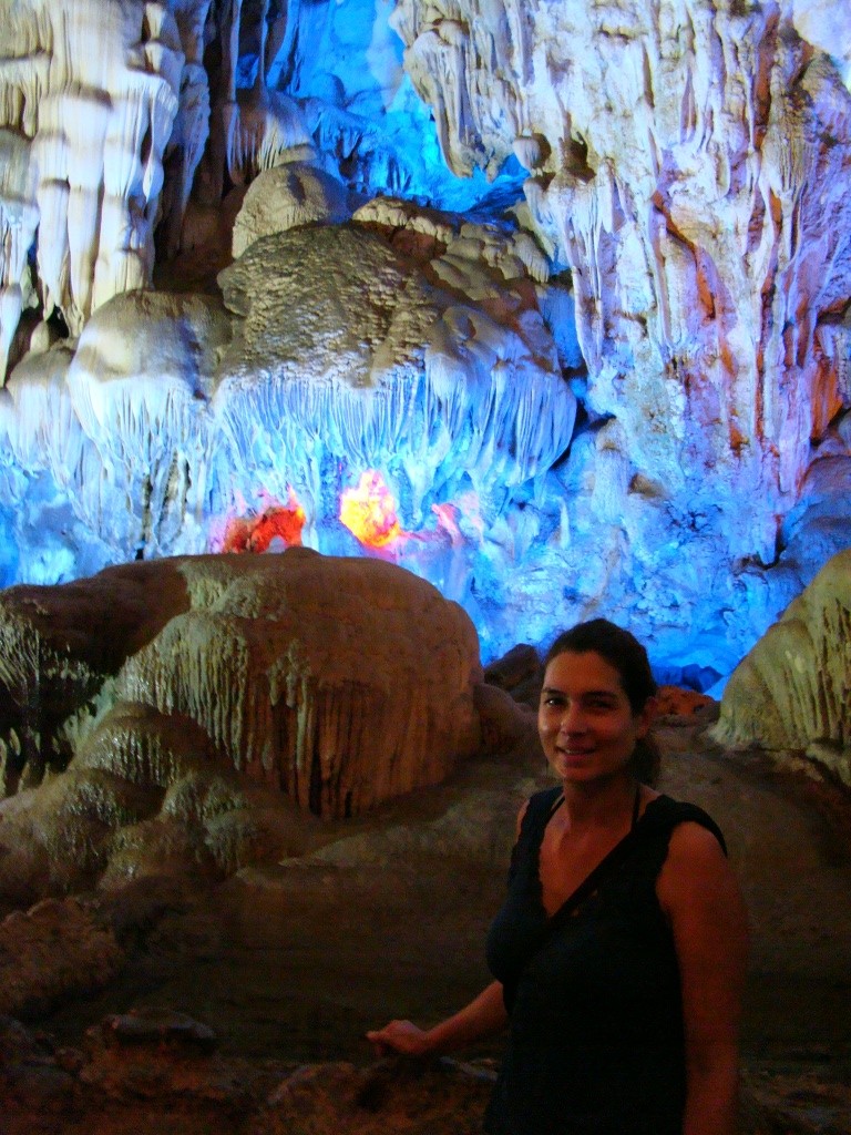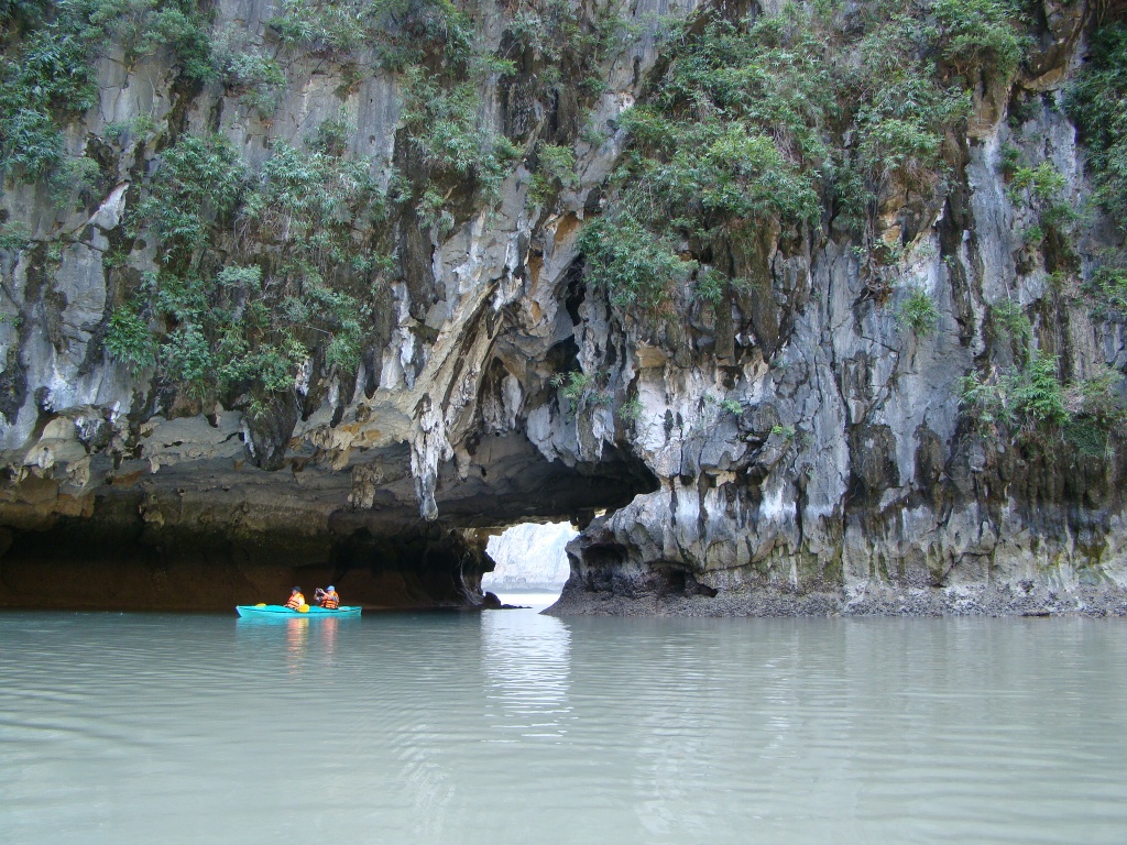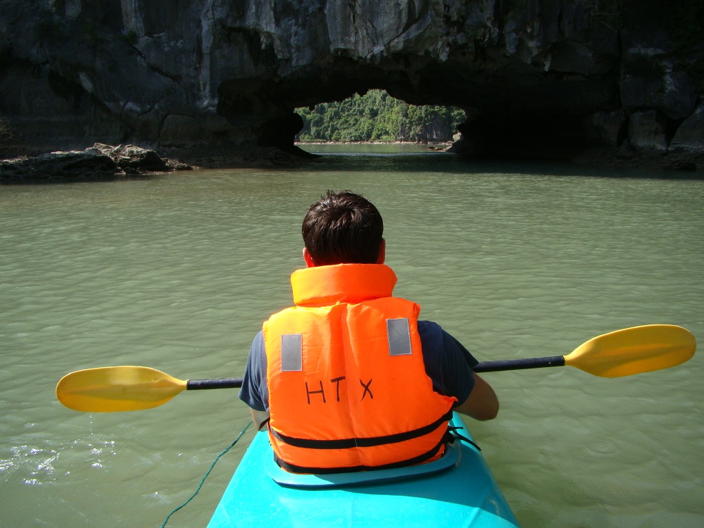 The next morning would see us on a day tour to Ha Long Bay, one of Vietnam’s natural splendors that’s competing to become one of the New 7 Wonders of the world. Doing a day trip from Hanoi was a little ambitious as the round-trip bus ride ate up half our day. Nonetheless we were still able to squeeze in several hours of boating around Ha Long Bay’s beautiful islands (more like rock formations rising from the sea). This unforgettable seascape seemed to extend indefinitely into the horizon, what a breathtaking view! We got to kayak around some of the rock formations and also explored the Thien Cung cave which added some adventure to the easy going boat ride. Even the sun was out in full form radiating our afternoon which afforded us some cool pictures. By the time we got back to our hotel it was past 8pm and the rain had started to dance once again.