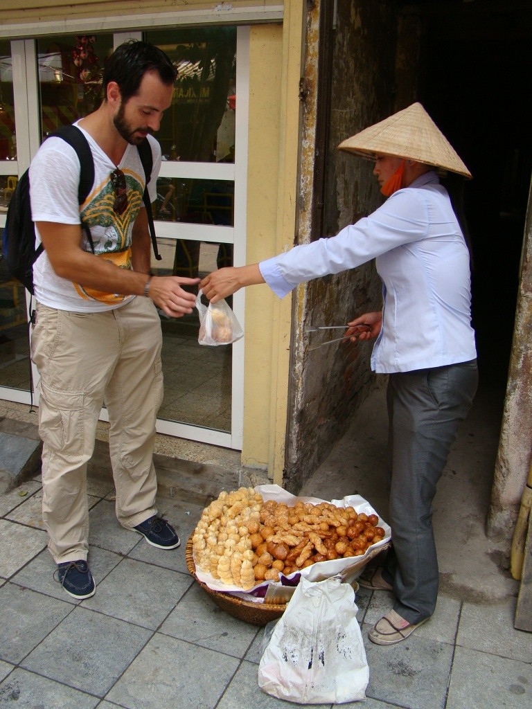 After a delicious lunch at Koto (right across the street from Van Mieu), we carefully walked around town for a bit before visiting the Hoa Lo prison or the infamous “Hanoi Hilton” (as it became known during the Vietnam War). Carefully, as in dodging a swarm of motorbikes (from every direction), which seemed to cover every inch of the streets and at times sidewalks (and of course without conforming to any “conventional” traffic law). Crossing a typical street in Hanoi became a skill requiring a combination of slow calculated baby steps and intermittent pauses until reaching the other side. No hesitation, otherwise you’re toast! The Hoa Lo prison museum was interesting in depicting the severe hardships and exterminations endured by Vietnamese prisoners (or revolutionaries), under French rule. Only a segment of the prison remains today but its walls speak of its dark past. There were also two rooms highlighting the “best living conditions” of US fighter pilots who were shot down during the Vietnam War and detained here. One of the rooms included John McCain’s pilot outfit (helmet, boots and all). Ironically the prison got dubbed “Hanoi Hilton” by American POWs whose unfortunate stories of unimaginable torture and death were not depicted at all. Instead the associating pictures and commentary served as ludicrous propaganda depicting US servicemen playing basketball and chess, eating, and even decorating a Christmas tree, all the while sporting Kool Aid smiles while in captivity (leaving us to wonder how many people would actually buy into that).