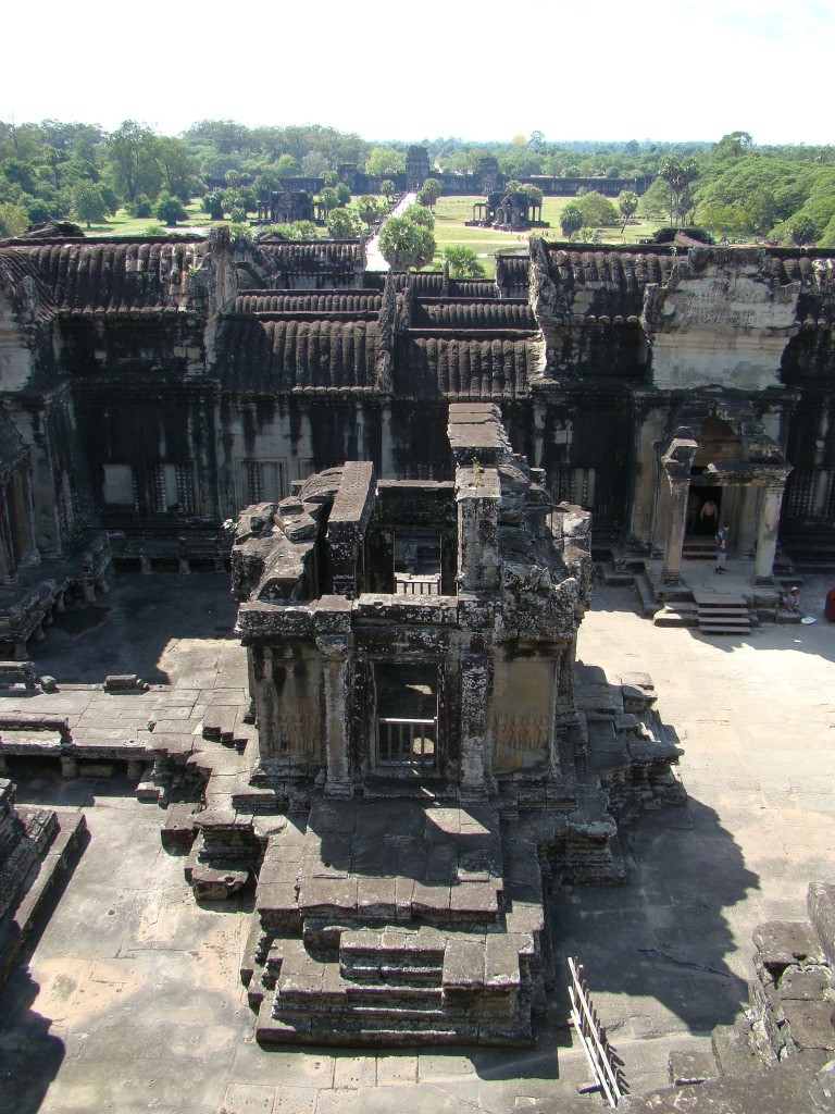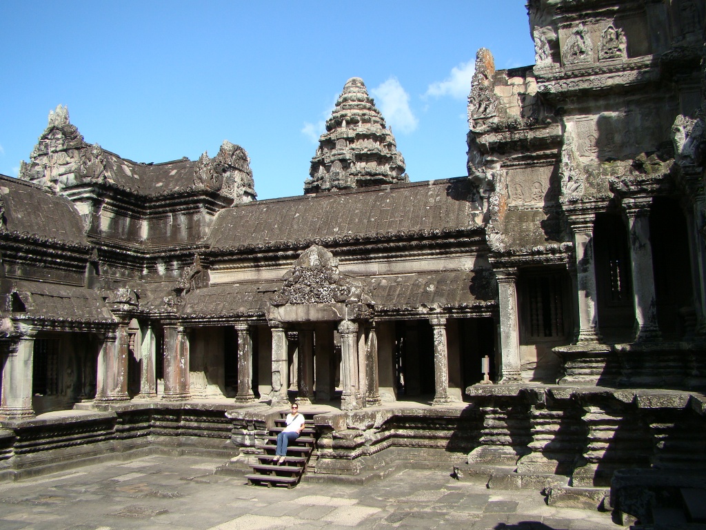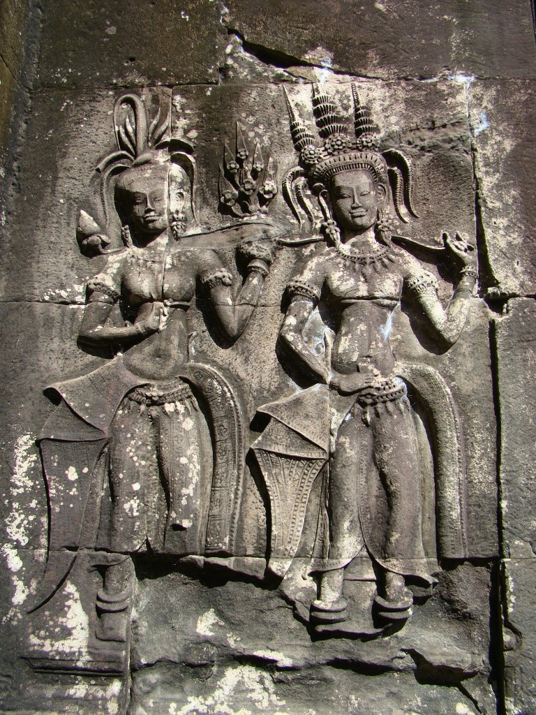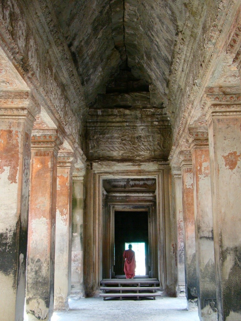 After lunch it was time to finally take on Angkor Wat (or “City Temple”). The ancient Hindu temple was constructed in the 12th century and dedicated to the god Vishnu. However as the Khmers later changed their religion to Buddhism, so the did the tones and accents on Angkor Wat. Today it still remains the largest religious building in the world – very true as it took us close to 3 hours to navigate it. We approached Angkor Wat from the East Gate (the back), which seemed peculiarly quiet with no-one in sight. Were we to have this marvel all to ourselves or was this just a selfish delusion (yup, a delusion it was – by the time we left there were hoards of people everywhere). As we entered the complex Mike dropped more knowledge about Angkor Wat’s architectural style, the meaning of its carvings, its galleries or levels and its westward orientation (not East as is the case with Buddhist temples). The immense structure served up a heaping platter of positive impressions. The raw architecture composed of sandstone and laterite with black and grey hues gave off a sense of antiquity. Close inspection of the erect towers (massive stones laid on top of stones without mortar), amplified the temple’s fortitude integrity. And the delicate polished carvings of Apsara dancers, deities and mythical characters completed Angkor Wat’s trifecta of subliminal multi-dimensionality. Brigitte and I walked up the temple’s highest level and explored the square-shaped grounds. Seeing a couple of young monks up there confirmed the temple’s authentic pulse, as opposed to just serving as an attraction to curious tourists (about 2 million annually). As we further walked about its grounds, Angkor Wat’s appeal seemed to have permanently set into our veins. It’s the kind of place you keep giving looks to over your shoulder as you walk away. For us it meant exactly that plus a return trip early the following morning to watch the sun rise over it. 5:20am and surrounded by hundreds of other camera armed “insomniacs” is what we had got ourselves into – unforgettable in many ways and well worth it!