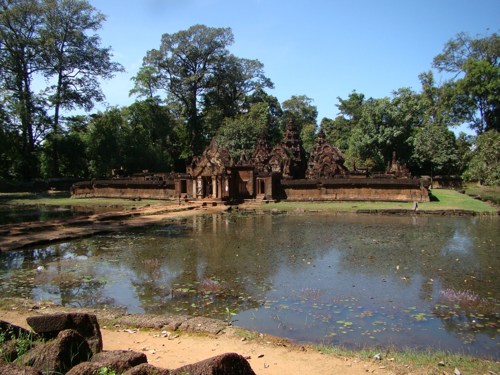 The main reason for coming to Cambodia was to see Angkor Wat, one of Brigitte’s top 5 must see places in the world. Angkor Wat is just a few miles away from the city of Siem Reap, the launch pad for most visitors to the great temples and naturally our next destination. The bus to Siem Reap (from Phnom Penh), tore through the Cambodian countryside and saw us there within 6 hours. Remarkably in various parts the entire landscape seemed inundated except for the actual road (which was about 2 – 3 feet higher than its surroundings. Many roadside homes unfortunately also appeared flooded on the ground floor. After all this was the rainy season…