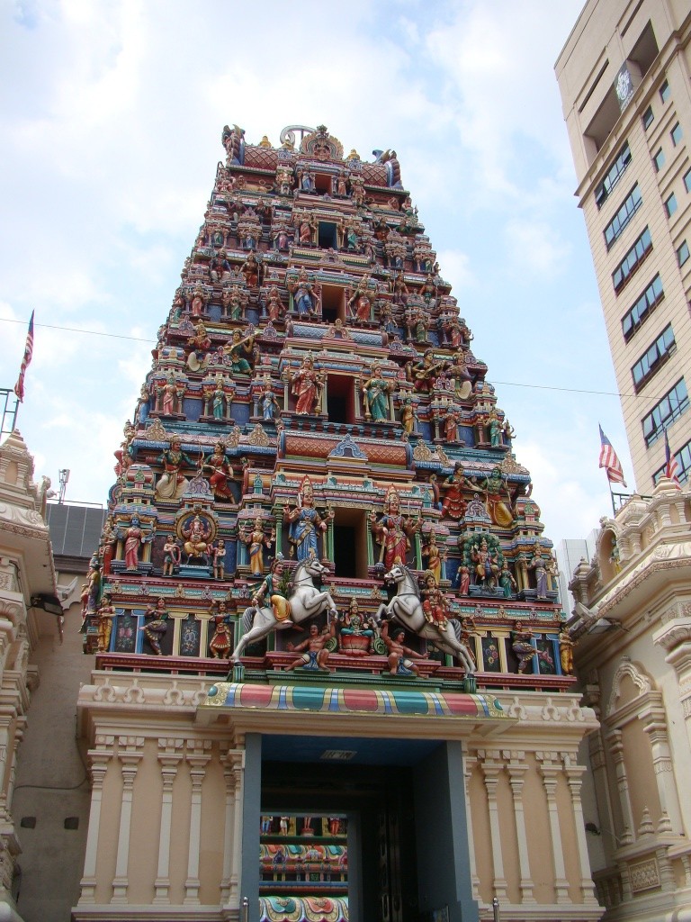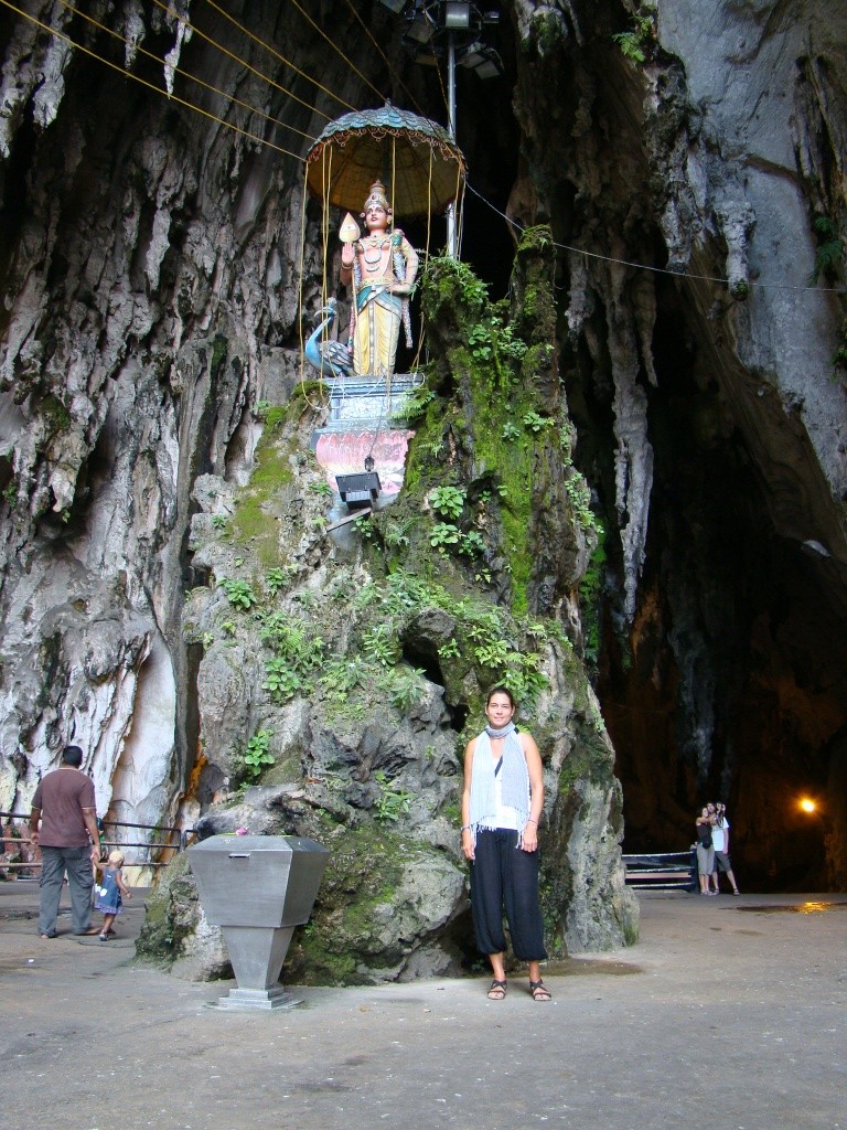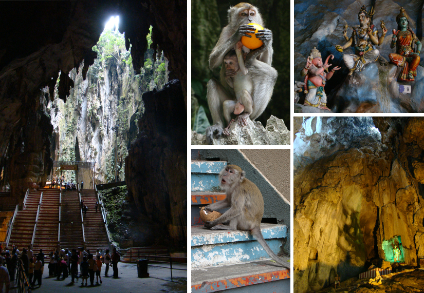 On day 3 we set up a couple dates with altitude. In the morning we paid a visit to the Batu Caves just in the outskirts of KL. The caves which naturally formed hundreds of millions of years ago, serve today as one of the most important Hindu shires outside of India. The cave complex is situated about 300+ feet above ground level and so we climbed 272 steep steps in order to access them. Dozens of other visitors and worshipers were also making their way up and down the steps but with caution as gangs of macaque monkeys paraded all around in search of anything edible. Some people exhibited a certain level of fear while others handed bananas over to them. Brigitte snapped a few photos adding to our monkey collection. The limestone caves were impressive and several colorful shines depicting Hindu deities occupied them. It felt like a powerful place of worship.