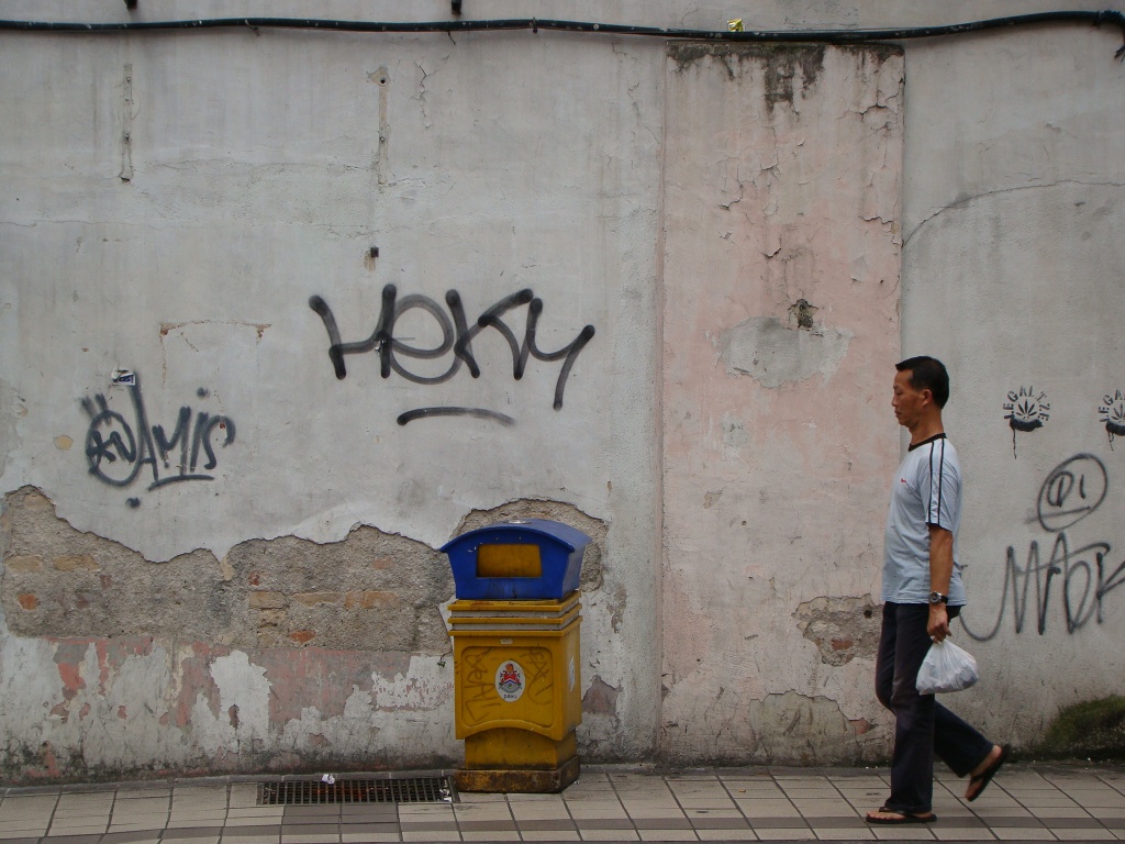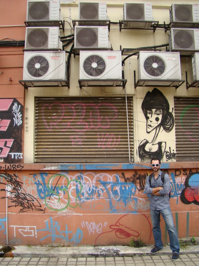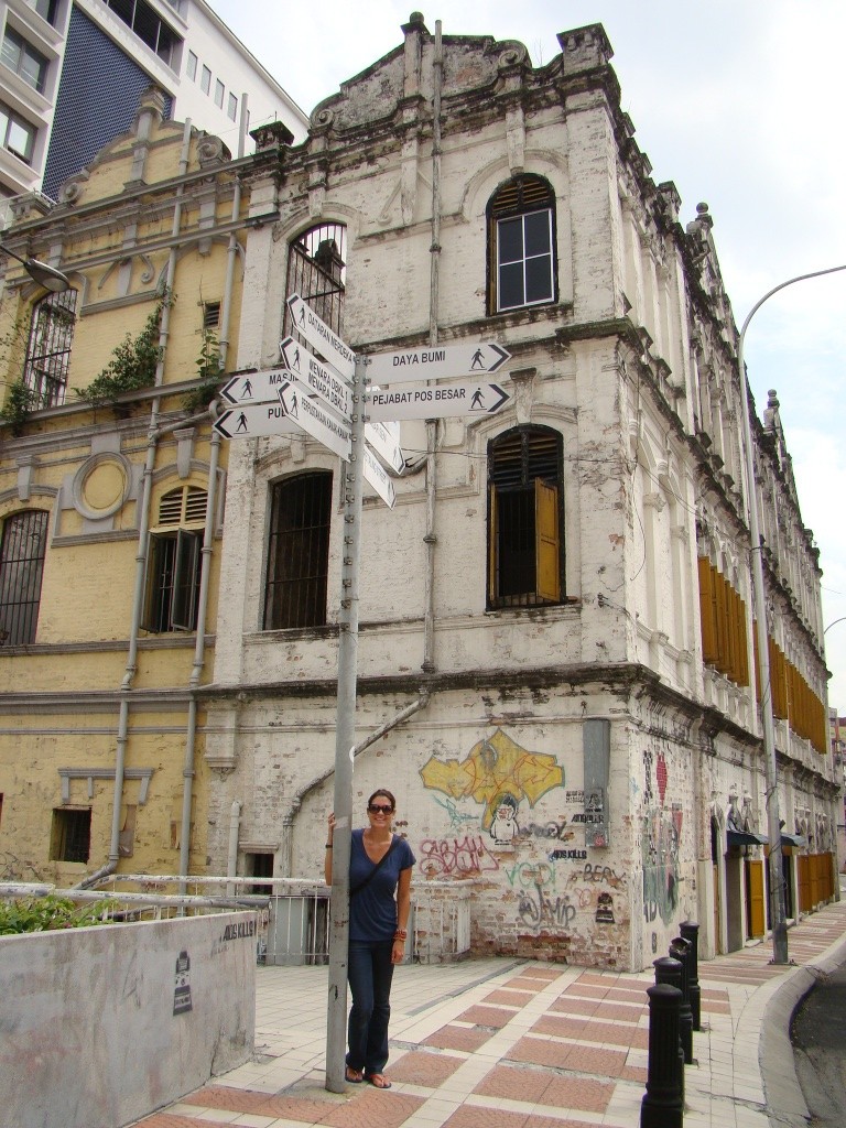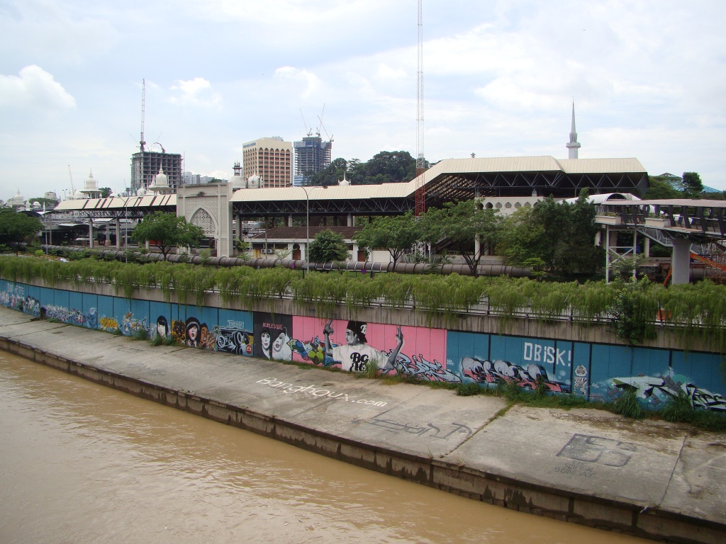 On day 1, we strolled around town checking off our list various sights & landmarks. One of the first impressions about KL was the level of modernity the city is shrouded in. Prominent bank towers, big-name hotels and other massive concrete marvels vociferously spoke of the city’s economic might. And all this makes sense when oil is flowing through the veins of Malaysia’s natural resource repertoire. Our first stop was Independence Square where Malaysia proclaimed its freedom in 1957 from British rule. Surrounding the square (and also nearby), were some of the city’s most architecturally beautiful buildings including the Sultan Abdul Samad Building, the Masjid Jamek Mosque and the Selangor Club Padang. Also within the square was the City Gallery hosting an exhibit on KL which offered an intimate look into its past. The name itself – Kuala Lumpur – actually means muddy estuary. From there we wandered about for a few hours seeing some of KL’s old colonial streets while spotting numerous graffiti sightings – there’s definitely talent in this town! Not much later the forecasted thunderstorms caught up with us and so we retreated to our hotel. Later that evening (after the rain stopped), we made an outing in order to catch up with our new friend Sally.