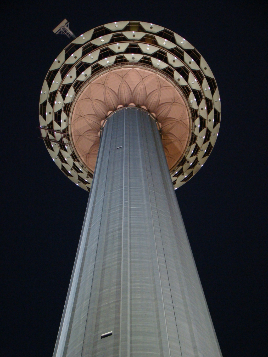 Day 2 saw us covering other parts of KL starting off at the railway station, an artistic structure built in 1910. The nearby National Mosque was also another sighting adorned by rich Islamic architecture but unlike other mosques it was not open to non-Muslim tourists. So we admired it from the outside. Next we made our way through the lush Lake Gardens which gave way to the National Monument, emblematic of Malaysia’s fight and victory for democracy. Next up was the KLCC or Kuala Lumpur Commercial Center which is where the Petronas Towers are located. At last, we stood at the base of the towers in sheer admiration. Tons of reinforced concrete and endless glass blessed by the graces of beautiful Islamic architecture and motifs – BAM! Actually double BAM!! We took a bunch pictures but the overcast sky was unforgiving. So we opted to check out the commercial center which turned out to be “an afternoon at the mall”. KLCC, a vast array of world-class shops for all your purchasing pleasures from Louis V to Rolex, Prada, all the way down to Toys “R” Us and Kinokuniya (a Borders-like bookshop). For a moment we totally felt as though we had been teleported to some fancy mall in South Florida. As luck would have it we later stumbled upon the movie theater and there it was – Tintin the movie – in 3D nonetheless! $17 meant 2 movie tickets and a batch of popcorn plus a lychee juice. An hour and a half full of pure entertainment and adventure but I won’t give away anything as the movie hits theaters in the US in late December (suckers!). By the time we got out of the movie, night had dropped upon KL and we went back to see the towers. The paramount twins glowed with paralyzing beauty. They became our muse for the next hour or so, Brigitte said she needed a bigger camera as I kept rolling film. At night the fraternal giants were simply mesmerizing, beacons of architectural splendors and for us – as New Yorkers – a heartfelt reminder of our late twins. The down side however was that they were closed for tourist visits because of renovations. The bridge on the 41st and 42nd floors connecting the towers is typically a major attraction.