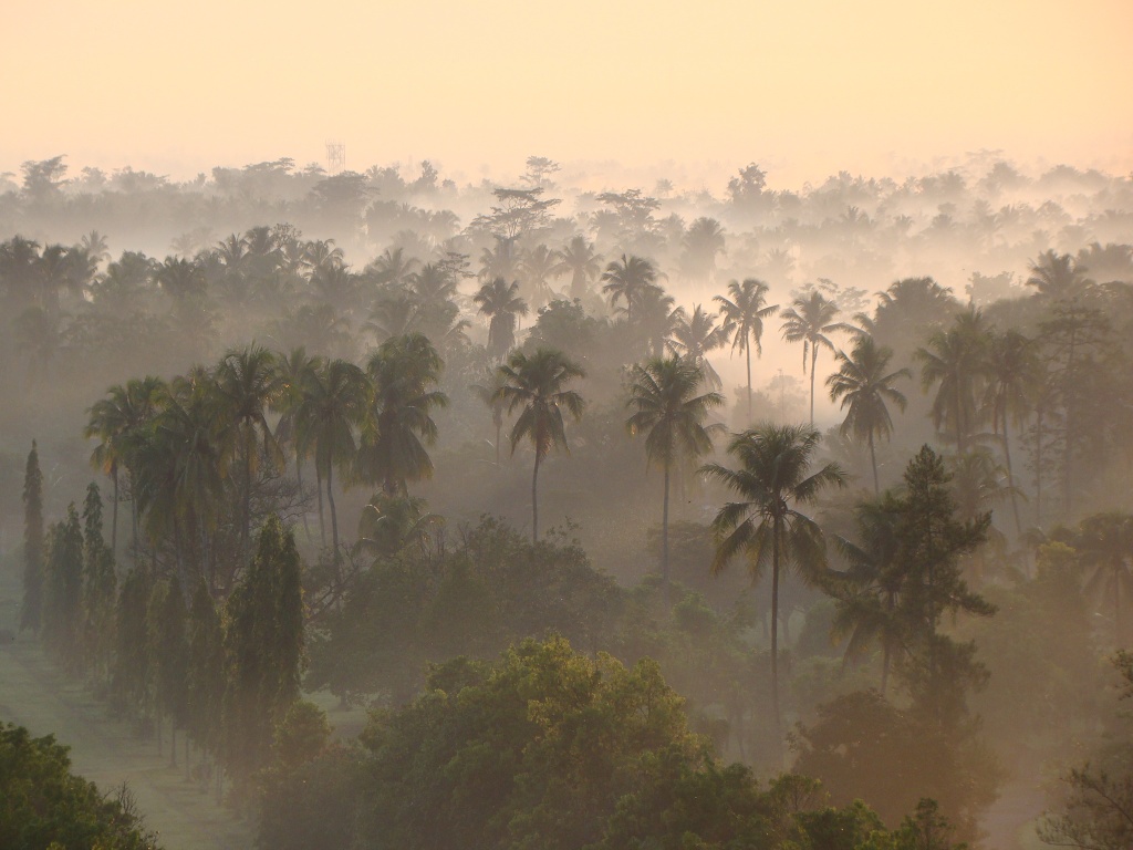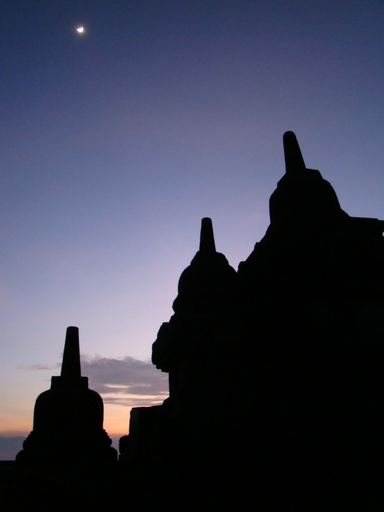 Our next stop in Indonesia was central Java and so we flew into Yogyakarta (1 hour by plane from Jakarta). After about another hour – by cab – we found ourselves at the wonderfully green hotel accommodations of Manohara. This was the hotel our friend Izabel recommended due to its amazing location. Amazing for a couple of reasons; it’s surrounded by tropical rain forests and mountains (and even a volcano, Merapi which happens to be one of the most active and dangerous in the world), and it’s also on the doorstep to Borobudur, the largest Buddhist temple in the world. We wanted to intimately see and experience Borobudur’s mystique and Manohara kept the temple within sight and “grasp” during our entire 3 night stay. Borobudur was built in the 8th and 9th centuries and today it serves as Indonesia’s most visited sight. We laid eyes on it during our first evening from our dinner table but didn’t have access to it until the following morning.