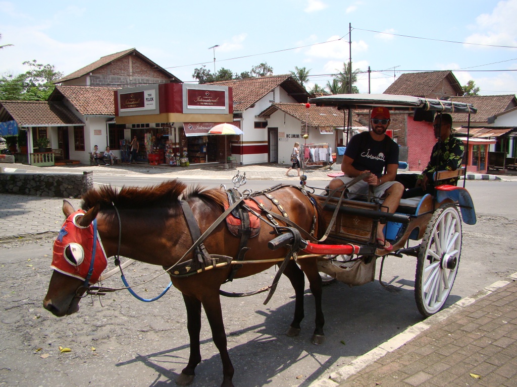 Our infatuation with Borobudur brought us back bright and early the following morning as we had set up a sunrise tour. By 5am the sun began illuminating the sky bright pink. Perched at the temple’s top level we waited in anticipation of daylight swallowing up whatever was left of the night’s sky. Webs of cotton candy-like mist sat intertwined within the tropical jungle around us while animal sounds emanated from it ringing in the start of a new day. And the influx of 4-winged flying insects flooded the sky, perhaps another signal of the fresh morning. We wandered about the temple for another hour – this time beating the onset of humidity – and by 6:30am we made our way back to our room. The ensuing couple hours of sleep came in handy. Refreshed and ready for more adventure, we hired a horse-drawn carriage later in the afternoon to take us to Pawon and Mendut (two other smaller Buddhist temples linked with Borobudur). It was great to get a glimpse of the countryside but on our way back rain started making its statement.. and so we got the point. We took it easy back at the hotel for the rest of the evening and enjoyed one last dinner overlooking Borobudur.
