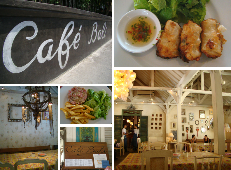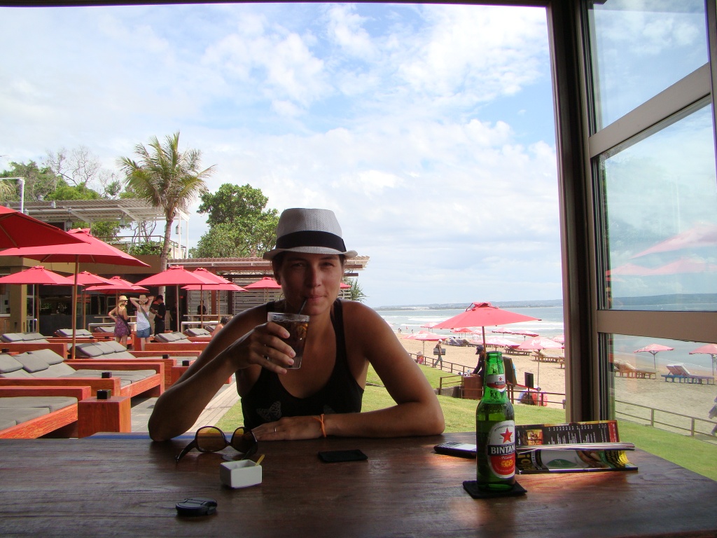 The next day (our last in Seminyak), was a repeat of the previous couple of days. But this time around we checked out a couple of places that Izabel had recommended to us. We stopped at Cafe Bali for lunch and the place immediately drew us in. The wooden colonial-style restaurant was very open (lots of natural light), and its bright country-like decor made it prime for a Country Home or Real Simple magazine shoot. After a yummy lunch we hit the beach again where we also enjoyed drinks at Ku De Ta, Izabel’s other recommendation. The beachfront lounge with a broad view of the ocean seems to have the perfect location. It’s the kind of place that infuses your imagination while gazing into the horizon, sipping on a cold drink and listening to lounge music beats. Not a bad way to spend part of the day, not bad at all.