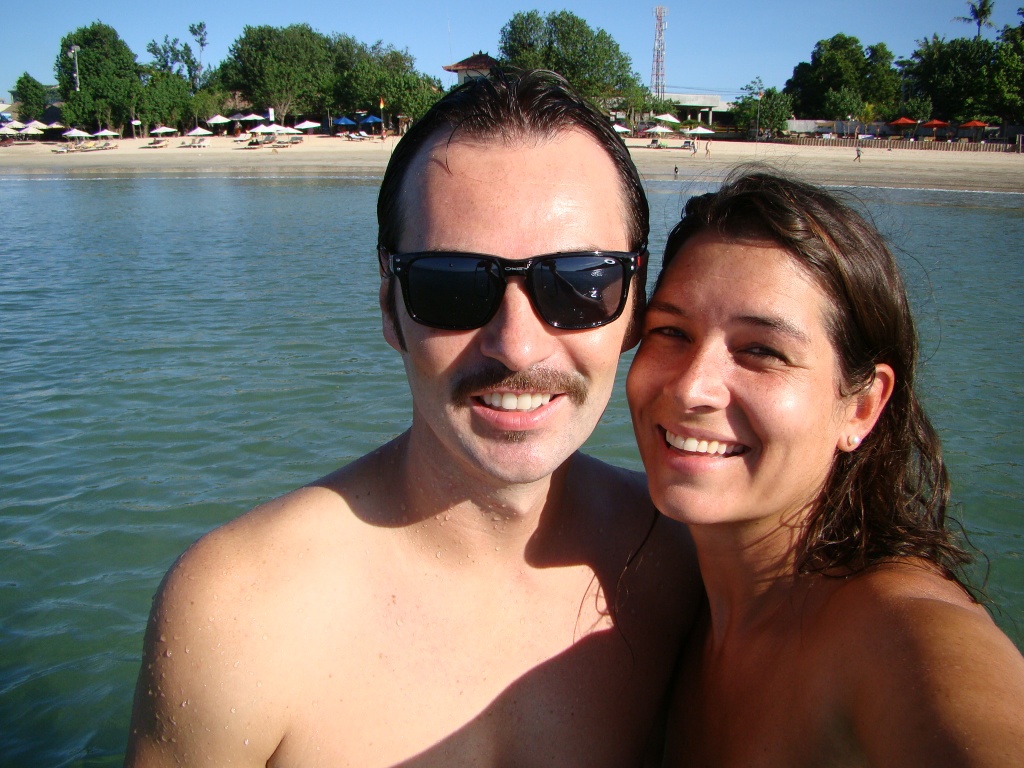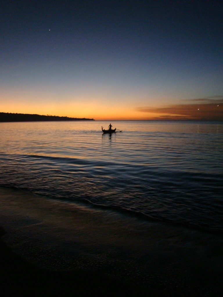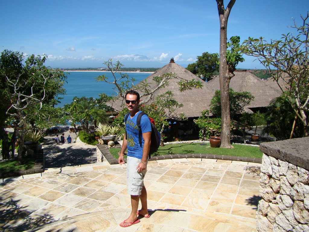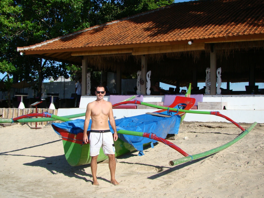 Another day meant another beach, this time it was Jimbaran. Armed with a gift certificate to the Four Seasons Hotel (wedding gift courtesy of Tarek – merci encore!), we hopped in a “taksi” and made our way over for lunch. The impeccably manicured cliff grounds overlooking the bay were stunning. Also impeccable was our lunch, Brigitte’s double salad order and my chicken burger were simply delicious. Not to mention the refreshing glasses of Viognier and Riesling that accompanied our meal. We voraciously imbibed as much of the scenery as possible knowing it was to be ephemeral. But we did get a good sense of how “the other half” lives. At one point we noticed a waiter wiping clean the sunglasses of a patron at the table next to us. Unnecessary and somewhat slave-like in my mind but I suppose when you spend $800 (or more), a night that’s just a common courtesy. The Four Seasons actually didn’t have its own beach but right next door sat the clean whitish sands of Jimbaran beach. We rented 2 beach chairs and lazed about for the entire afternoon and into the evening. It was hot, very hot and the frequent dips in the Indian Ocean helped us cope. Jimbaran offers great sunset views and it’s also littered with beachfront restaurants dishing out local sea fare. After sunset we made our way up the beach for about a mile and a half and settled on a beachfront table at one of the numerous places. The fish was delish!